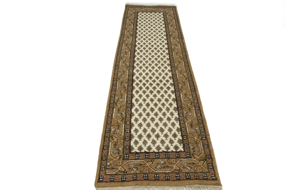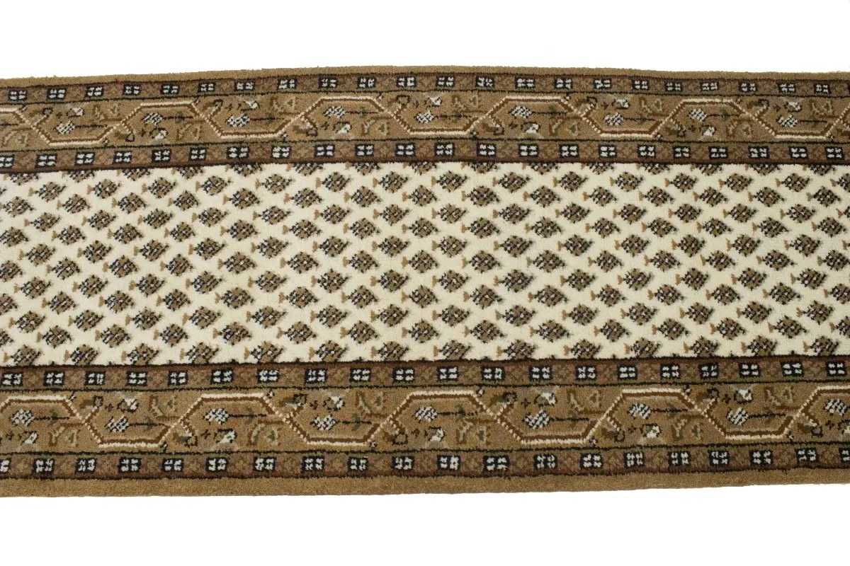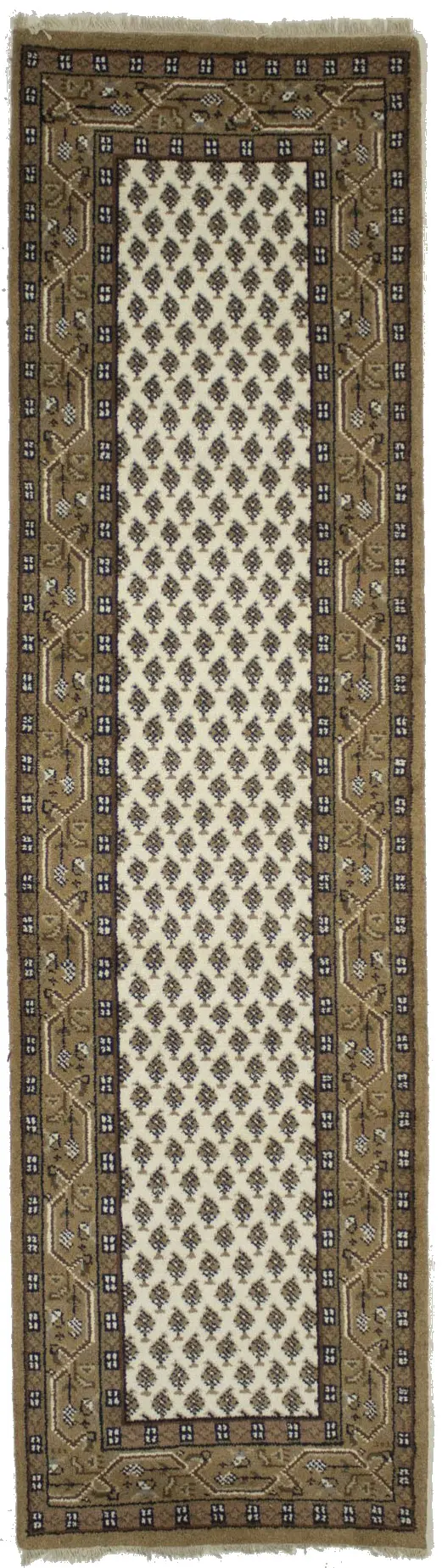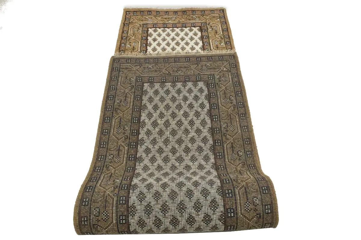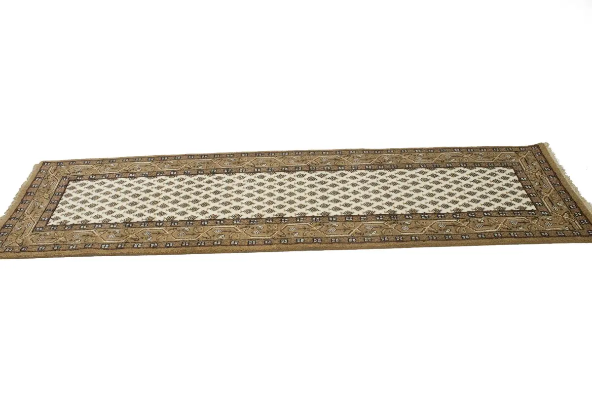 Handmade 2'5X9 cream Oriental runner made with vegetable dyes (fine wool pile and cotton foundation), superior knot count, and appealing ancient designs. This Oriental runner never will go out of style and would be among your most valuable treasures.