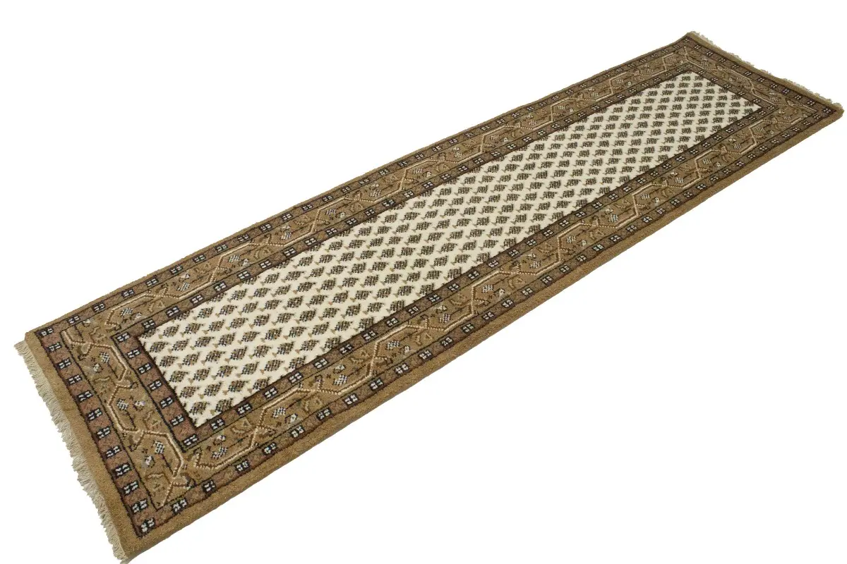Cream Floral 2'5X9 Indo Botemir Oriental Runner Rug