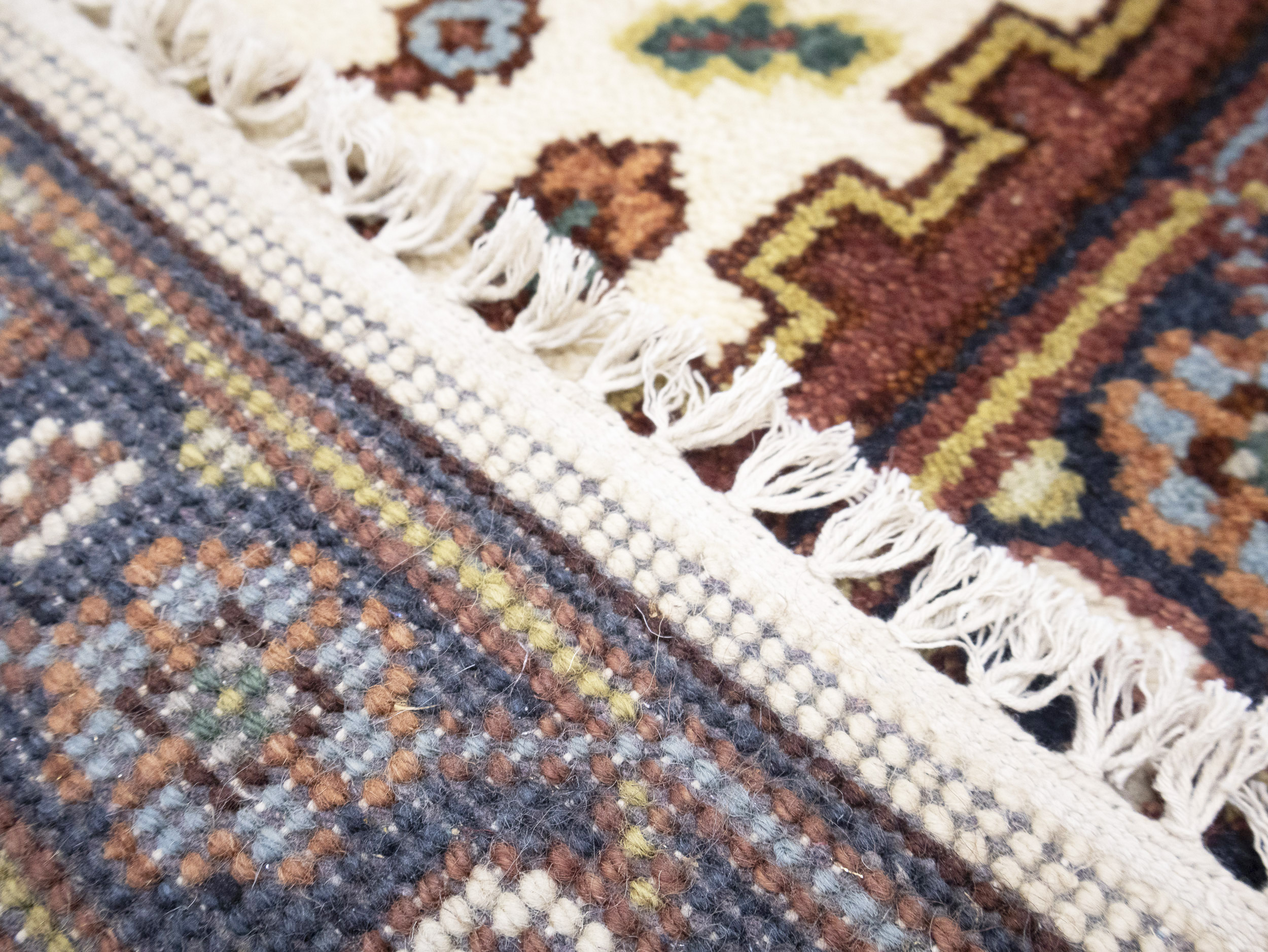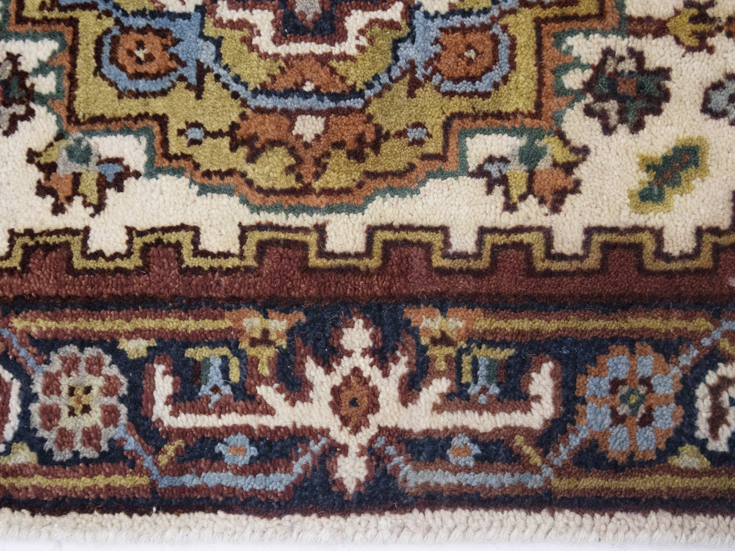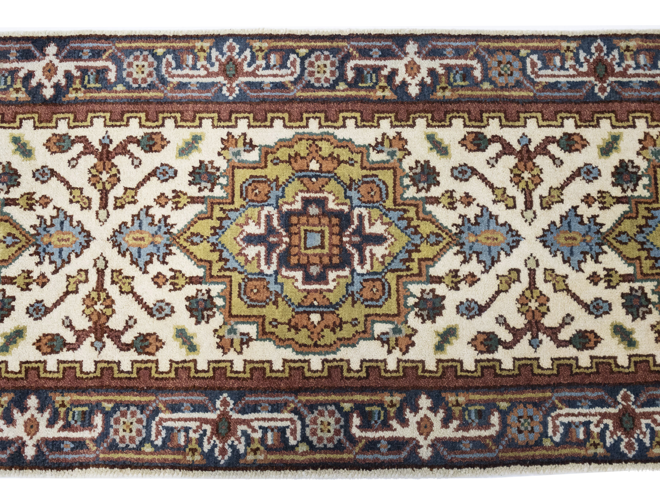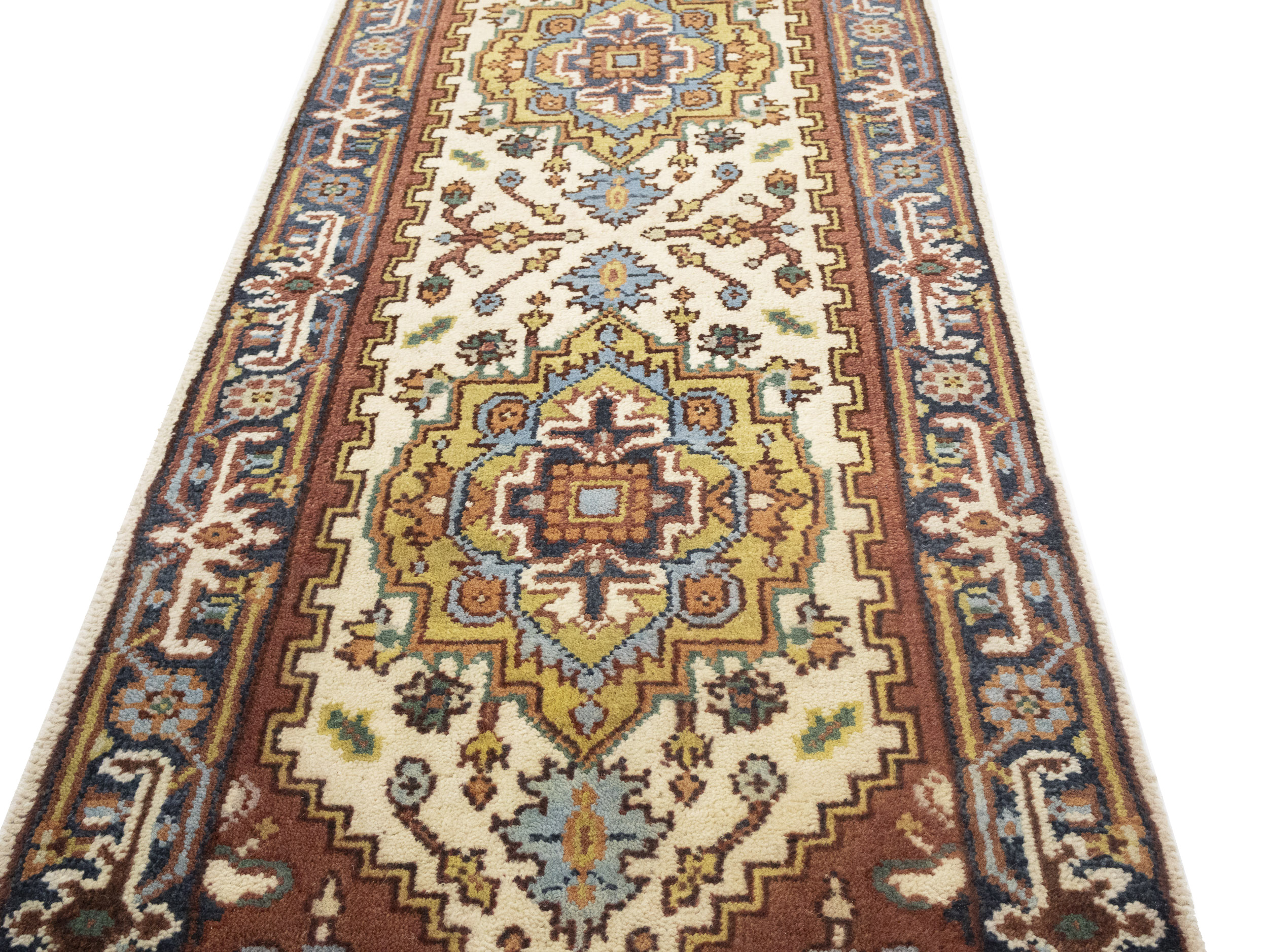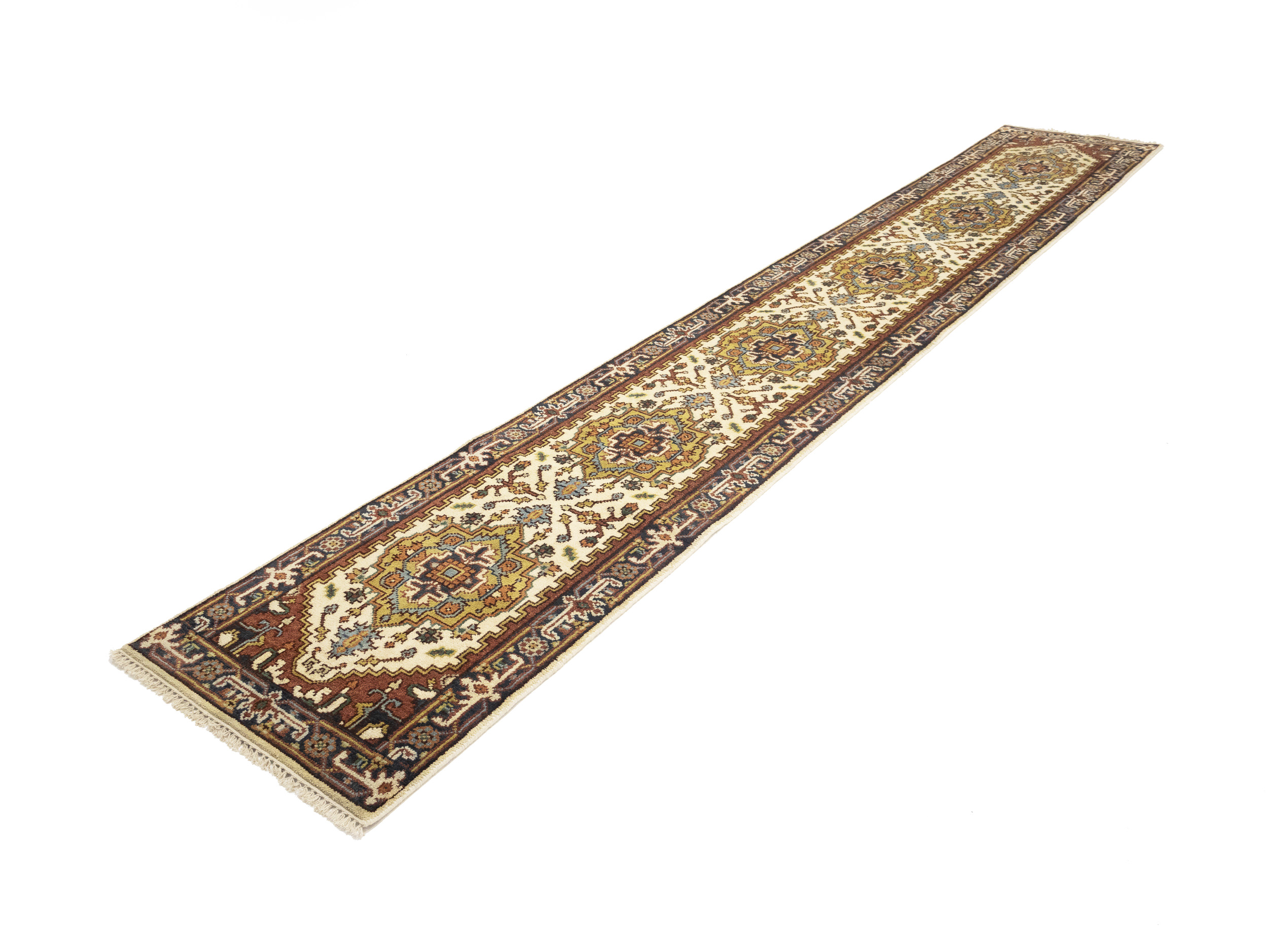 Handmade 2'6X15'5 cream Oriental runner made with vegetable dyes (fine wool pile and cotton foundation), superior knot count, and alluring ancient designs. This Oriental runner never will go out of style and would be among your most valuable treasures.