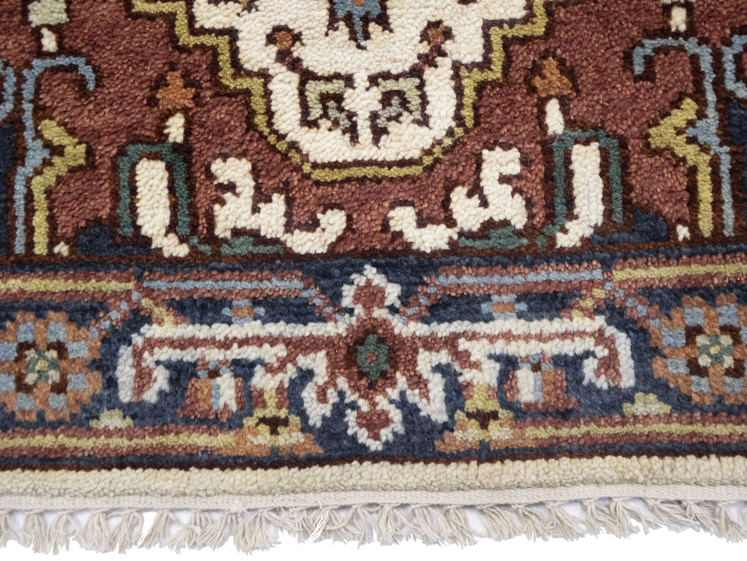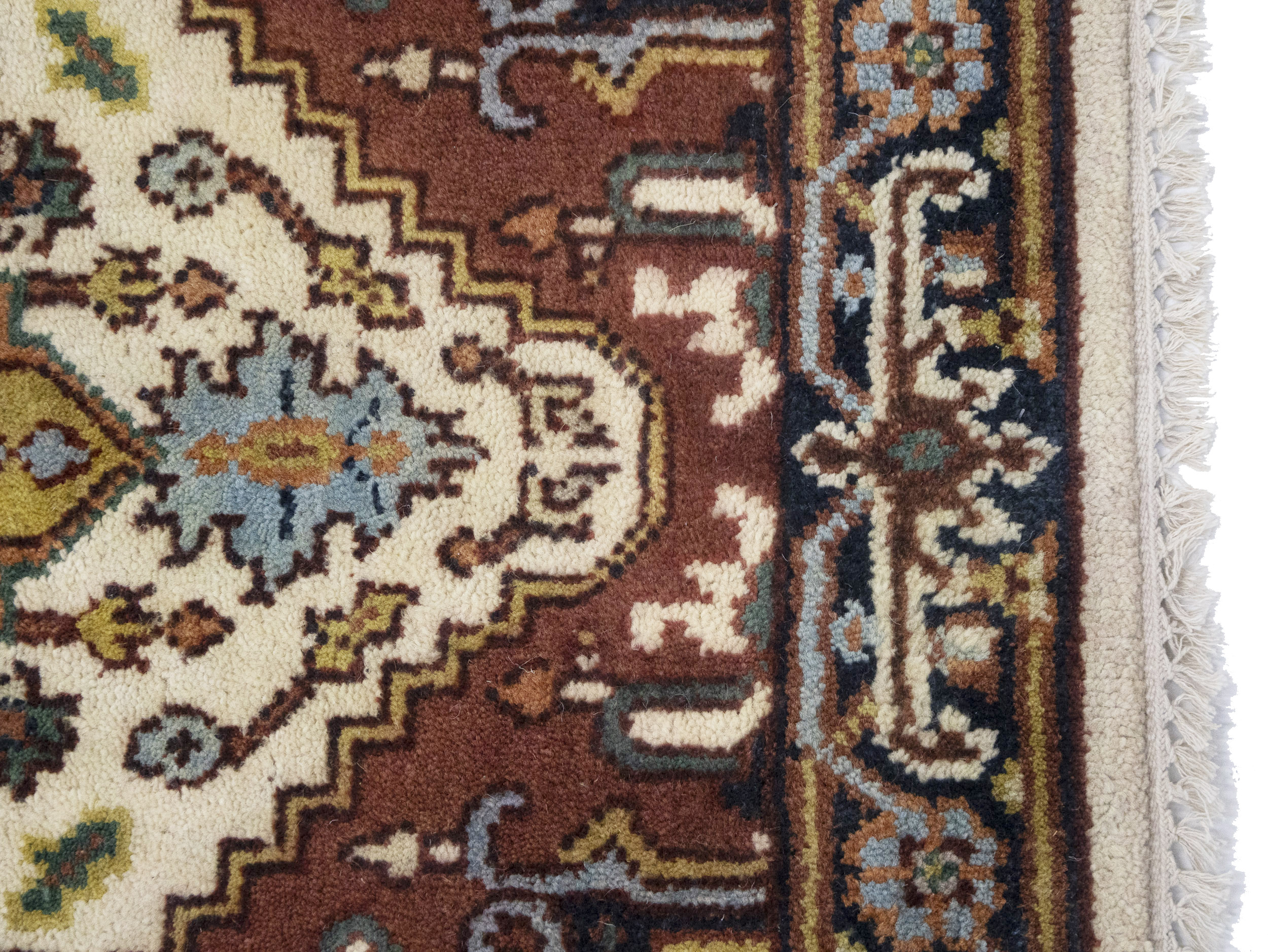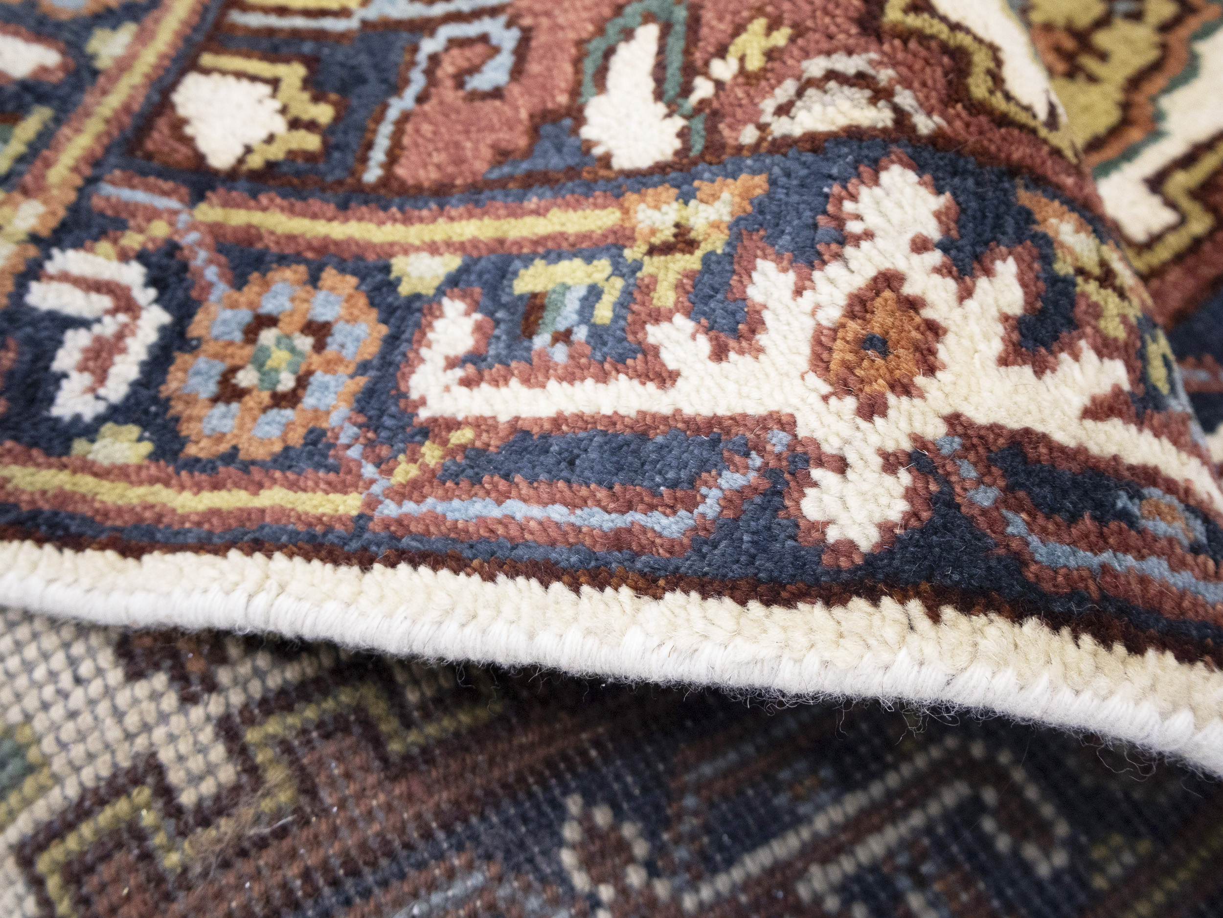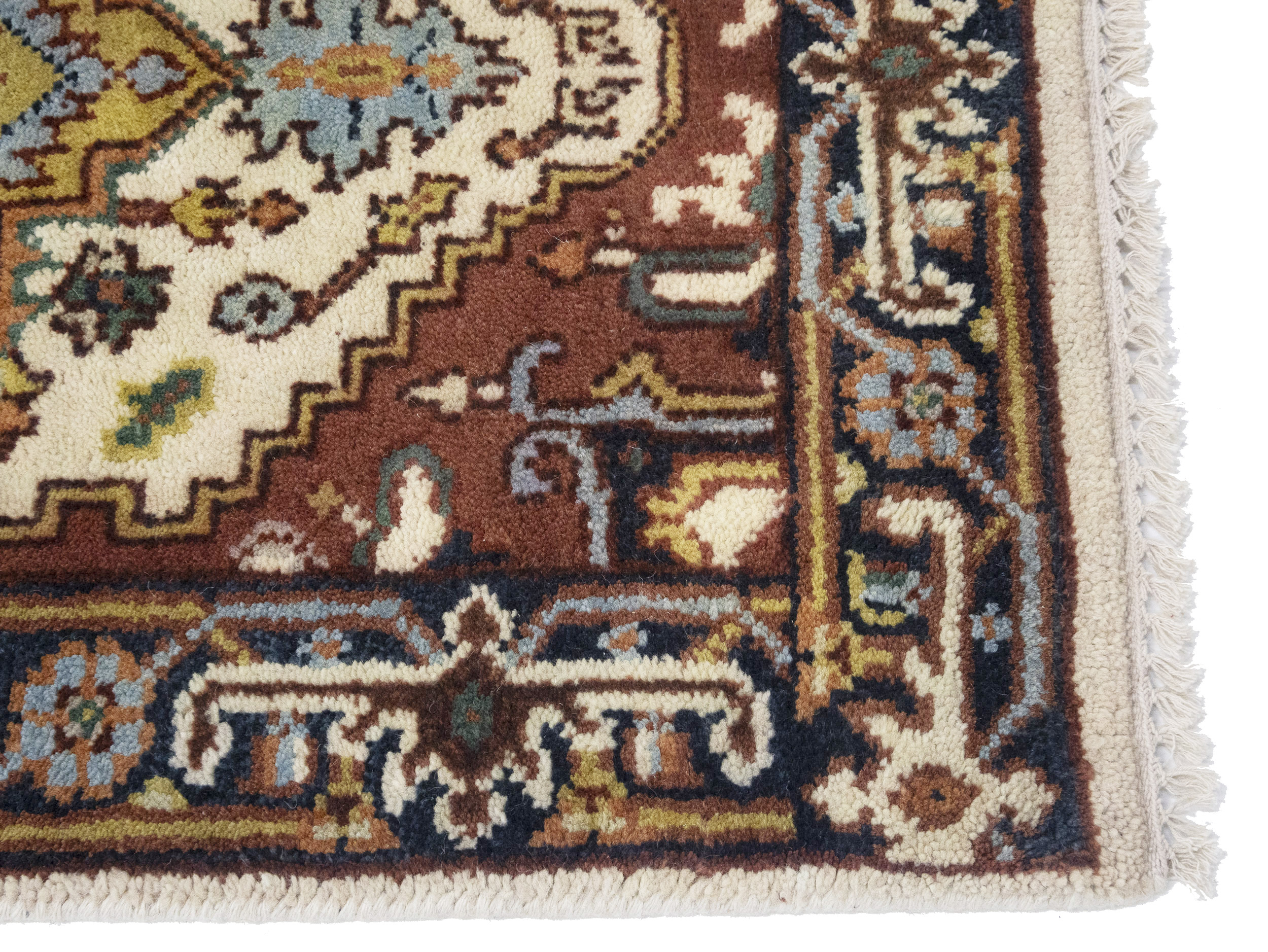 Cream Floral 2'6X15'5 Heriz Serapi Oriental Runner Rug