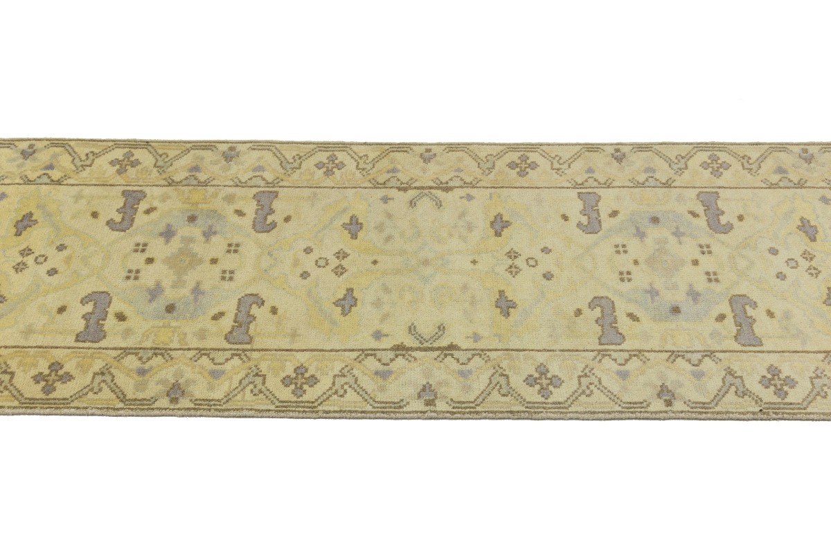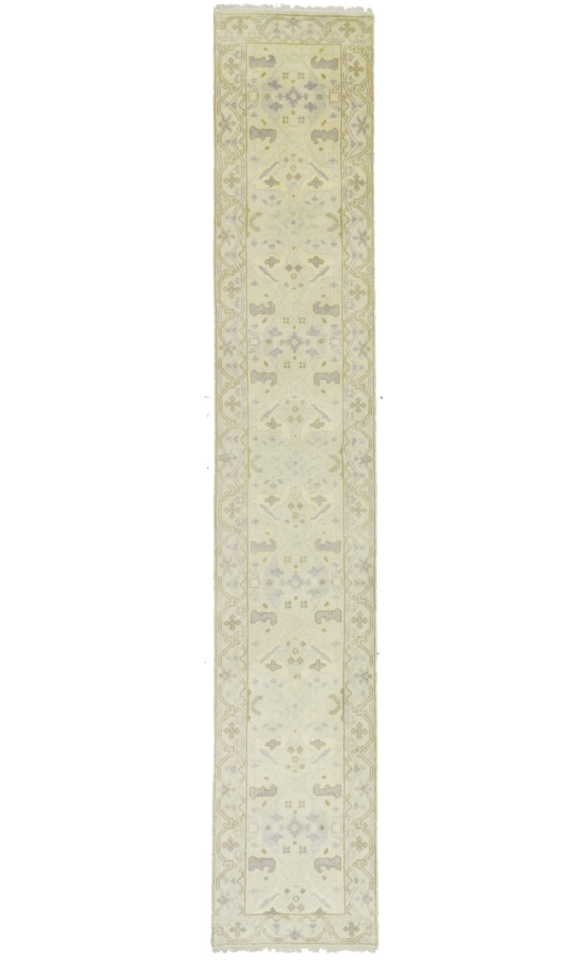 This original 3X14 cream new Oriental runner was finely knotted by the hands of weavers influenced by a variety of amazing artistic designs, to recreate the aged look of the exceptional piece with a richness of color and embellished background field. What set this vintage style Oriental area runner from the others are the material and dye used (wool pile and cotton foundation), knot count, antique designs, fantastic grades, and its regional historical connection: it has deep roots, from the story of the people who produced it to the meaning of the symbols and colors displayed across its canvas that have been praised for centuries. This Indian home décor carpet will be completely cozy and inviting that never will go out of style! Also, this Oriental rug would be among your most valuable treasures, it is a great investment that increase in value over time, and it will last a lifetime because was woven with high-quality, all-natural wool. Eco-friendly, opulent yet affordable; this runner will give you an extra pop of character to help define your home environment with luxury and warmth that will capture the eyes and attention of your audience (homeowners, designers, decorators, family and friends). OT-7775