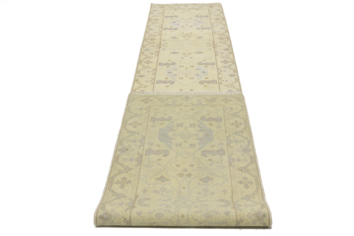 Cream Floral 2'8X13'7 Oushak Chobi Oriental Runner Rug
