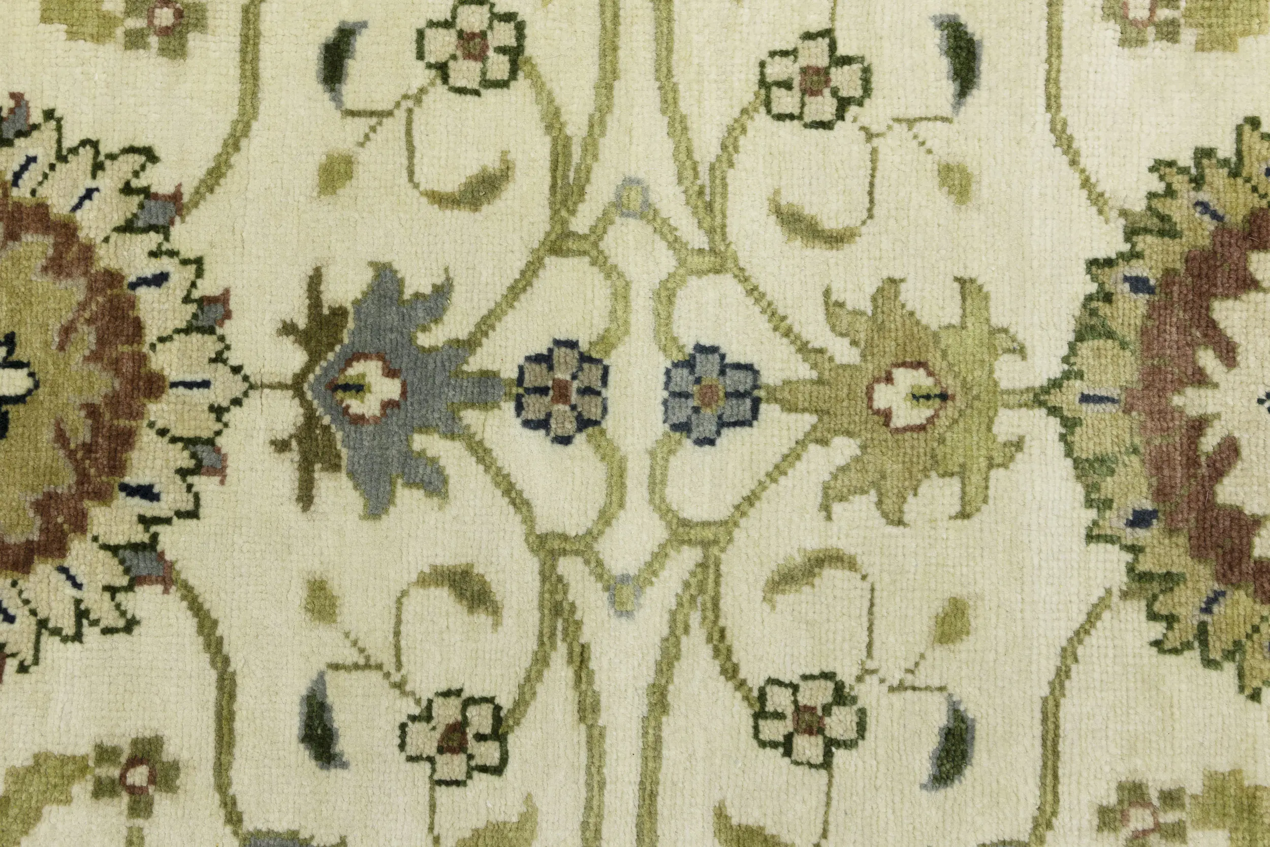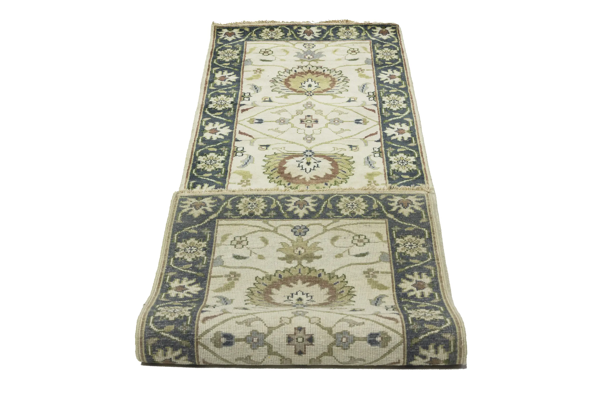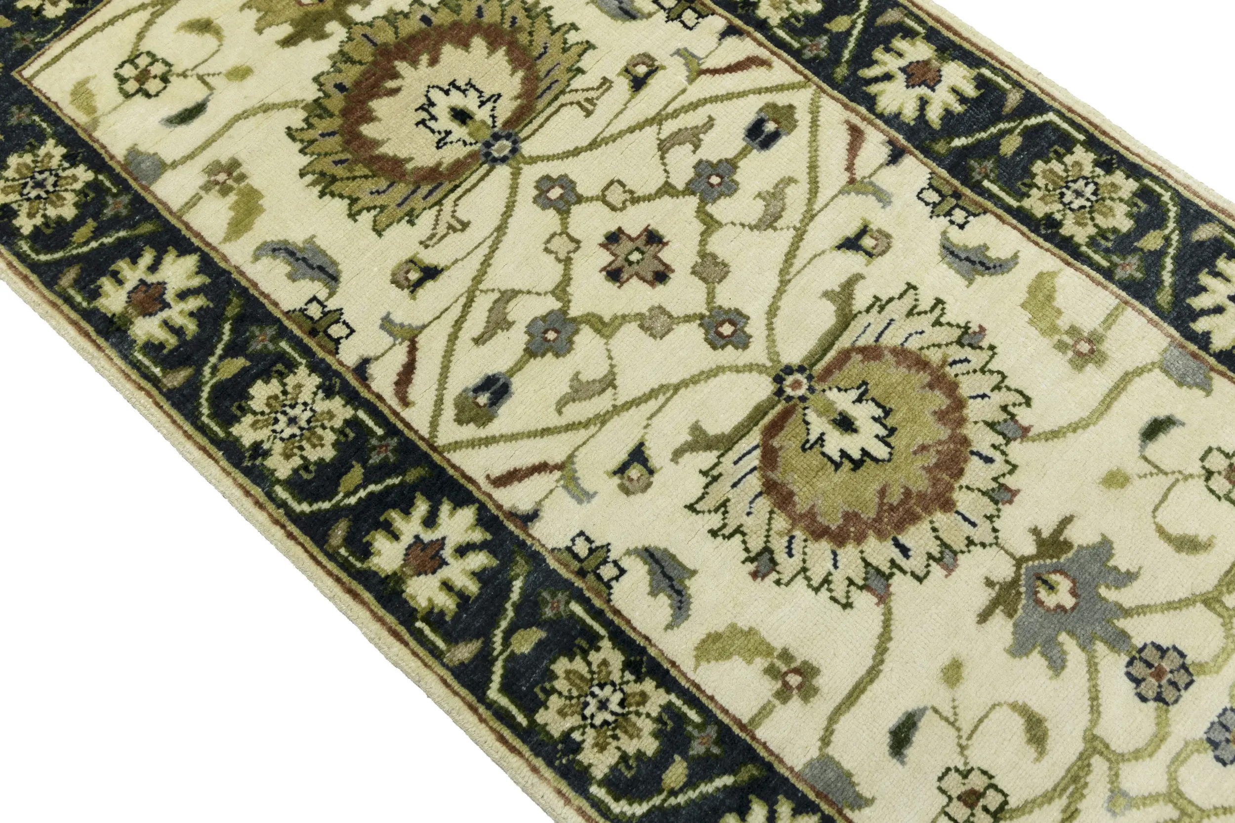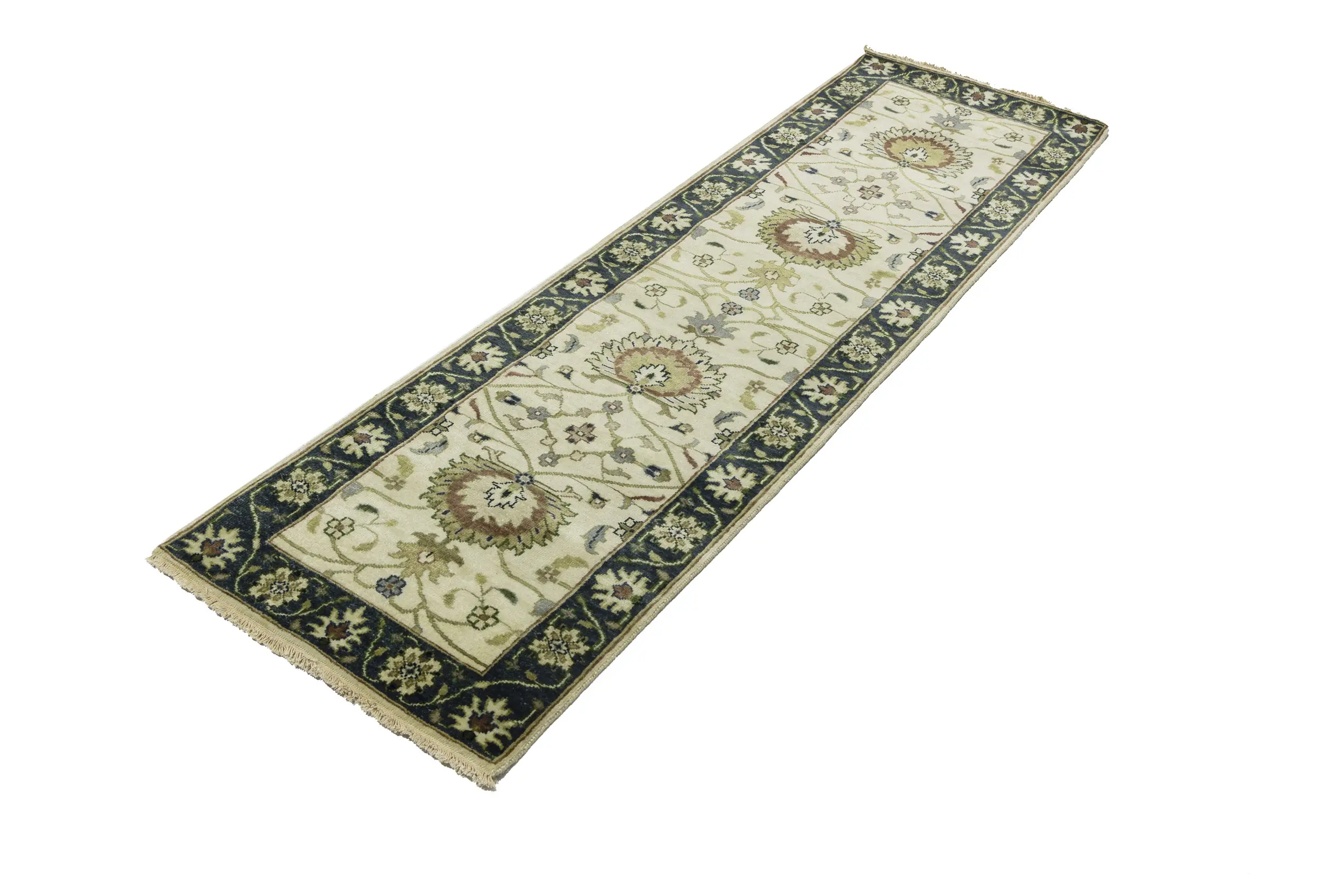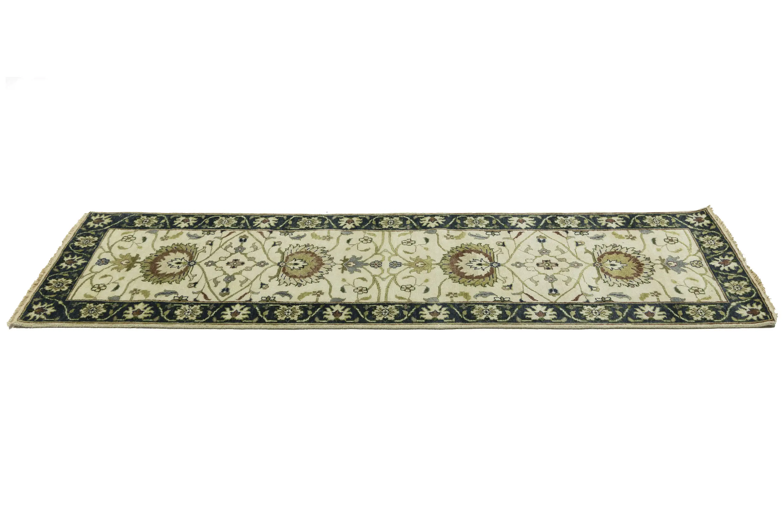 This genuine 2'5X8 cream new Oriental runner was made by the hands of gifted weavers inspired by a variety of spectacular artistic designs, to recreate the aged look of the original piece with a richness of color and ornately patterned background field. What set this vintage style Oriental area runner from the others are the material and dye used (wool pile and cotton foundation), knot count, ancient designs, fantastic grades, and its regional historical connection: it has deep roots, from the story of the people who produced it to the meaning of the symbols and colors displayed across its canvas that have been praised for centuries. This Indian home décor carpet will be completely cozy and inviting that never will go out of style! Also, this Oriental runner would be among your most valuable treasures, it is a great investment that accrues value over time, and it will last for generations because was woven with high-quality, all-natural wool. Environmentally friendly, opulent yet affordable; this rug will give you a thorough amount of character to help define your living space with elegance and warmth that will capture the eyes and attention of your audience (homeowners, designers, decorators, family and friends).