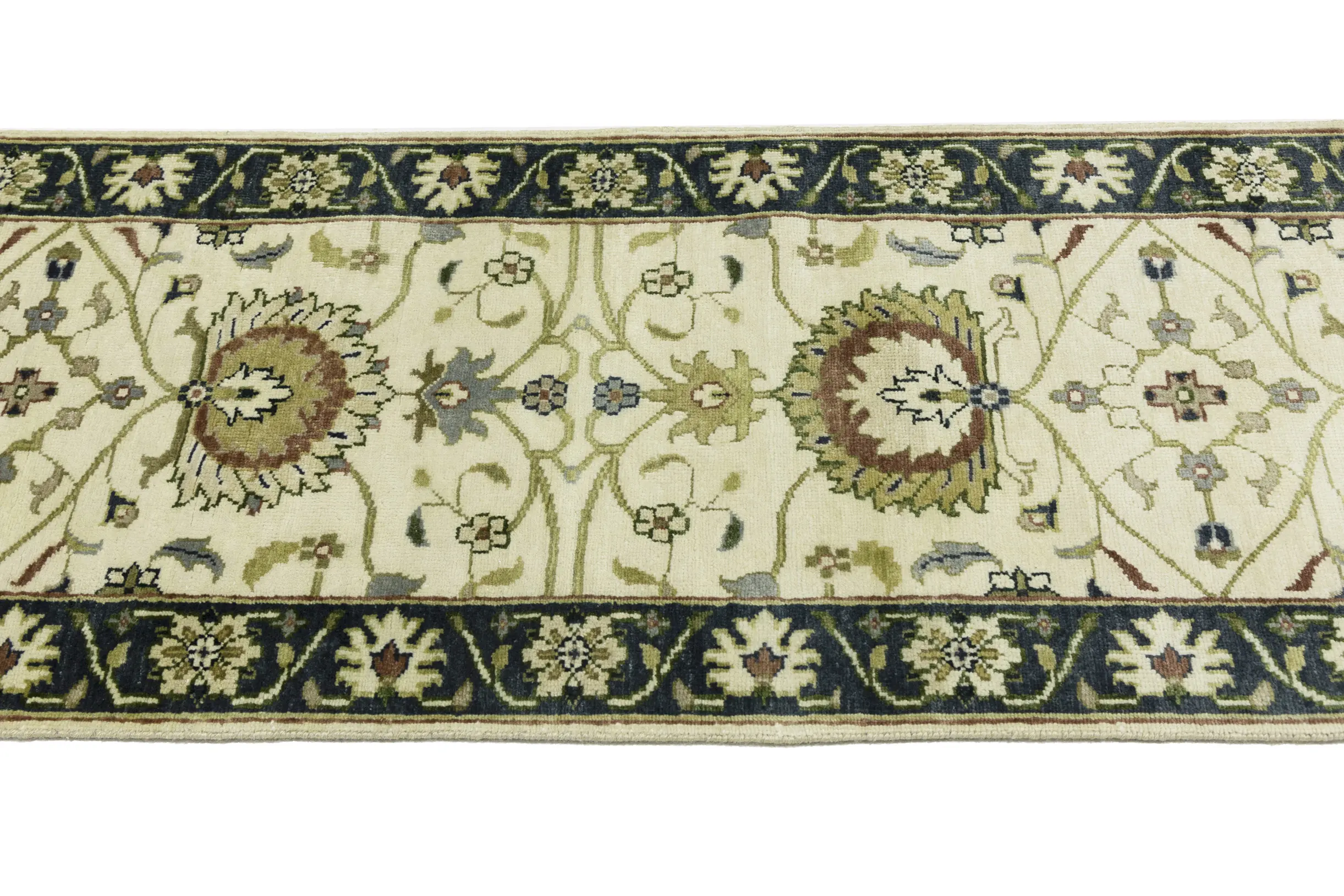 Handmade 2'5X8 cream oriental runner made with vegetable dyes (fine wool pile and cotton foundation), superior knot count, and appealing ancient designs. This Oriental runner never will go out of style and would be among your most valuable treasures.