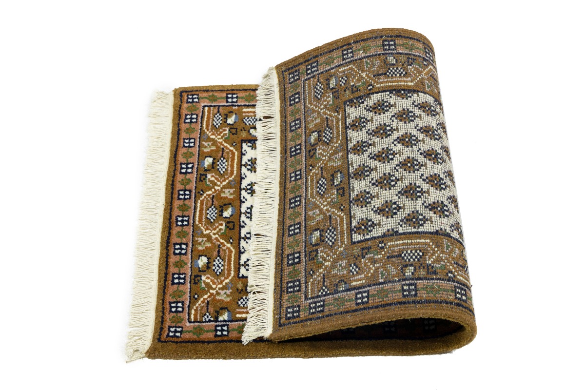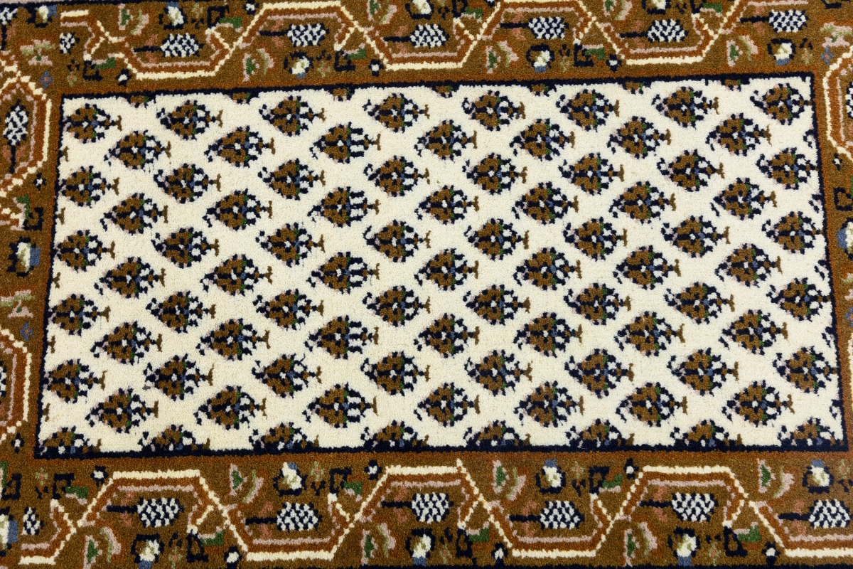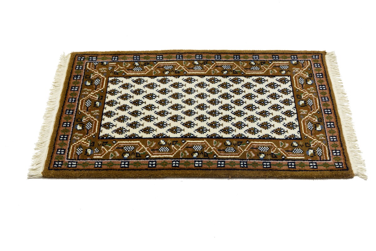 This genuine 2X3 cream new Oriental rug was made by the hands of gifted weavers inspired by a variety of spectacular artistic designs, to recreate the aged look of the original piece with a richness of color and ornately patterned background field. What set this vintage style Oriental area rug from the others are the material and dye used (wool pile and cotton foundation), knot count, ancient designs, fantastic grades, and its regional historical connection: it has deep roots, from the story of the people who produced it to the meaning of the symbols and colors displayed across its canvas that have been praised for centuries. This Indian home décor carpet will be completely cozy and inviting that never will go out of style! Also, this Oriental rug would be among your most valuable treasures, it is a great investment that accrues value over time, and it will last for generations because was woven with high-quality, all-natural wool. Environmentally friendly, opulent yet affordable; this rug will give you a thorough amount of character to help define your living space with elegance and warmth that will capture the eyes and attention of your audience (homeowners, designers, decorators, family and friends). OT-8499