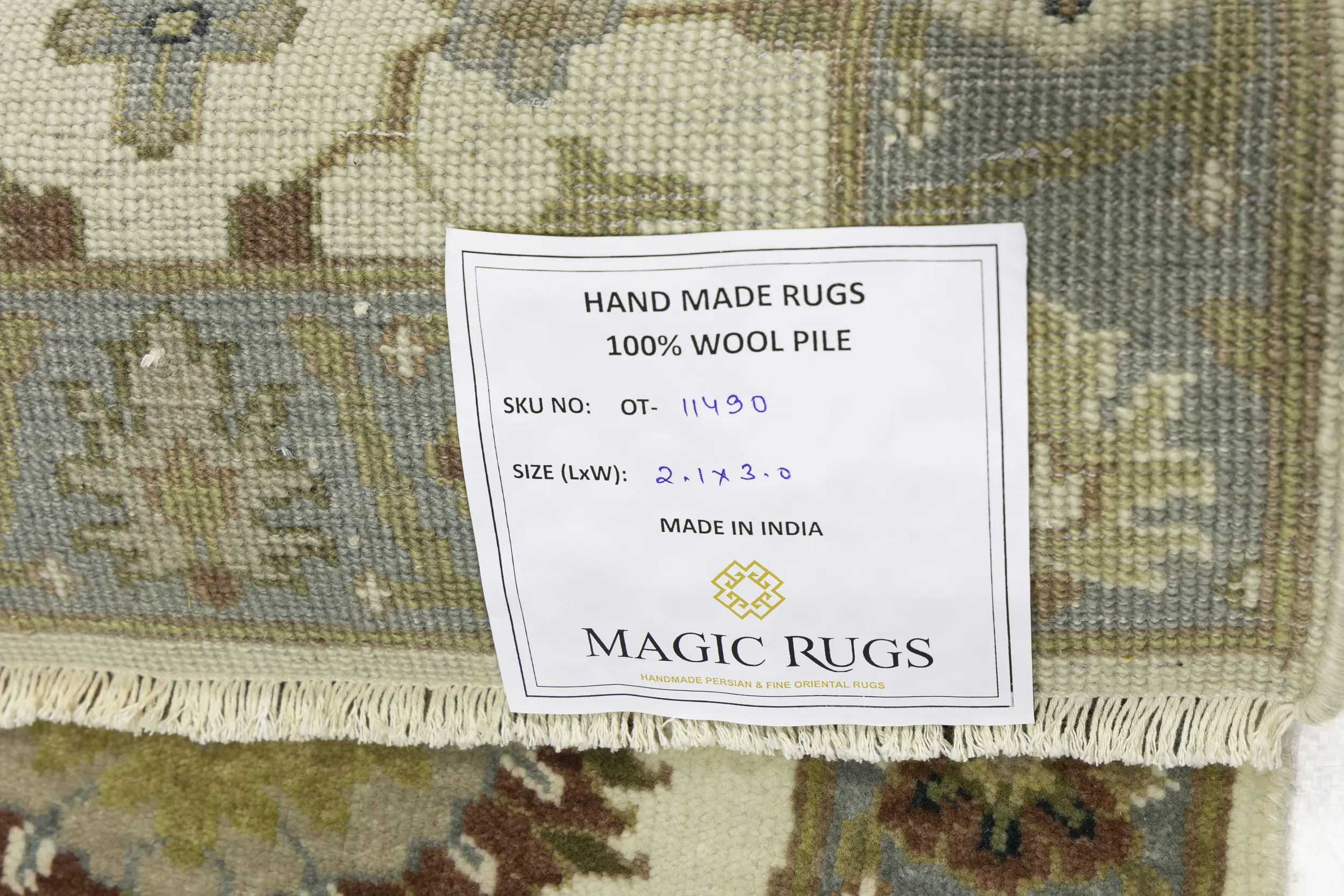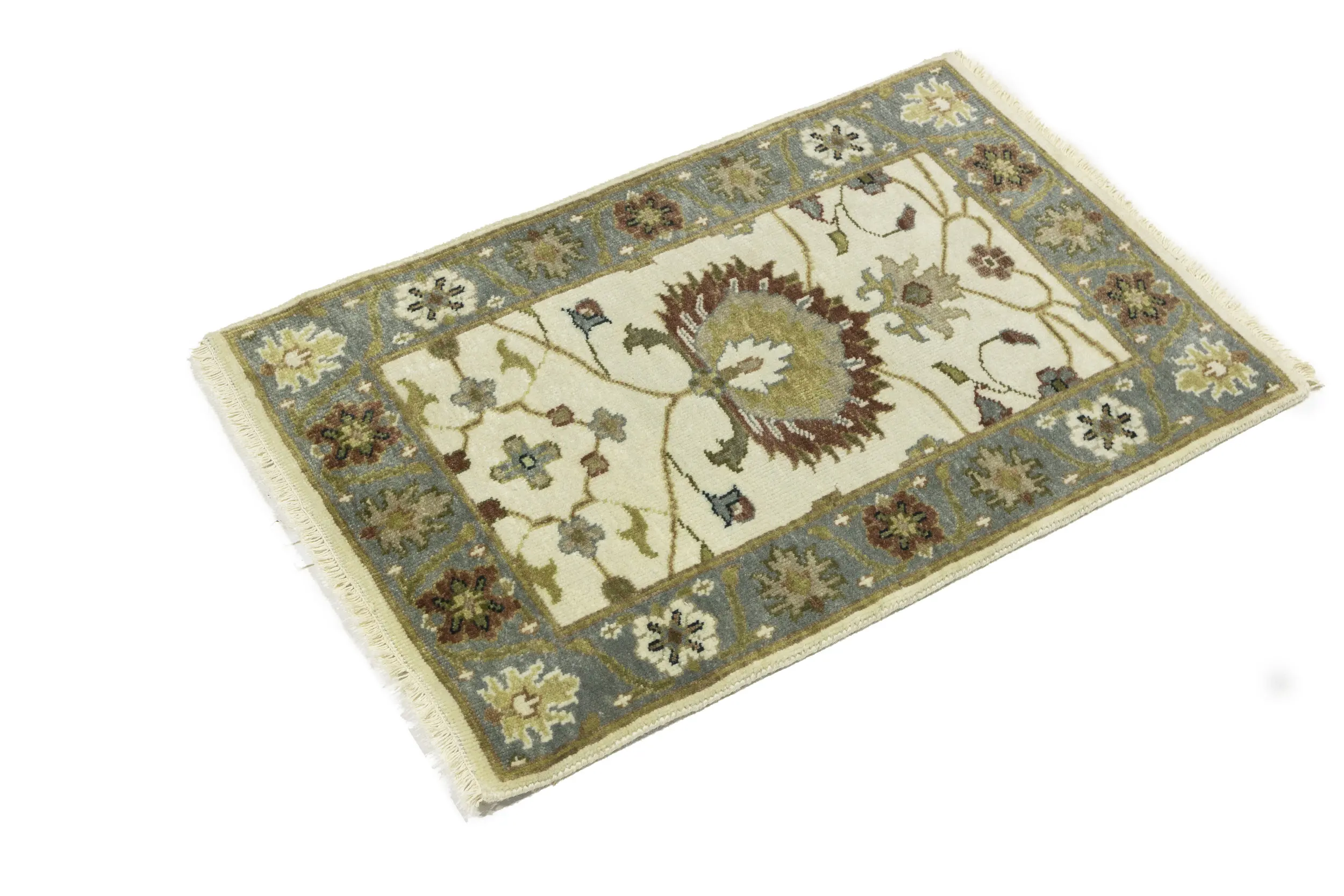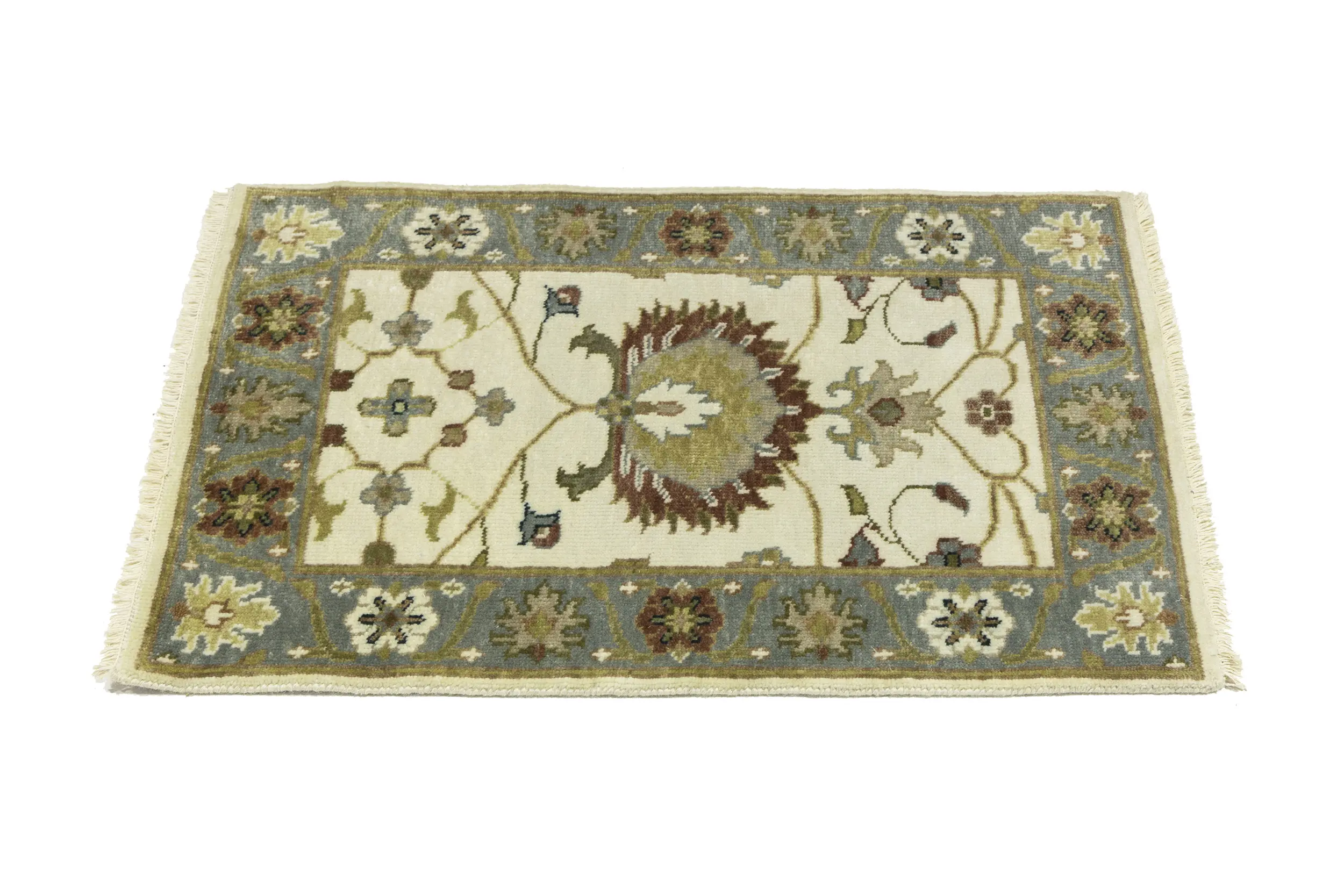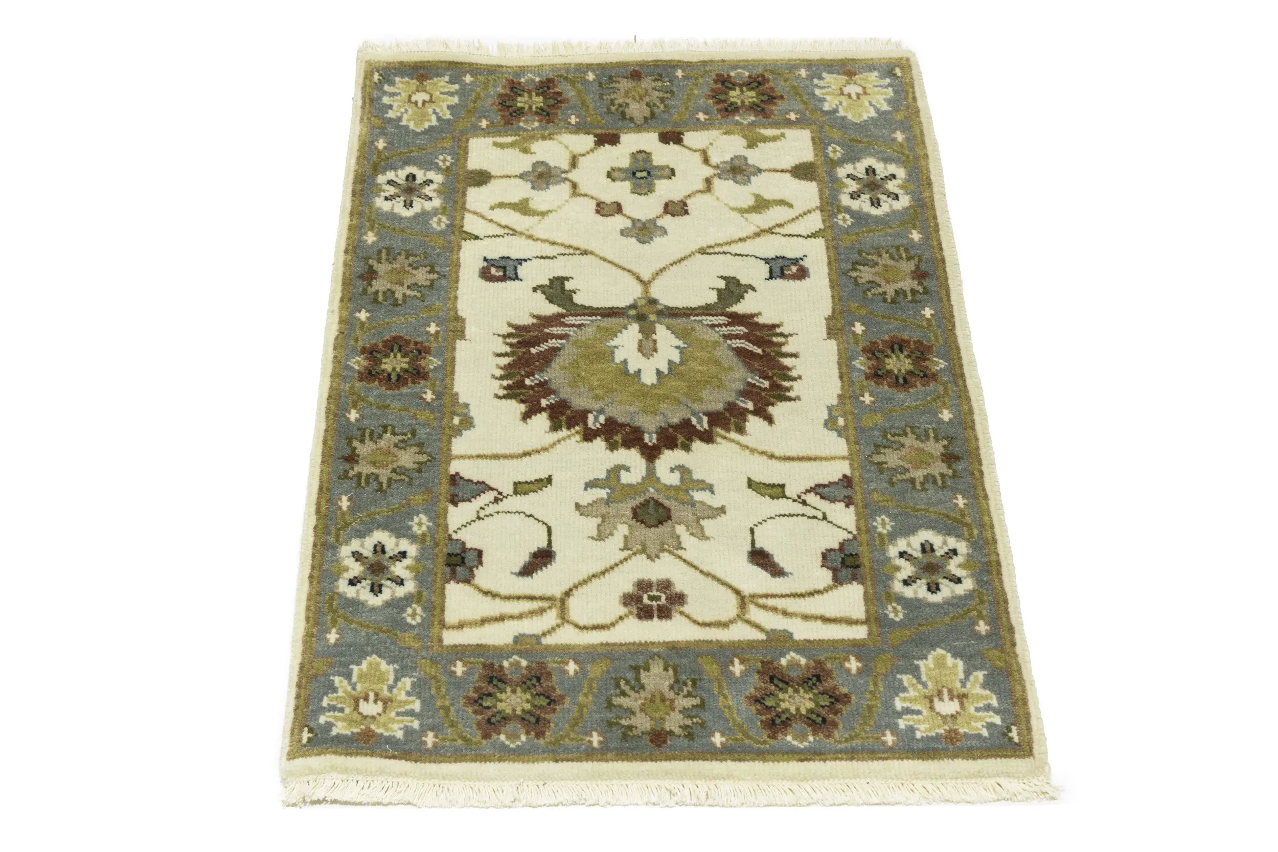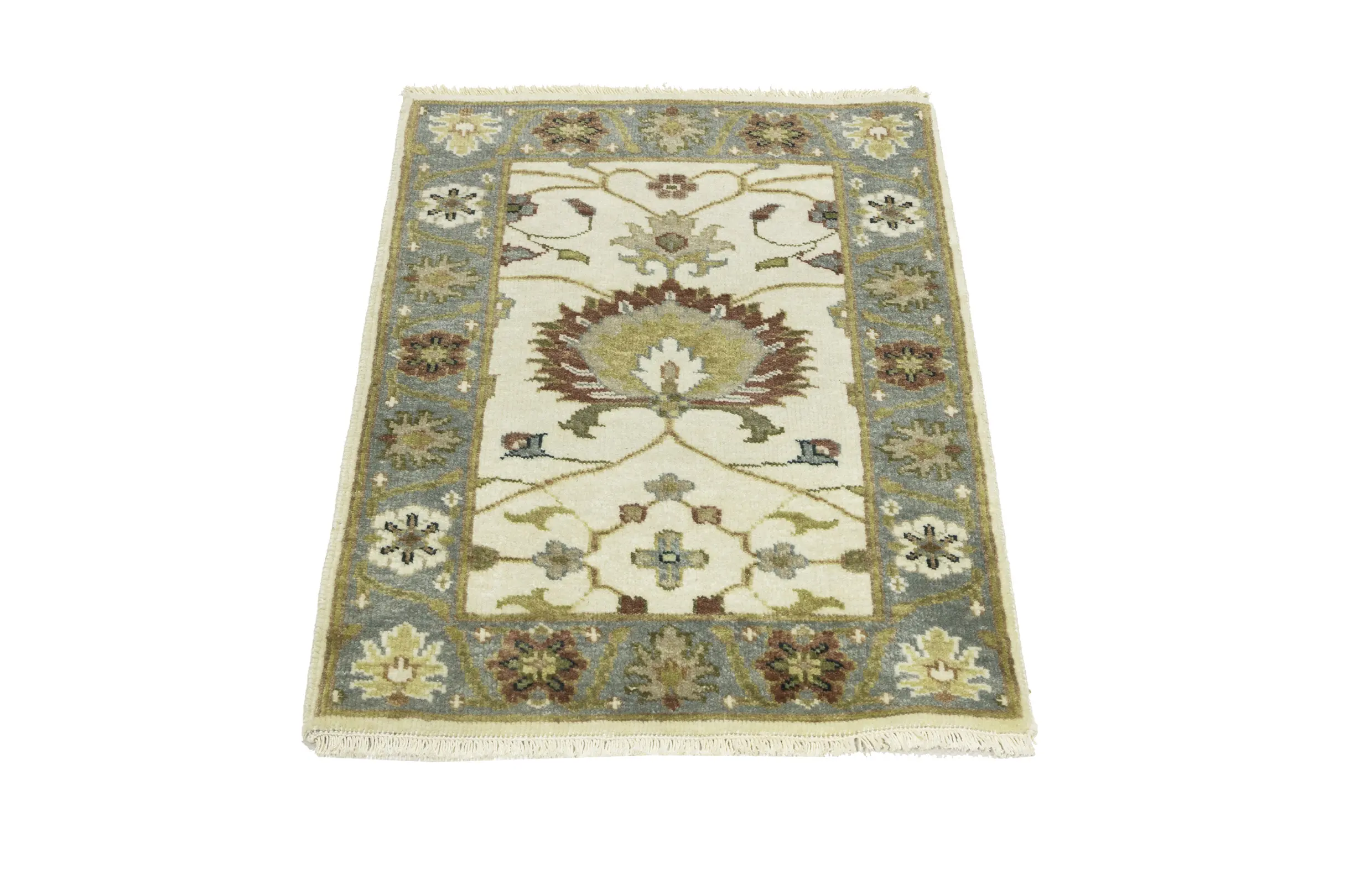 This genuine 2X3 Ivory new Oriental rug was made by the hands of gifted weavers inspired by a variety of spectacular artistic designs, to recreate the aged look of the original piece with a richness of color and ornately patterned background field. What set this vintage style Oriental area rug from the others are the material and dye used (wool pile and cotton foundation), knot count, ancient designs, fantastic grades, and its regional historical connection: it has deep roots, from the story of the people who produced it to the meaning of the symbols and colors displayed across its canvas that have been praised for centuries. This Indian home décor carpet will be completely cozy and inviting that never will go out of style! Also, this Oriental rug would be among your most valuable treasures, it is a great investment that accrues value over time, and it will last for generations because was woven with high-quality, all-natural wool. Environmentally friendly, opulent yet affordable; this rug will give you a thorough amount of character to help define your living space with elegance and warmth that will capture the eyes and attention of your audience (homeowners, designers, decorators, family and friends). OT-11490