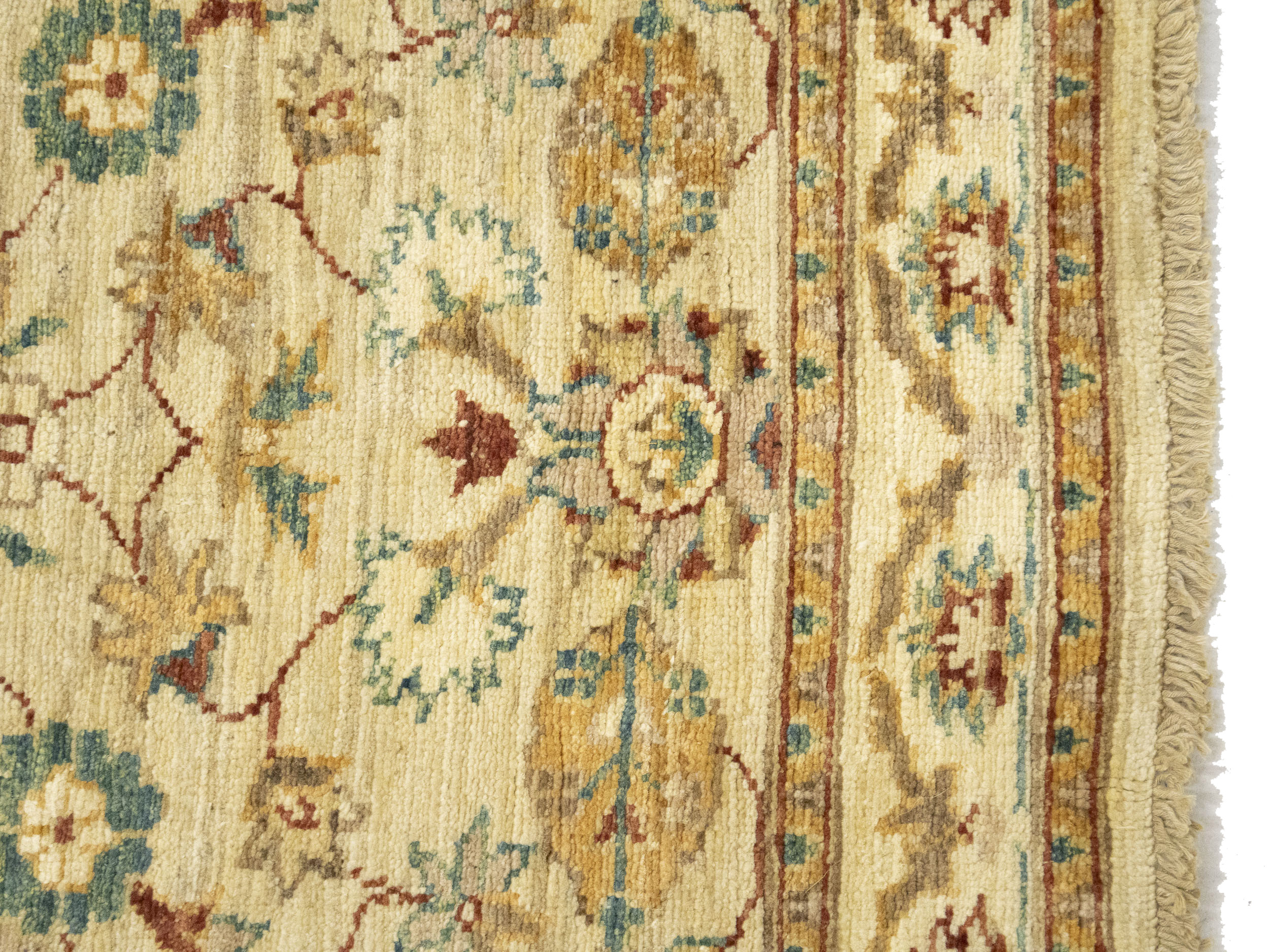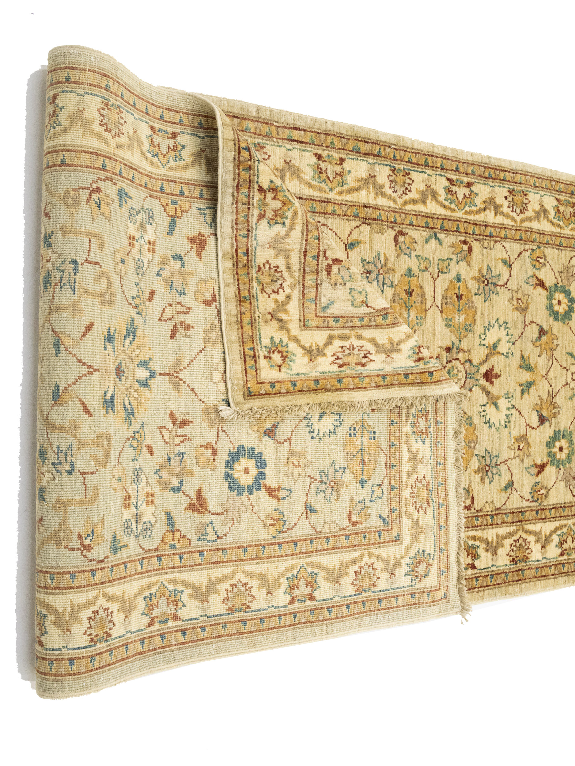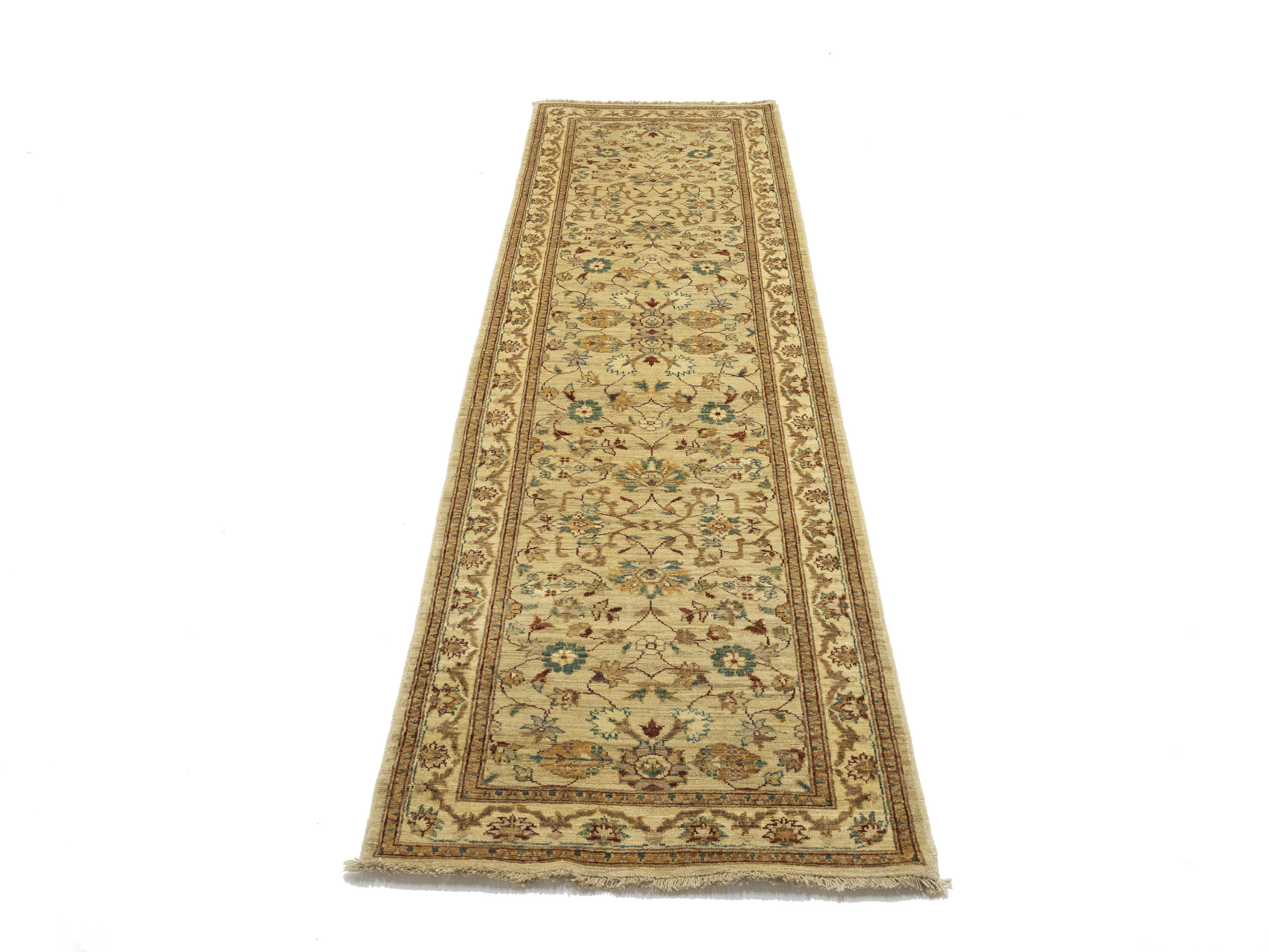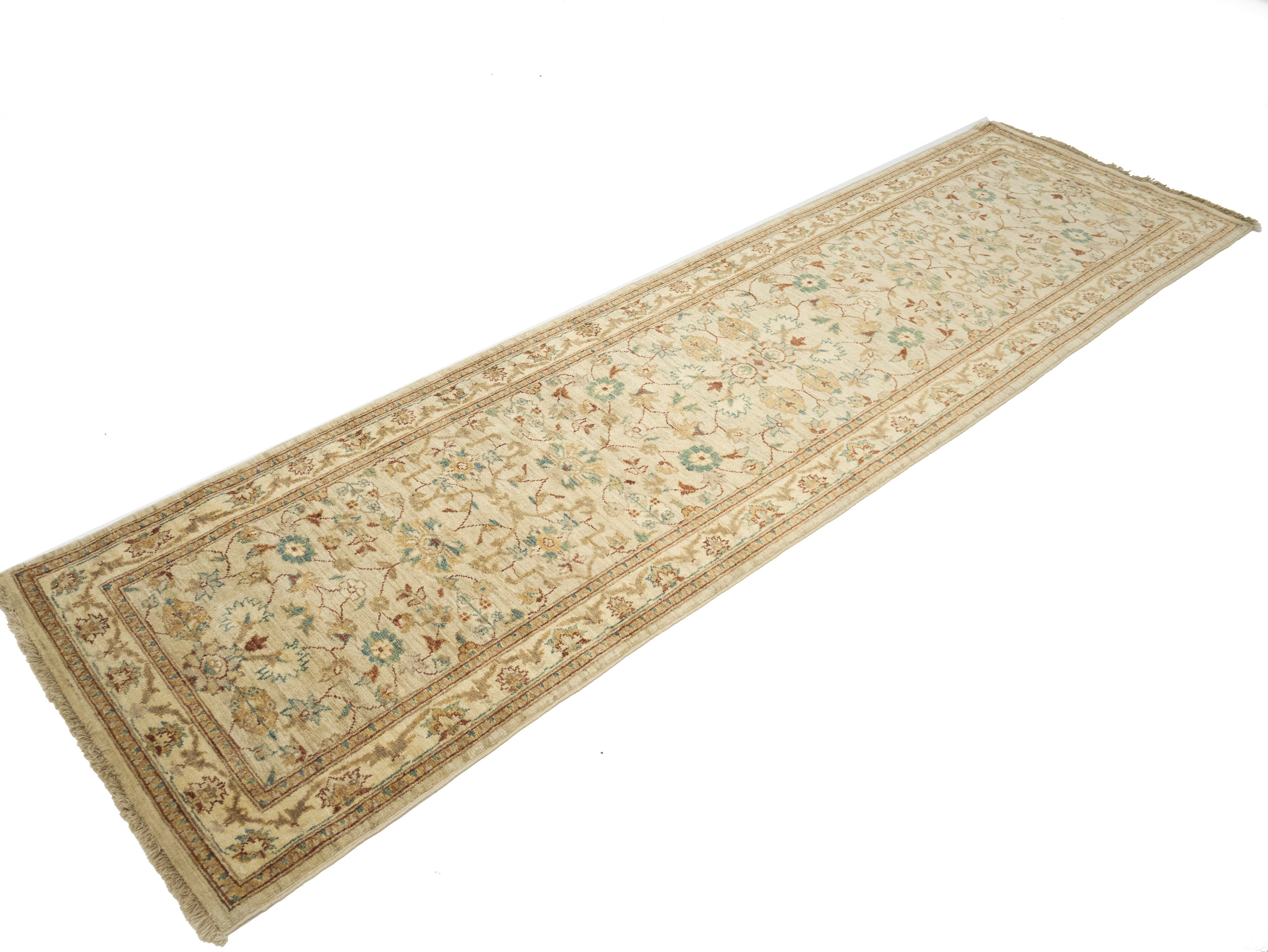 Hand Knotted 3X10 cream oriental runner rug made with natural dyes (fine wool pile and cotton foundation), superior knot count, and appealing ancient designs. This Oriental runner never will go out of style and would be among your most valuable treasures.