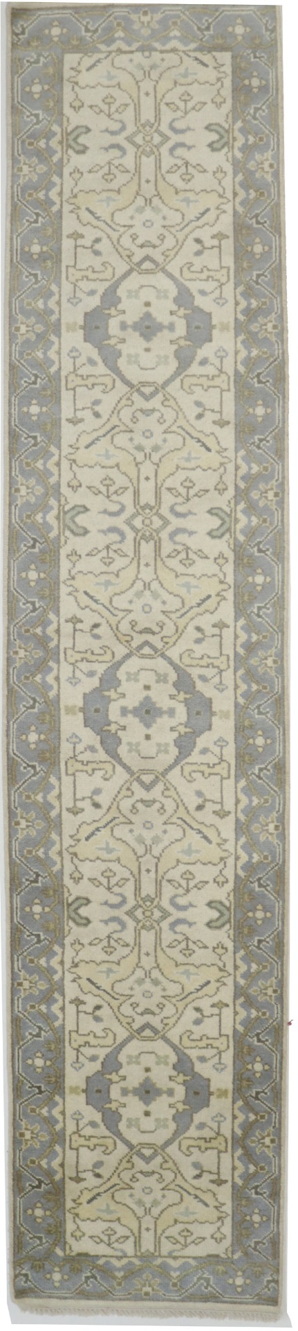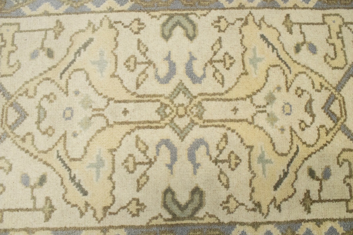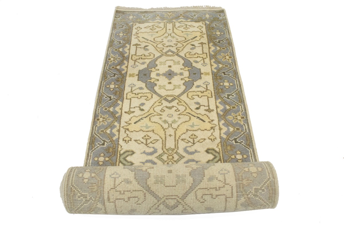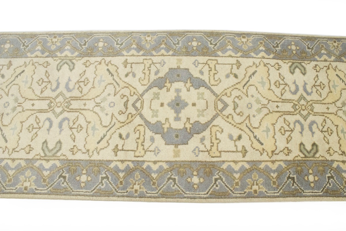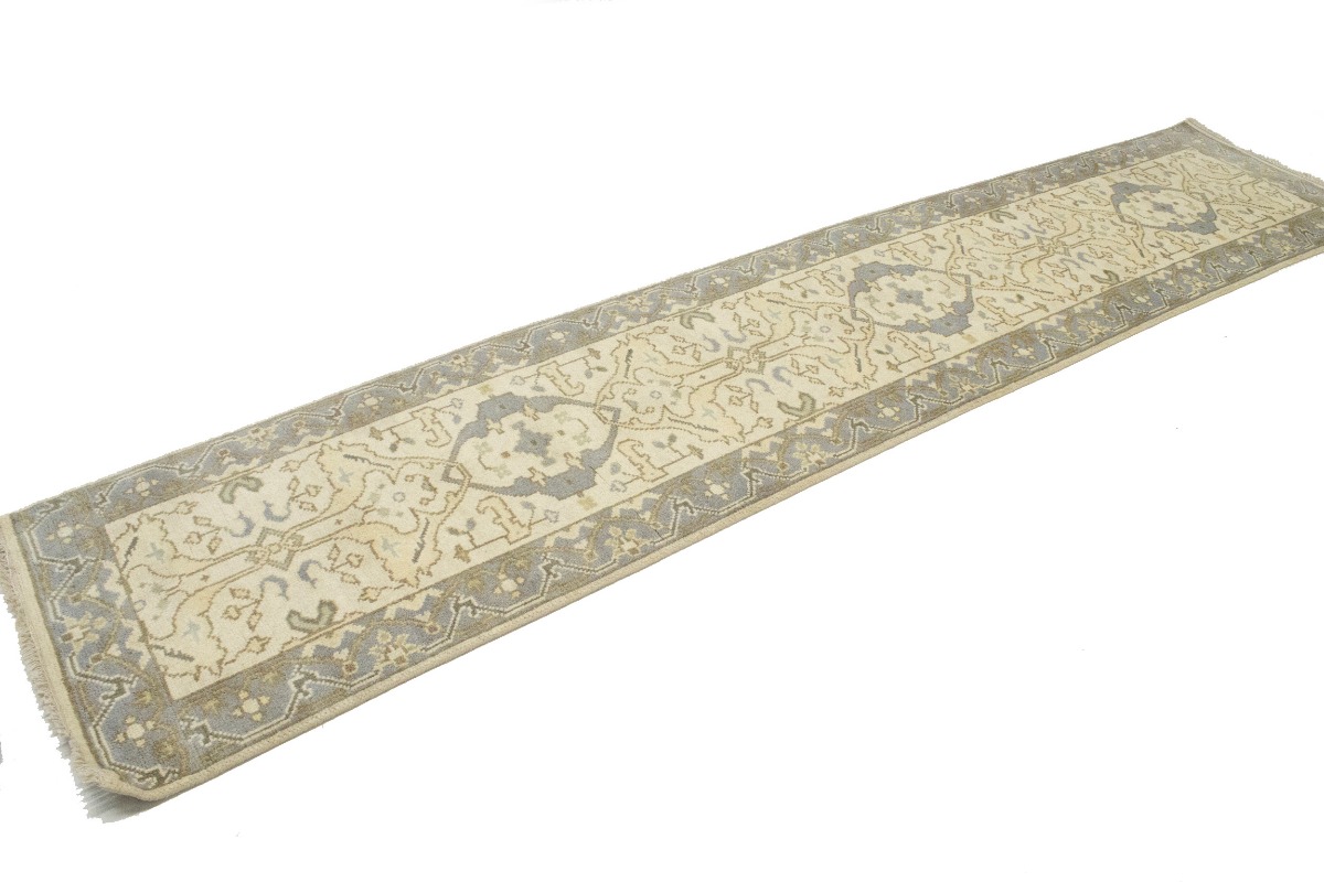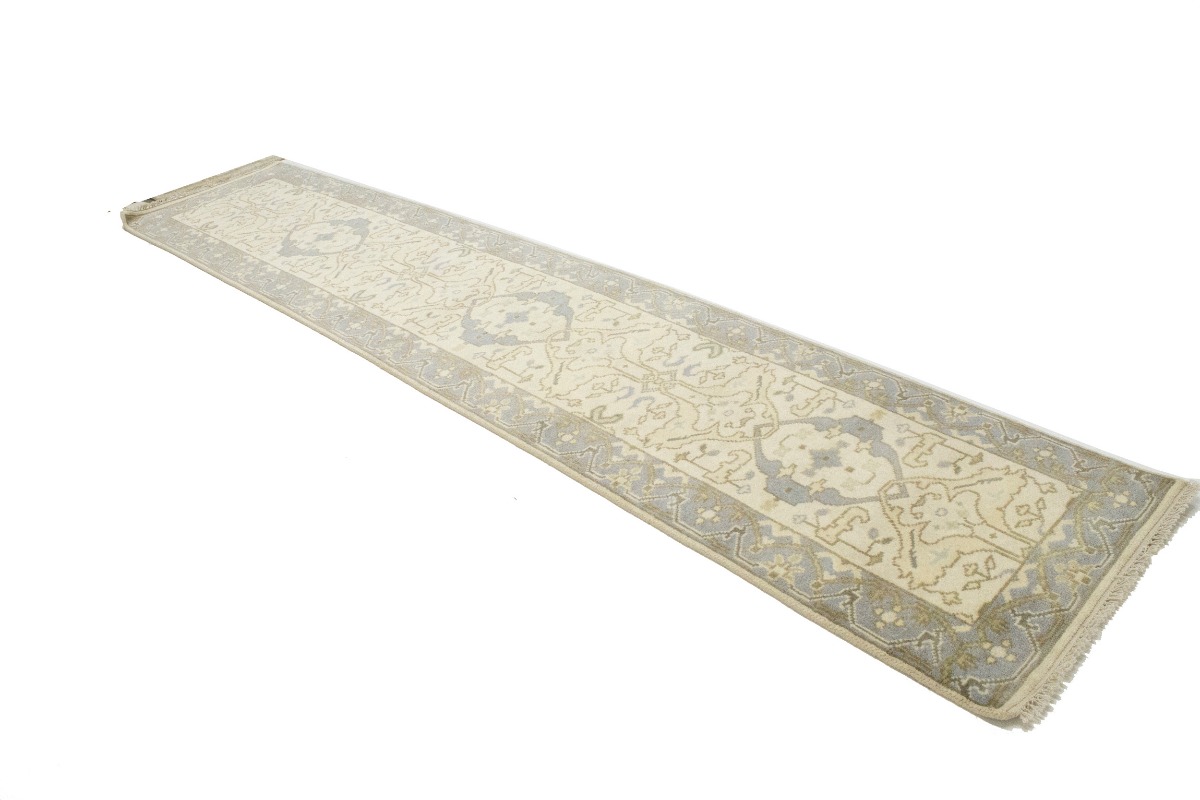This authentic 3X12 cream new Oriental runner was masterly knotted by the hands of weavers inspired by a variety of wonderful artistic designs, to recreate the aged look of the original piece with a richness of color and intricate patterned background field. What set this vintage style Oriental area runner from the others are the material and dye used (wool pile and cotton foundation), knot count, antique designs, fantastic grades, and its regional historical connection: it has deep roots, from the story of the people who produced it to the meaning of the symbols and colors displayed across its canvas that have been praised for centuries. This Indian home décor carpet will be completely cozy and inviting that never will go out of style! Also, this Oriental rug would be among your most valuable treasures, it is a great investment that accrues value over time, and it will last for generations because was woven with high-quality, all-natural wool. Environmentally friendly, opulent yet affordable; this runner will give you a thorough amount of character to help define your living space with luxury and warmth that will capture the eyes and attention of your audience (homeowners, designers, decorators, family and friends). OT-5909