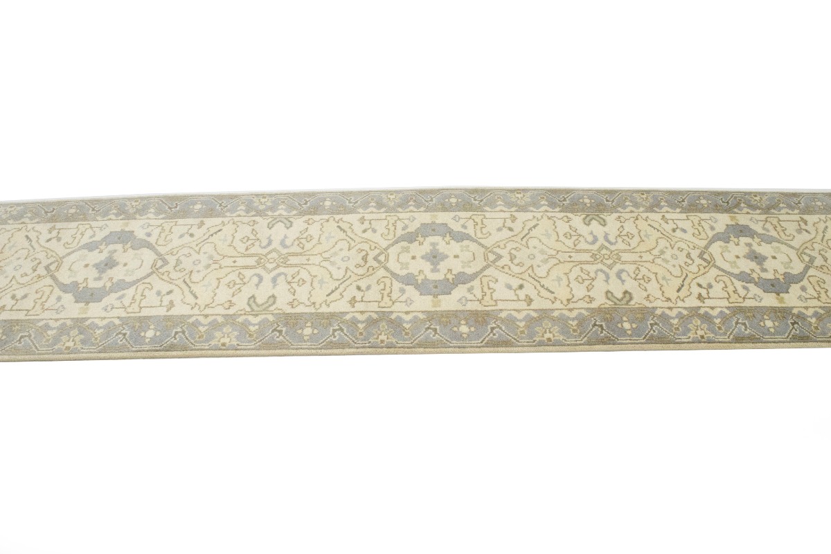 Handmade 3X12 cream Oriental runner made with vegetable dyes (fine wool pile and cotton foundation), superior knot count, and alluring ancient designs. This Oriental runner never will go out of style and would be among your most valuable treasures.