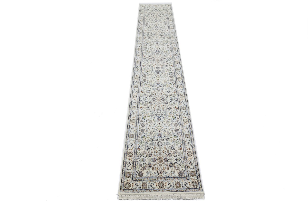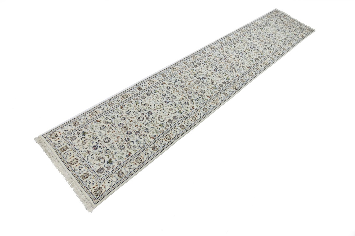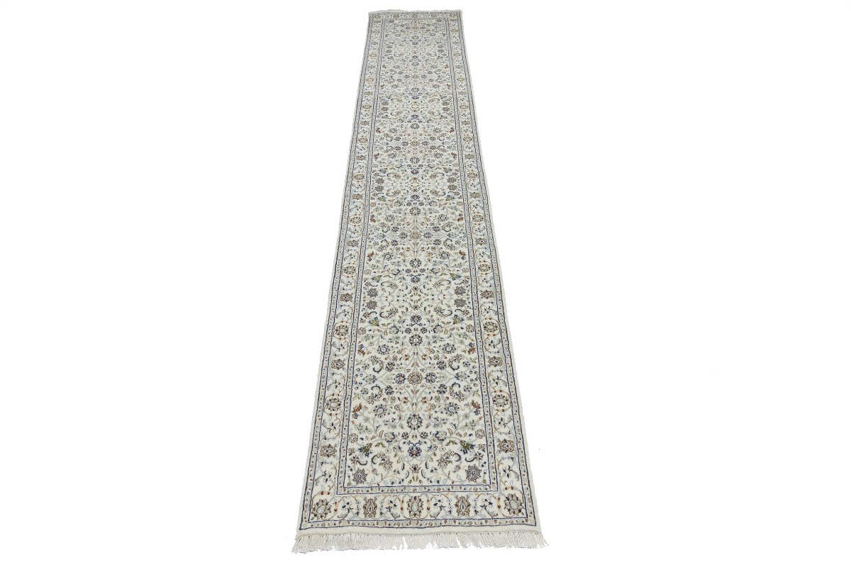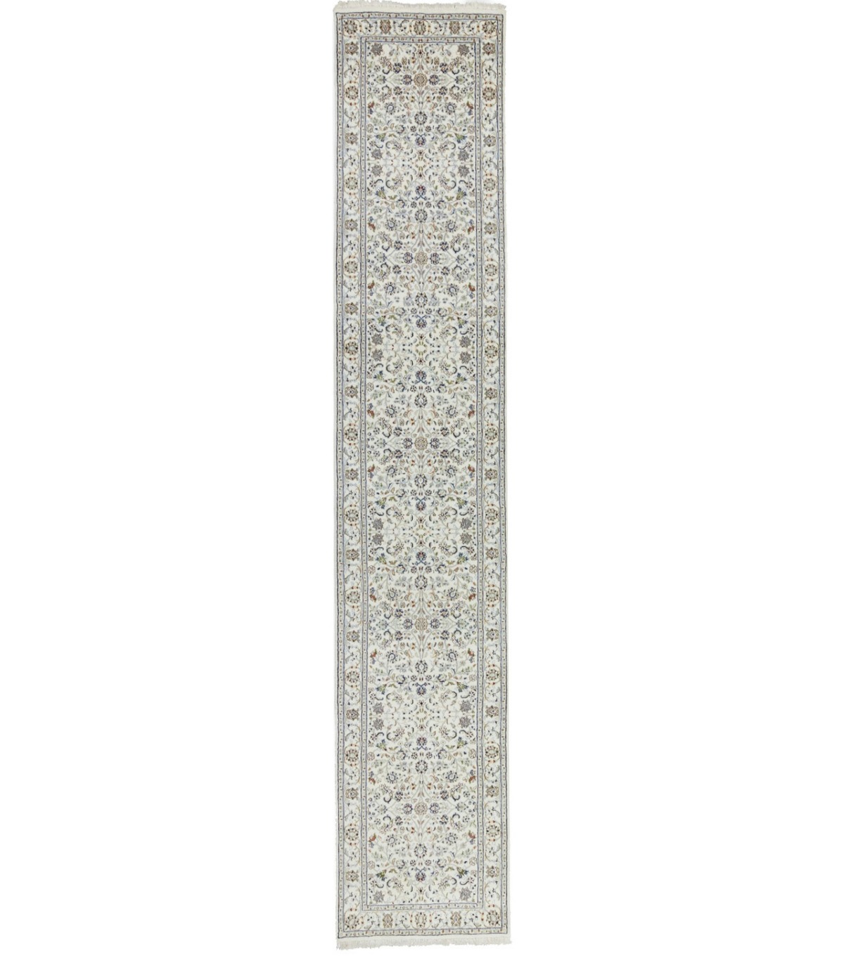 Cream Floral 3X13 Indo-Nain Oriental Runner Rug