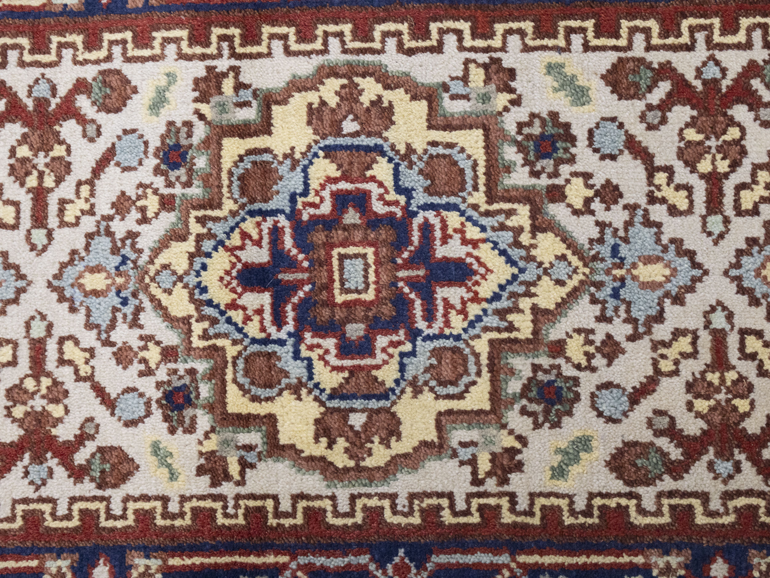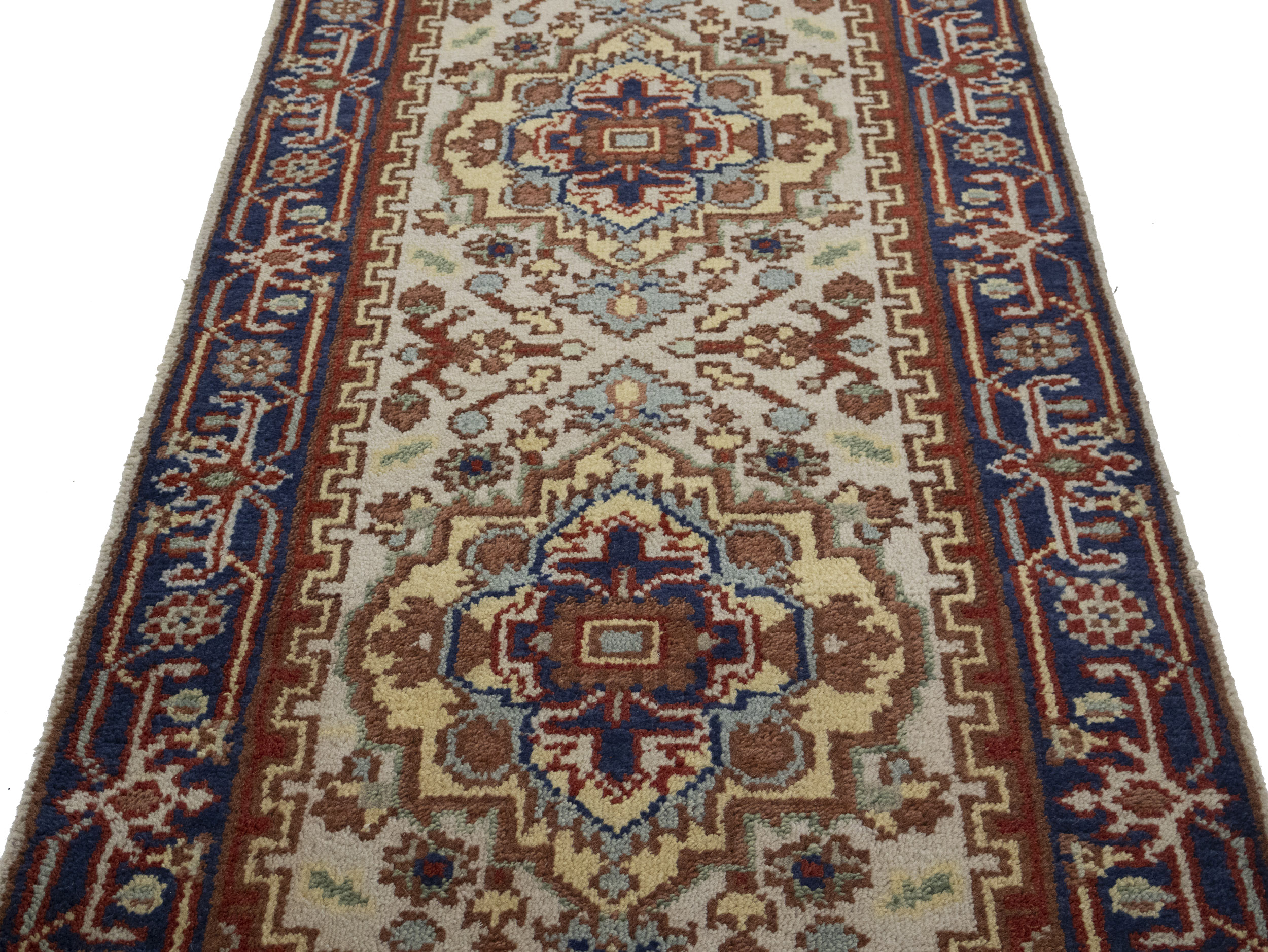 This original 3X16 cream new Oriental runner was finely knotted by the hands of weavers influenced by a variety of amazing artistic designs, to recreate the aged look of the exceptional piece with a richness of color and embellished background field. What set this vintage style Oriental area runner from the others are the material and dye used (wool pile and cotton foundation), knot count, antique designs, fantastic grades, and its regional historical connection: it has deep roots, from the story of the people who produced it to the meaning of the symbols and colors displayed across its canvas that have been praised for centuries. This Indian home décor carpet will be completely cozy and inviting that never will go out of style!