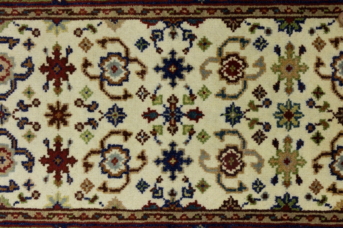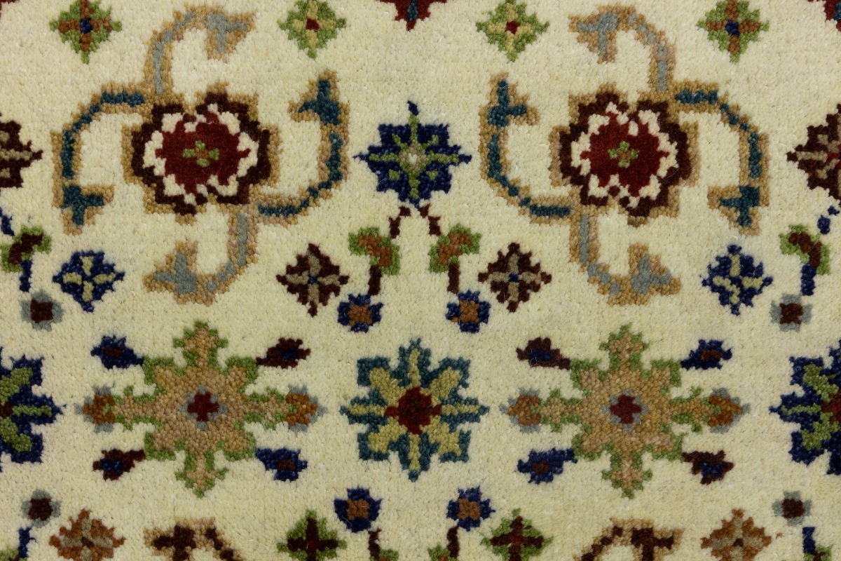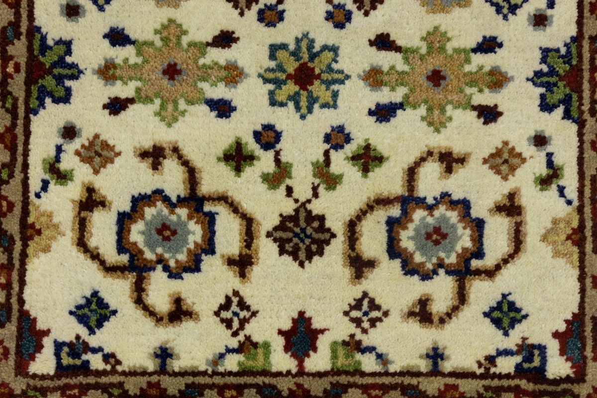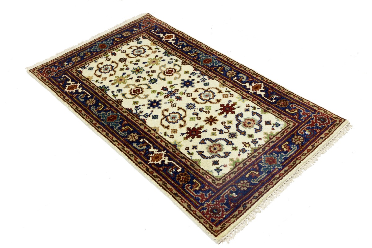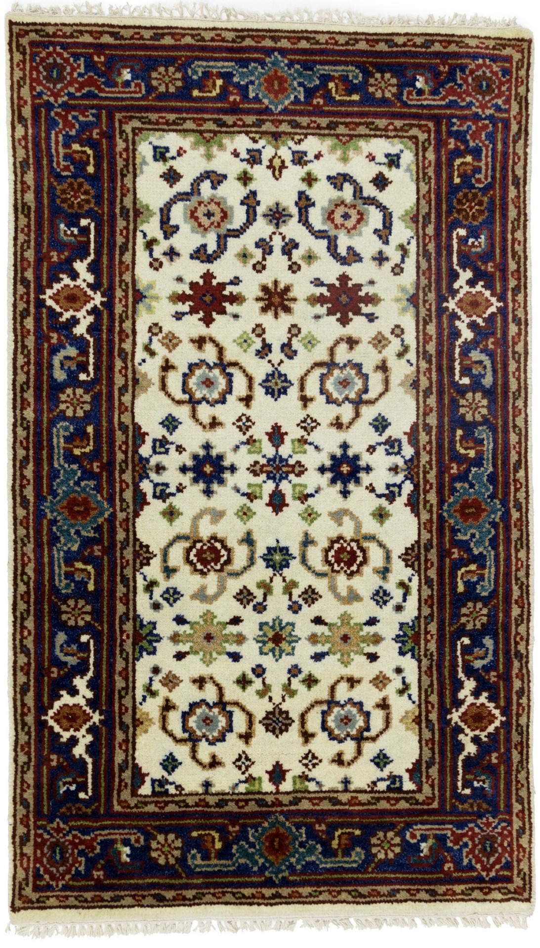 This original 3X5 cream new Oriental rug was finely knotted by the hands of weavers influenced by a variety of amazing artistic designs, to recreate the aged look of the exceptional piece with a richness of color and embellished background field. What set this vintage style Oriental area rug from the others are the material and dye used (wool pile and cotton foundation), knot count, antique designs, fantastic grades, and its regional historical connection: it has deep roots, from the story of the people who produced it to the meaning of the symbols and colors displayed across its canvas that have been praised for centuries. This Indian home décor carpet will be completely cozy and inviting that never will go out of style! Also, this Oriental rug would be among your most valuable treasures, it is a great investment that increase in value over time, and it will last a lifetime because was woven with high-quality, all-natural wool. Eco-friendly, opulent yet affordable; this rug will give you an extra pop of character to help define your home environment with luxury and warmth that will capture the eyes and attention of your audience (homeowners, designers, decorators, family and friends). OT-7723