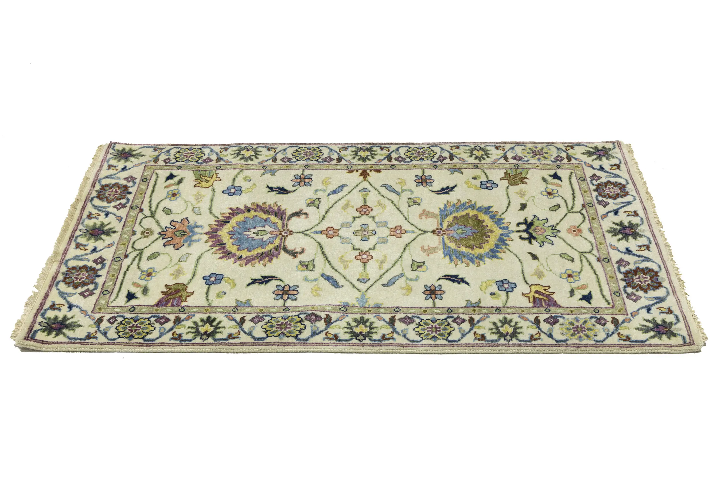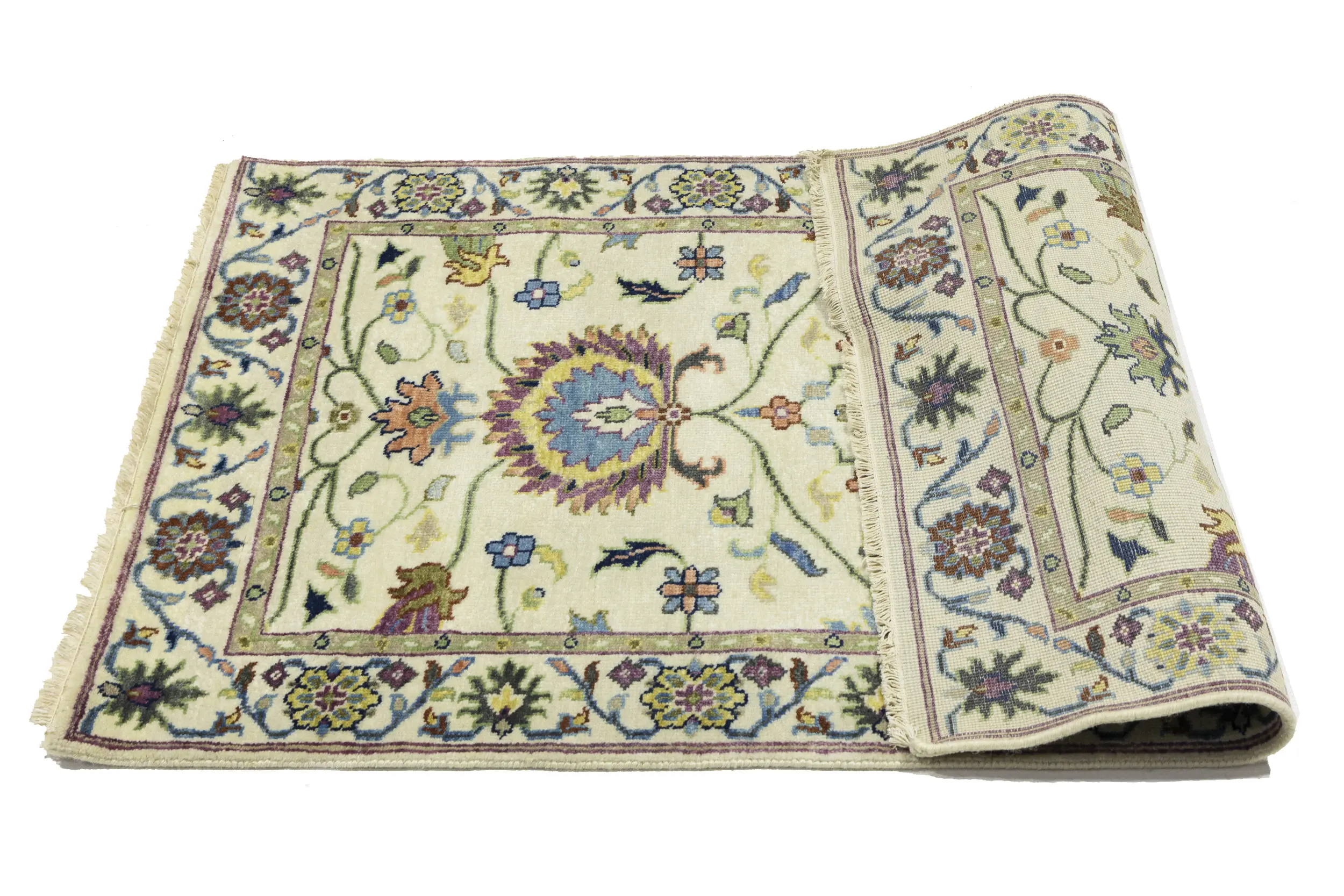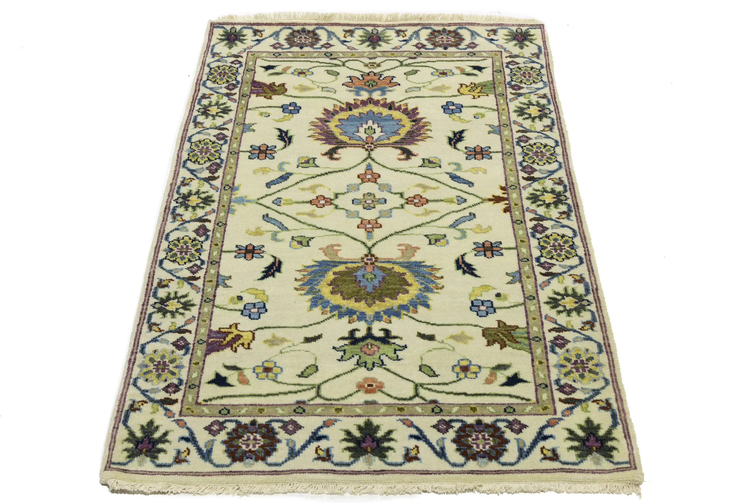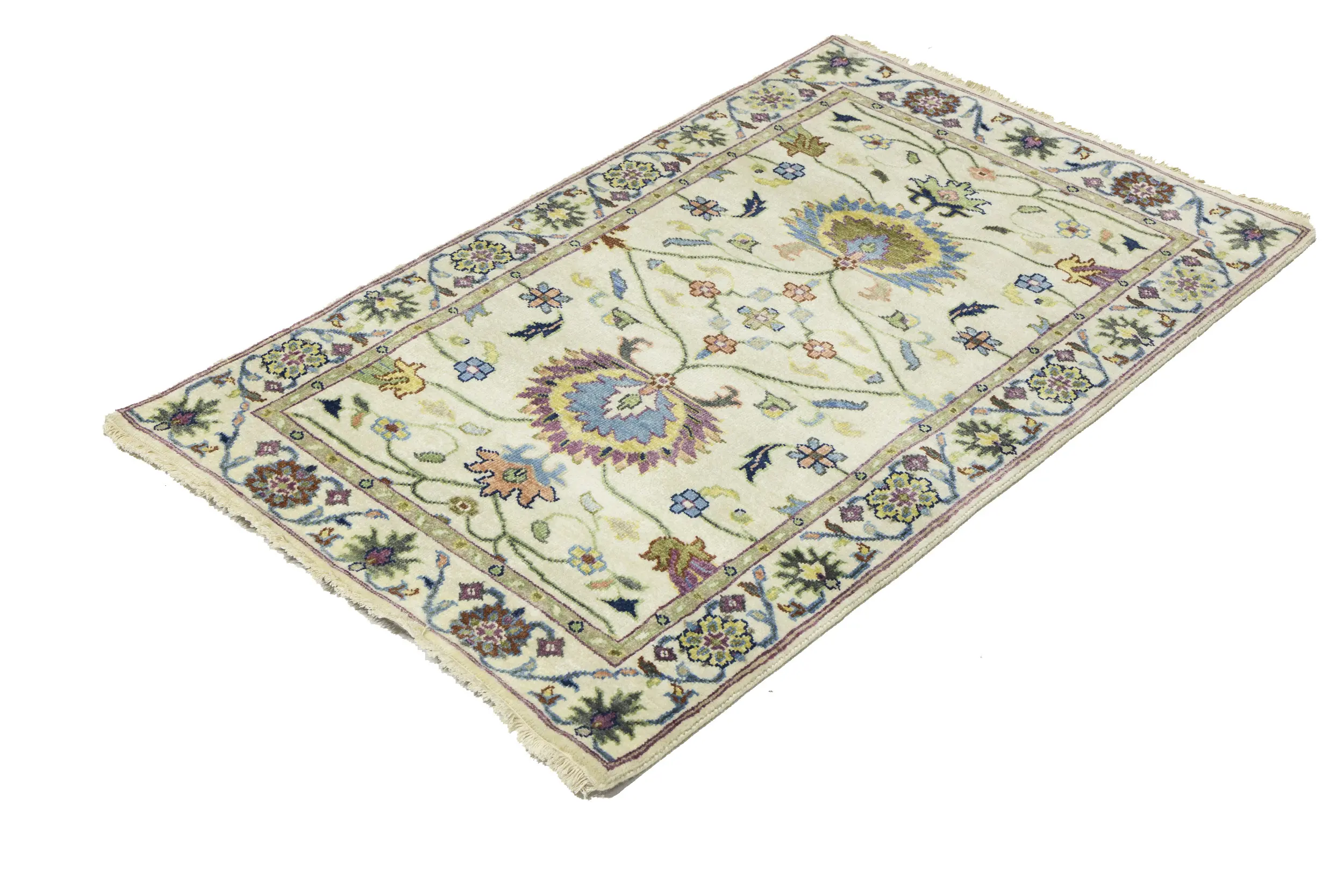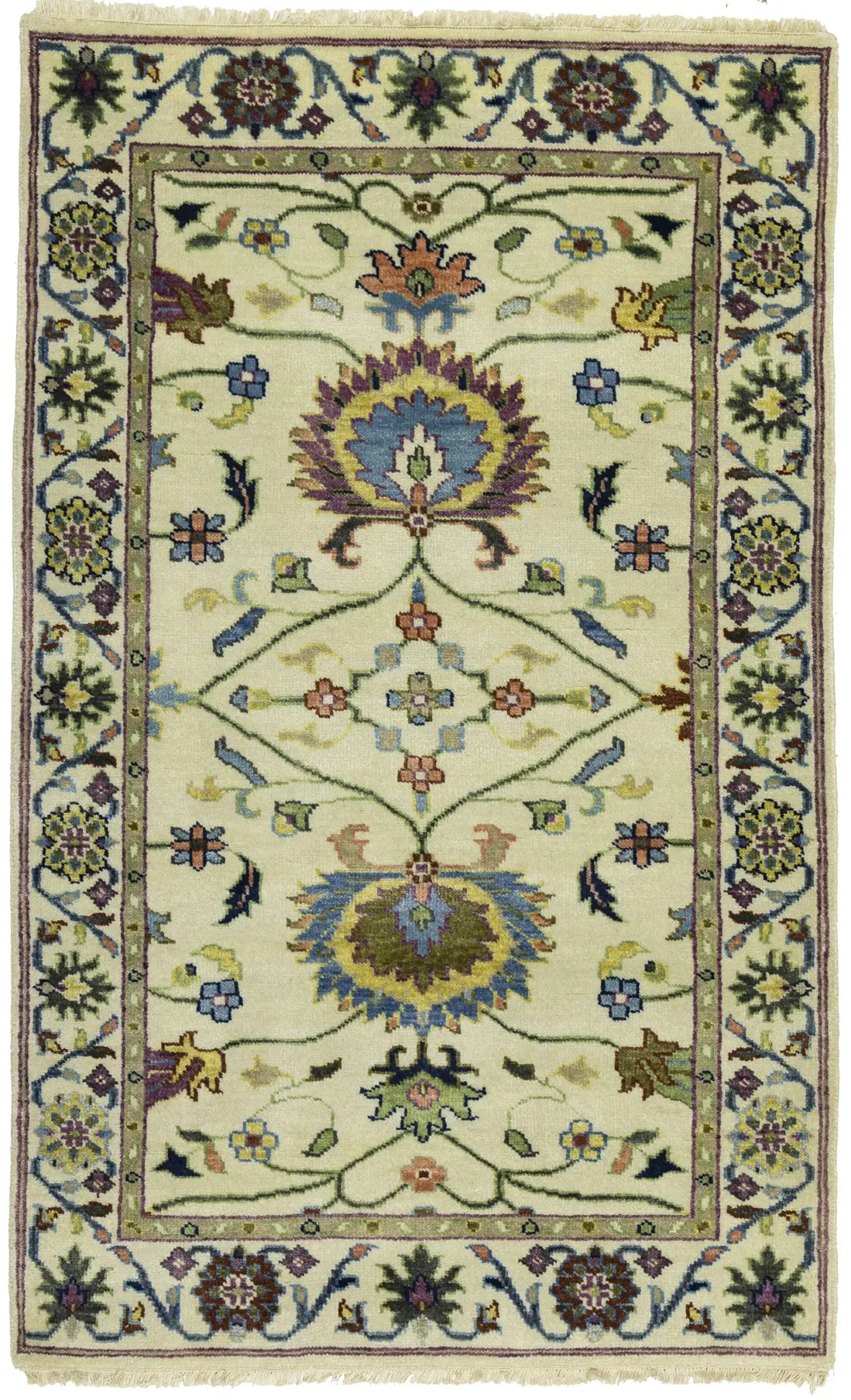 Cream Floral 3X5 Oushak Chobi Oriental Rug