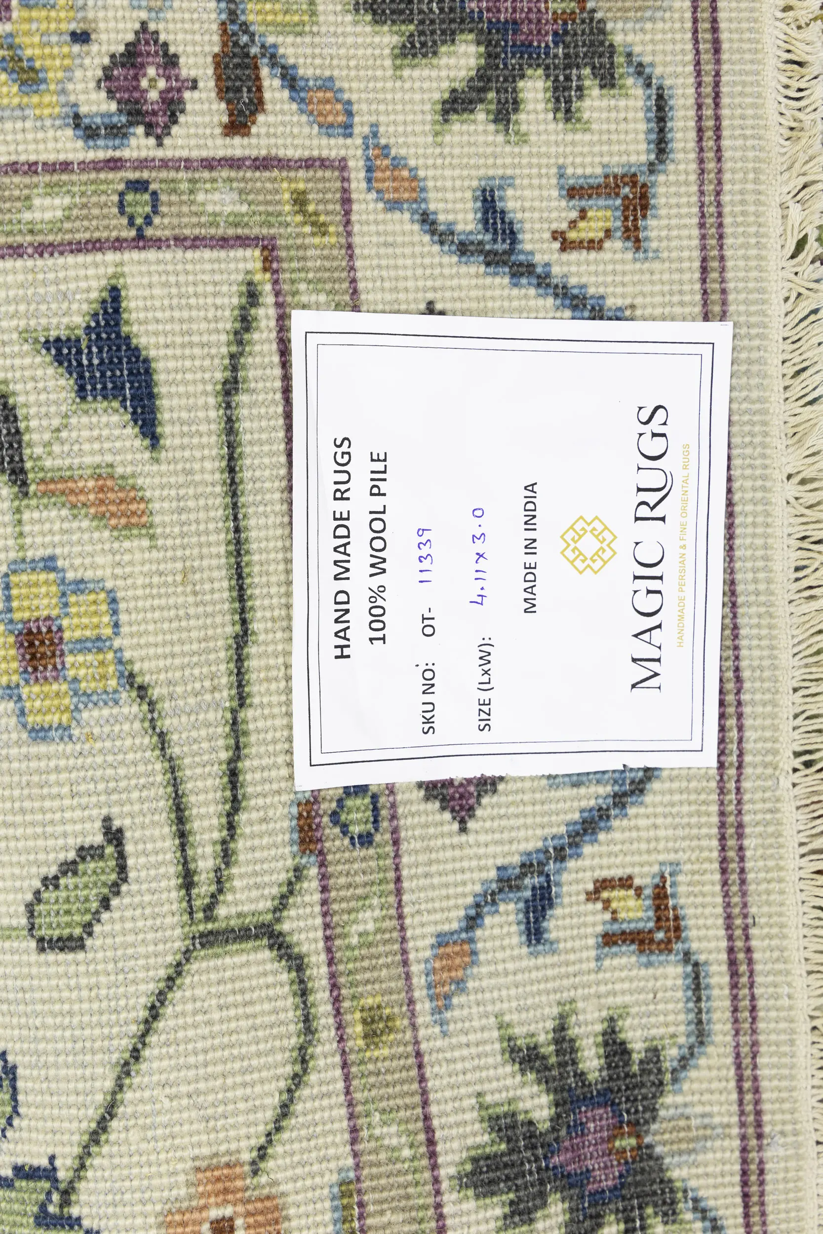 This genuine 3X5 cream new Oriental rug was made by the hands of gifted weavers inspired by a variety of spectacular artistic designs, to recreate the aged look of the original piece with a richness of color and ornately patterned background field. What set this vintage style Oriental area rug from the others are the material and dye used (wool pile and cotton foundation), knot count, ancient designs, fantastic grades, and its regional historical connection: it has deep roots, from the story of the people who produced it to the meaning of the symbols and colors displayed across its canvas that have been praised for centuries. This Indian home décor carpet will be completely cozy and inviting that never will go out of style! Also, this Oriental rug would be among your most valuable treasures, it is a great investment that accrues value over time, and it will last for generations because was woven with high-quality, all-natural wool. Environmentally friendly, opulent yet affordable; this rug will give you a thorough amount of character to help define your living space with elegance and warmth that will capture the eyes and attention of your audience (homeowners, designers, decorators, family and friends). OT-11339