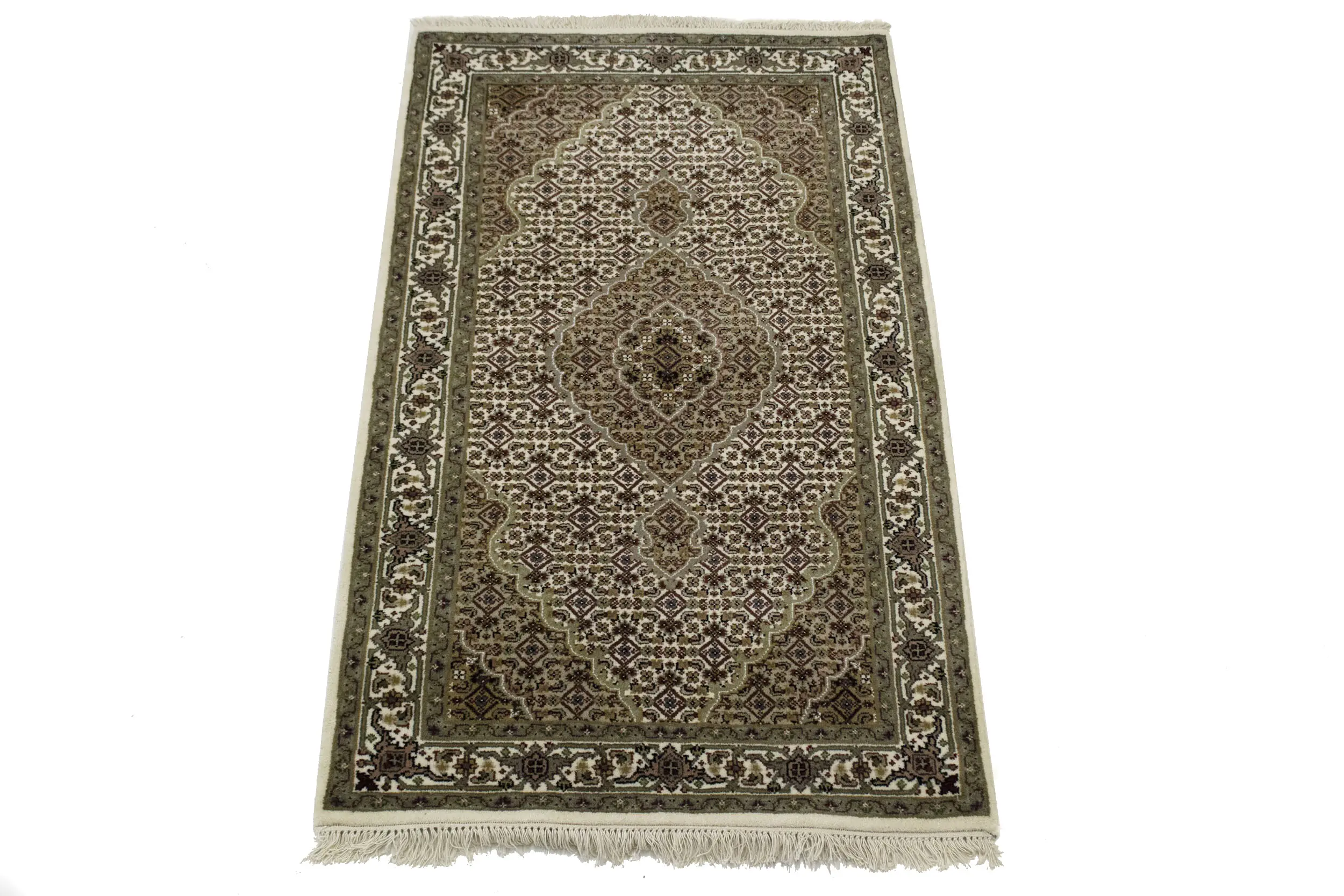 Handmade 3X5 cream oriental rug made with natural dyes (fine wool pile and cotton foundation), superior knot count, and appealing ancient designs. This Oriental rug never will go out of style and would be among your most valuable treasures.