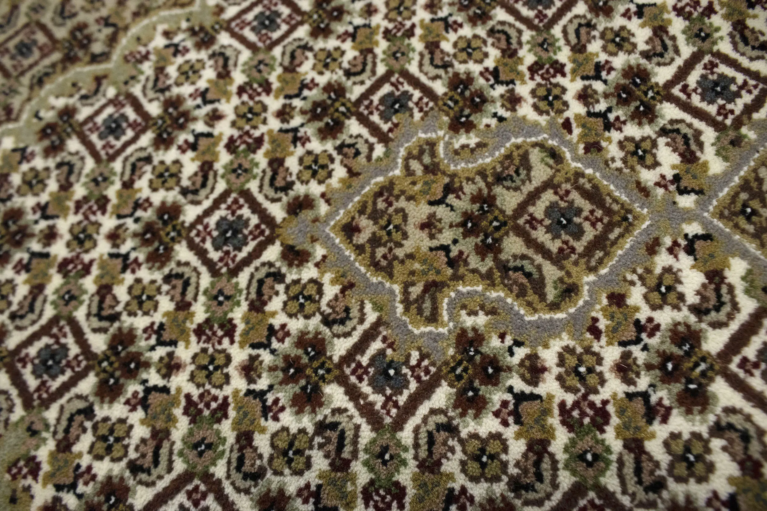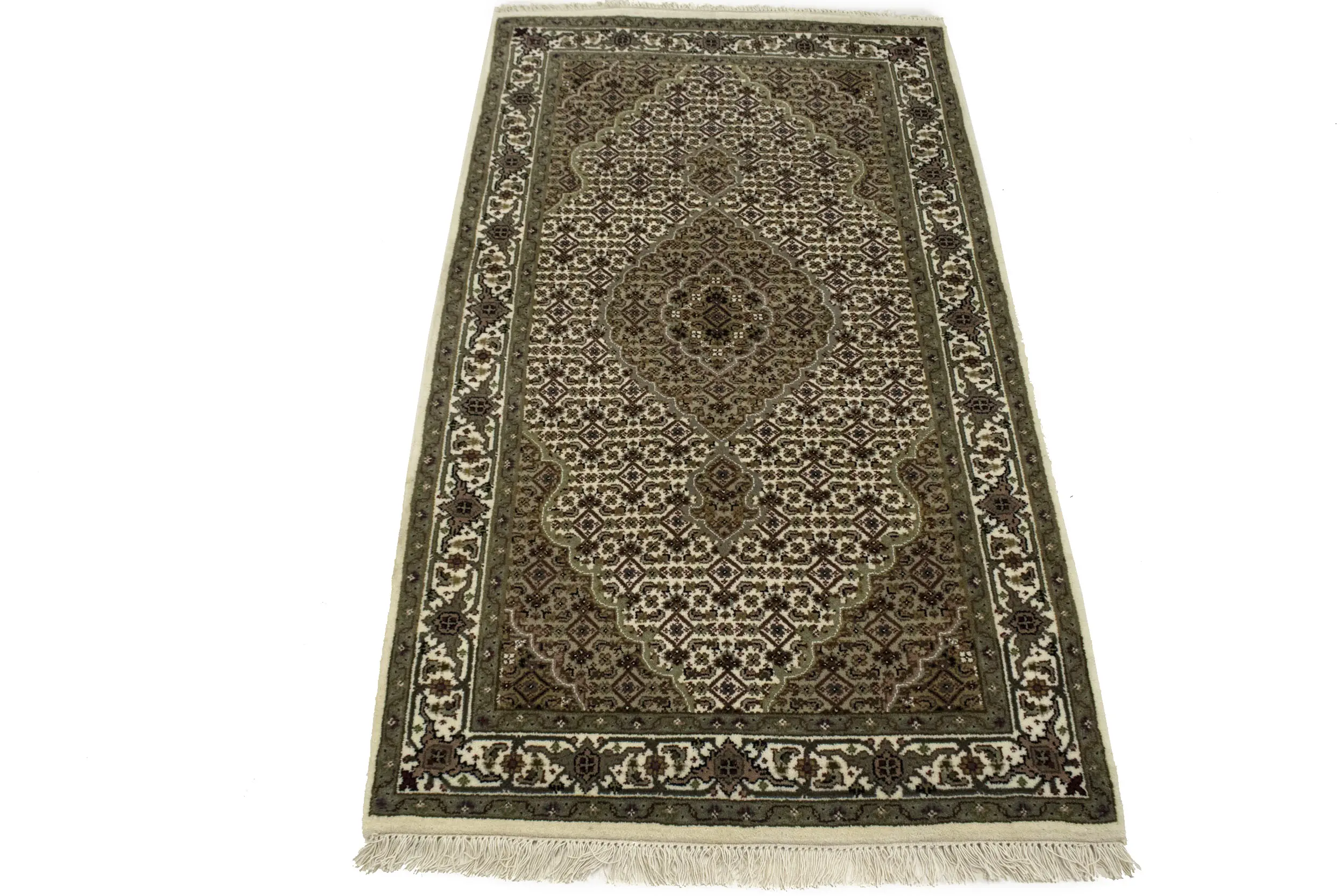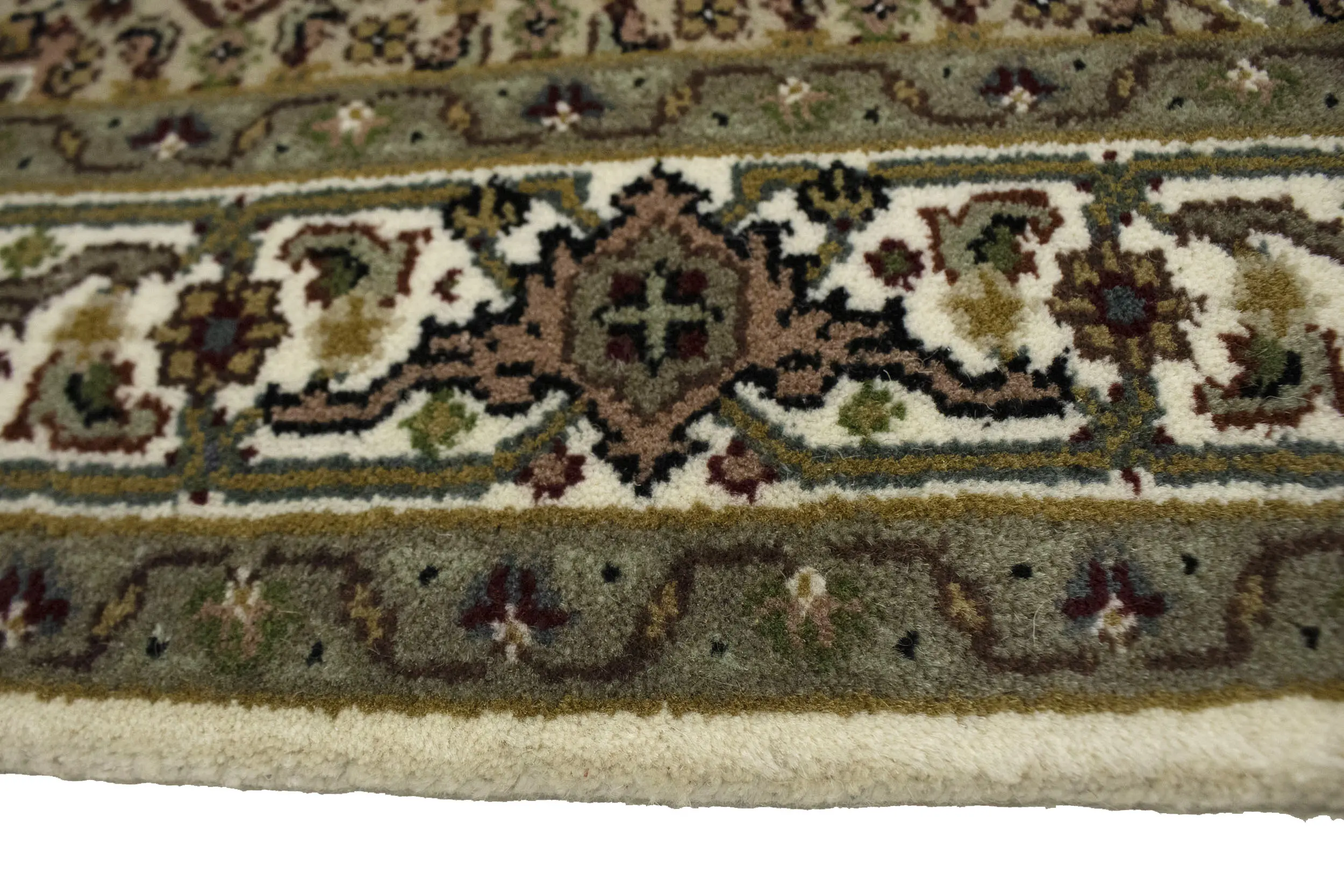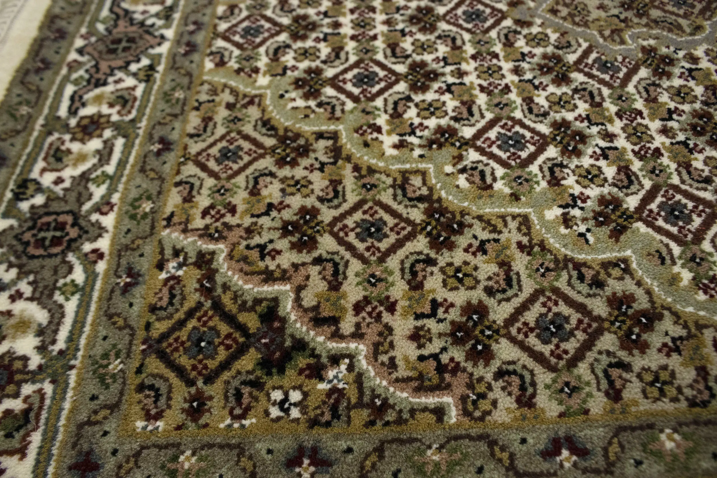 This authentic 3X5 cream new Oriental rug was crafted by the hands of skilled weavers enthused by a variety of lovely artistic designs, to recreate the aged look of the unique piece with a richness of color and beautifully elaborated background field. What set this vintage style Oriental area rug from the others are the material and dye used (wool pile and cotton foundation), knot count, ancient designs, fantastic grades, and its regional historical connection: it has deep roots, from the story of the people who produced it to the meaning of the symbols and colors displayed across its canvas that have been praised for centuries. This Indian home décor carpet will be completely cozy and inviting that never will go out of style! Also, this Oriental rug would be among your most valuable treasures, it is a great investment that increase in value over time, and it will last for generations because was woven with high-quality, all-natural wool. Environmentally friendly, opulent yet affordable; this rug/runner will give you a thorough amount of character to help define your living space with sophistication and warmth that will capture the eyes and attention of your audience (homeowners, designers, decorators, family and friends). OT-2443