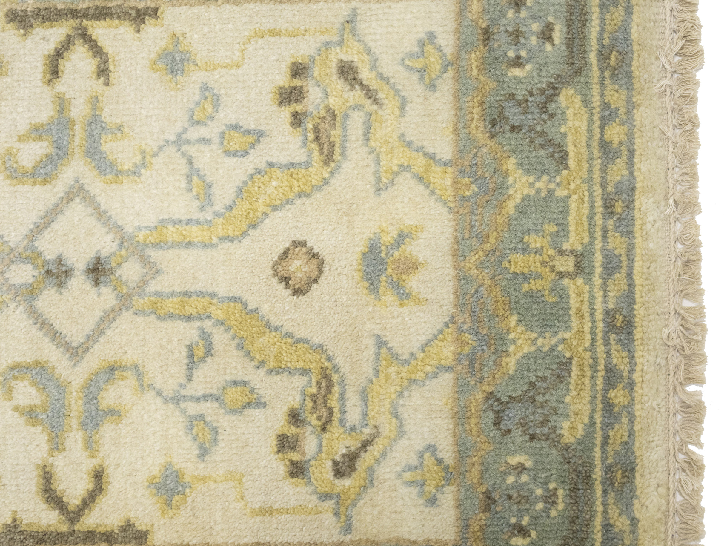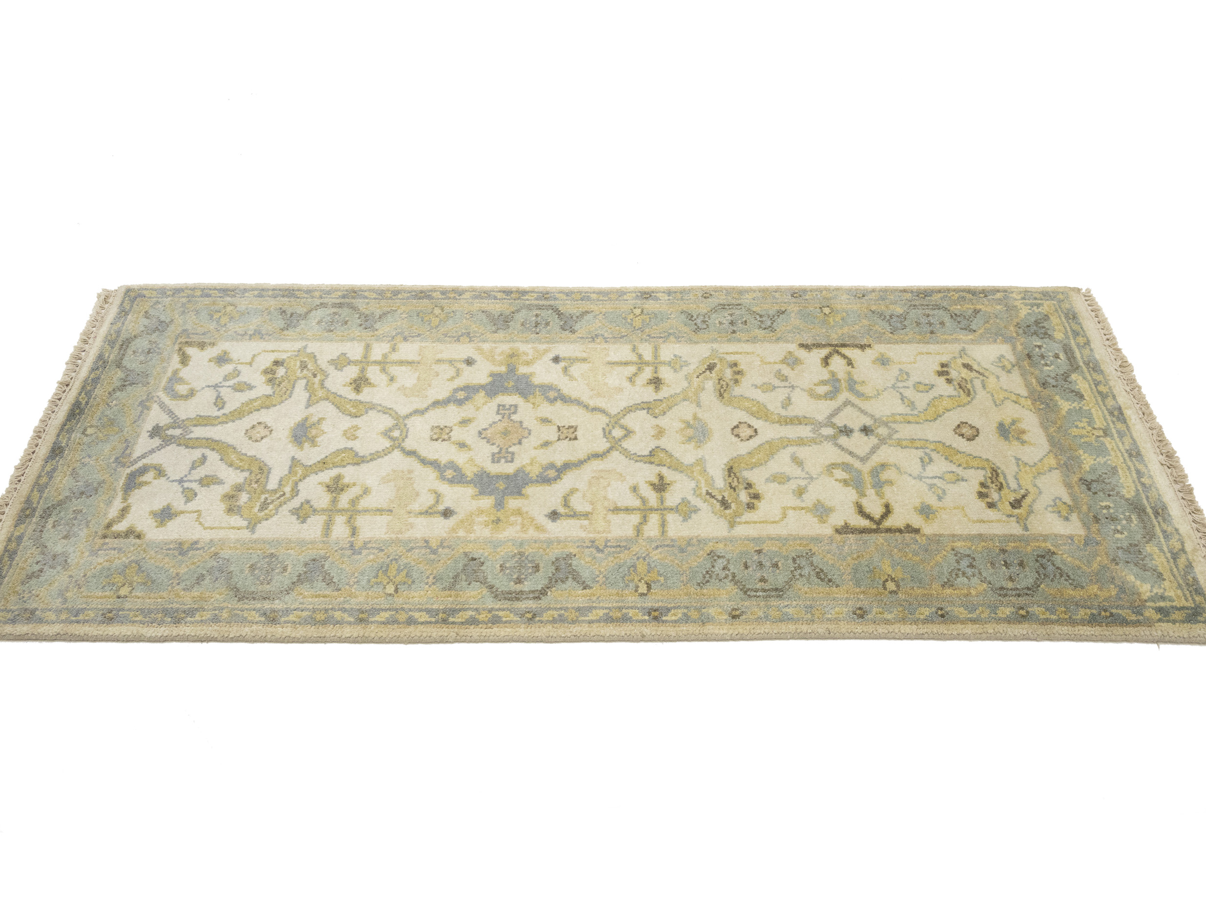 This genuine 3X6 cream new Oriental rug was well-constructed by the hands of master weavers motivated by a variety of stunning artistic designs, to recreate the aged look of the exceptional piece with a richness of color and developed decorative background field. What set this vintage style Oriental area rug from the others are the material and dye used (wool pile and cotton foundation), knot count, ancient designs, fantastic grades, and its regional historical connection: it has deep roots, from the story of the people who produced it to the meaning of the symbols and colors displayed across its canvas that have been praised for centuries. This Indian home décor carpet will be completely cozy and inviting that never will go out of style! Also, this Oriental rug would be among your most valuable treasures, it is a great investment that increase in value over time, and it will last a lifetime because was woven with high-quality, all-natural wool. Eco-friendly, opulent yet affordable; this rug give you an extra pop of character to help define your home environment with elegance and warmth that will capture the eyes and attention of your audience (homeowners, designers, decorators, family and friends). OT-4396