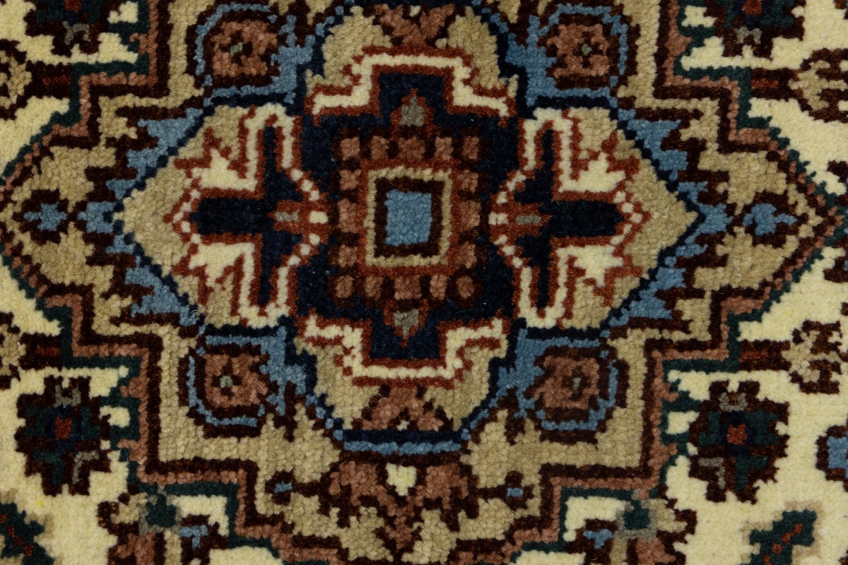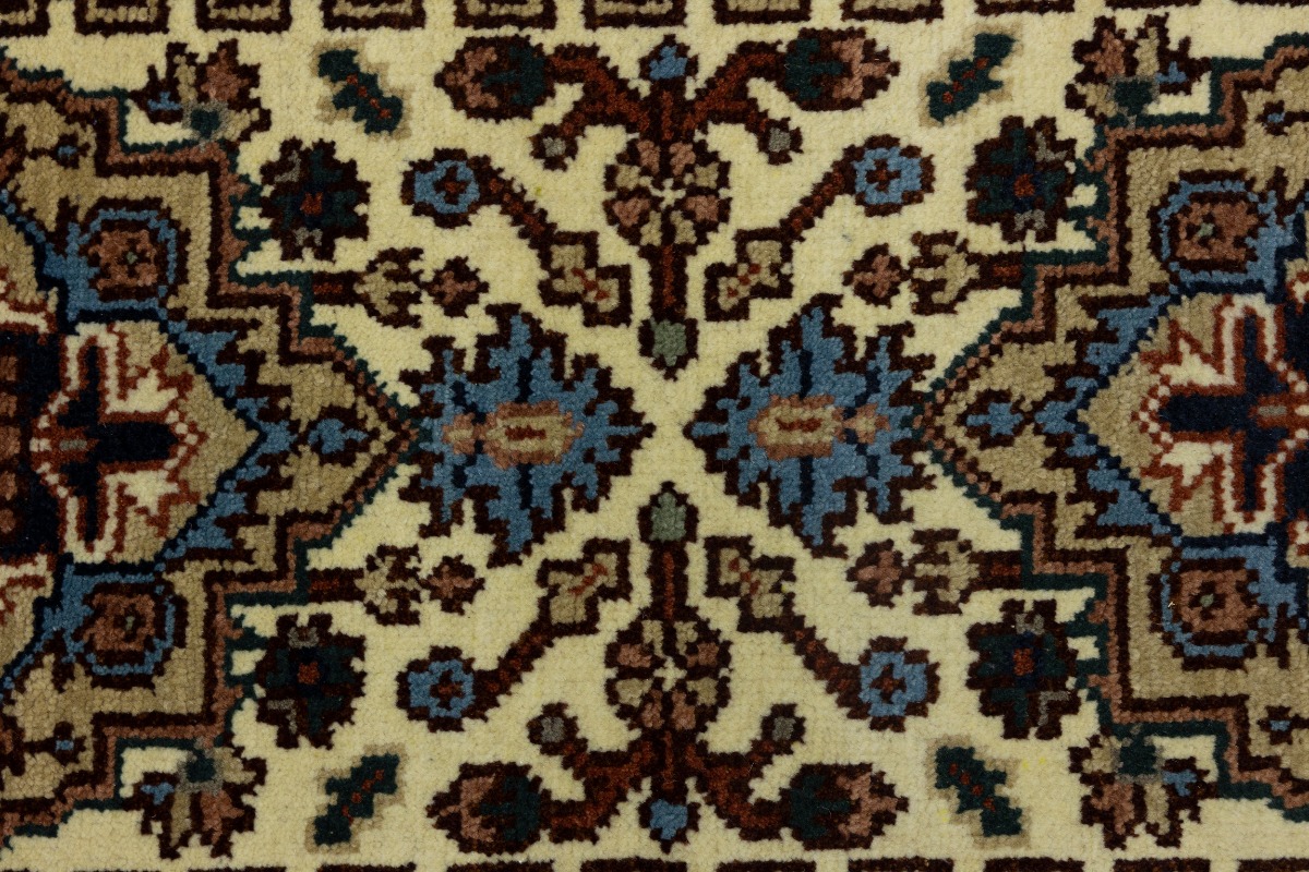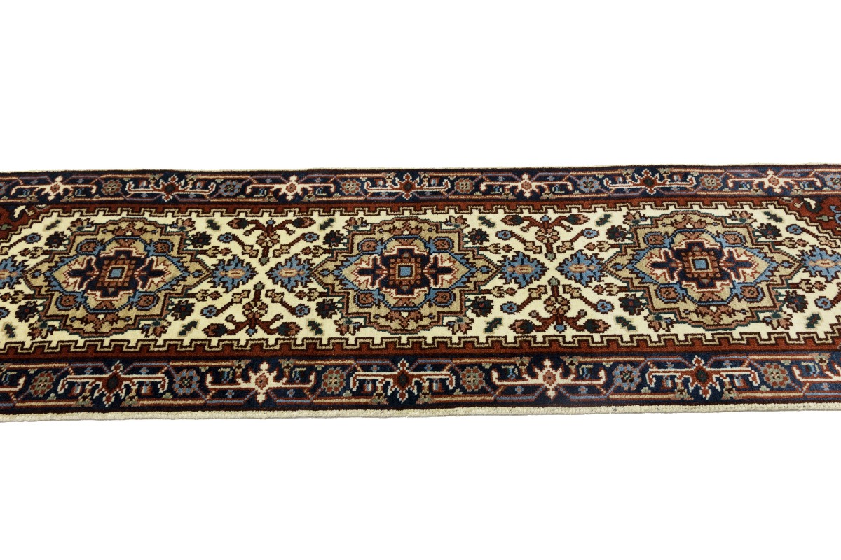Handmade 3X8 cream oriental runner made with vegetable dyes (fine wool pile and cotton foundation), exceptional knot count, and appealing ancient designs. This Oriental runner never will go out of style and would be among your most valuable treasures.