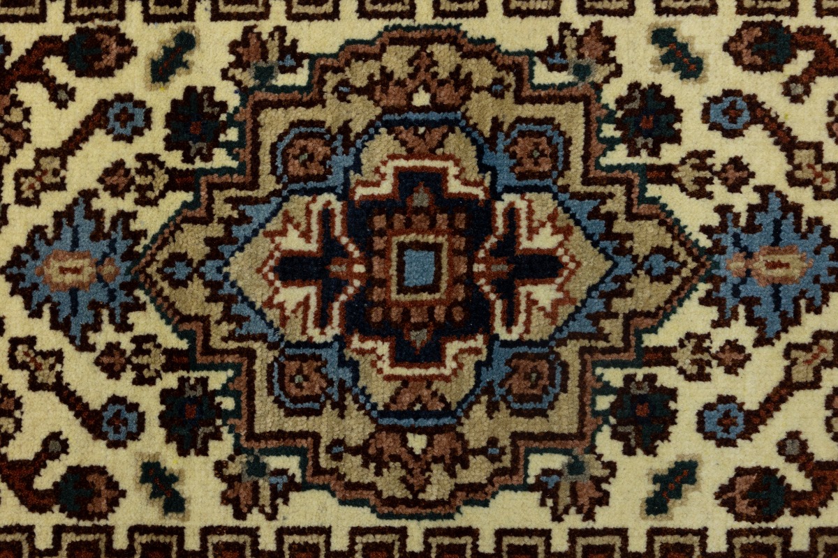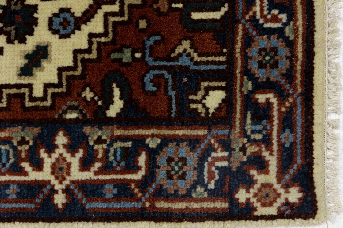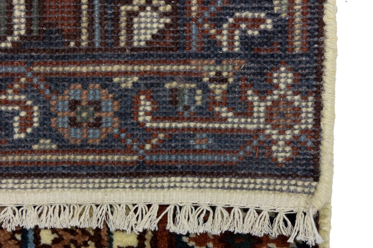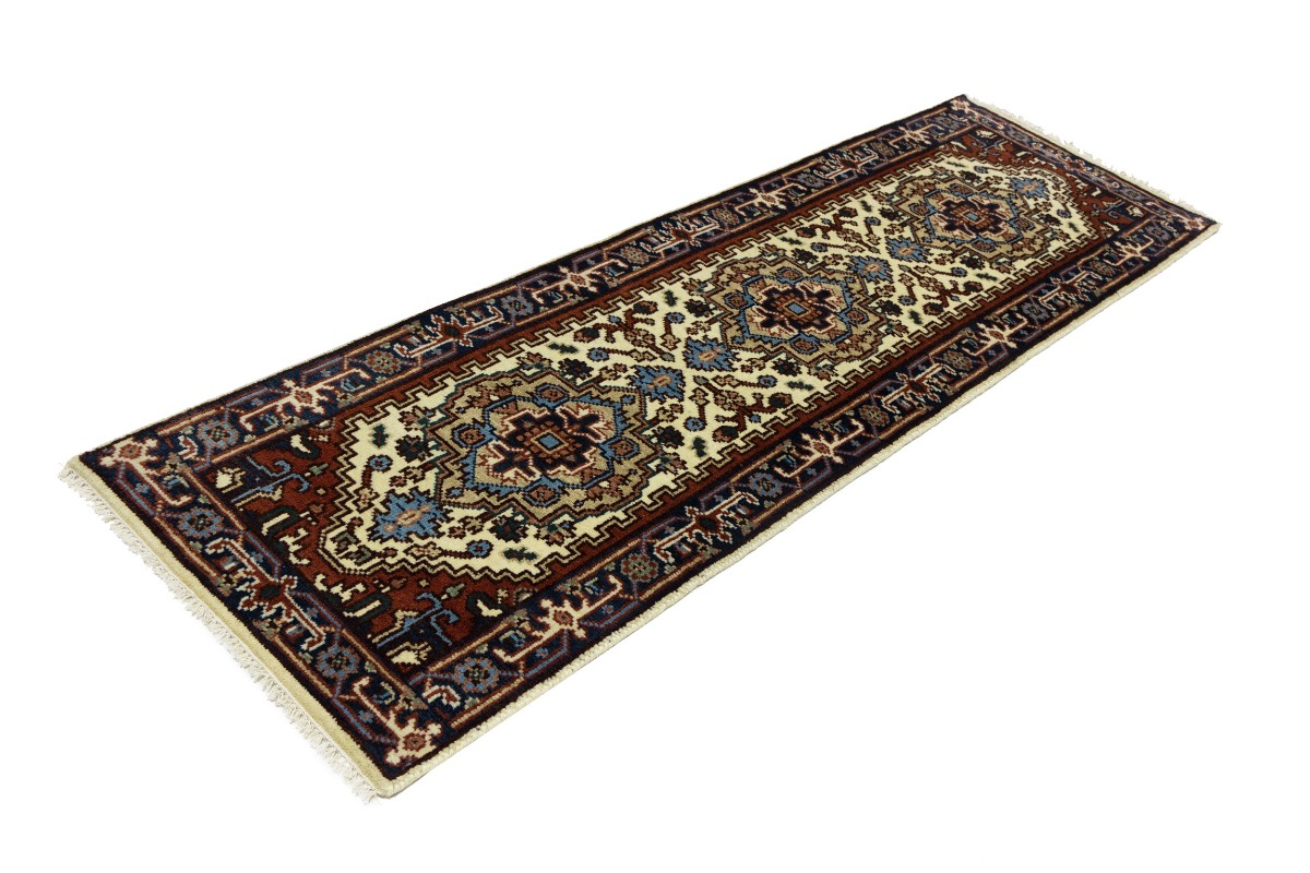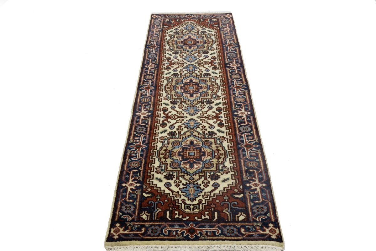 This original 3X8 cream new Oriental runner was finely knotted by the hands of weavers influenced by a variety of amazing artistic designs, to recreate the aged look of the exceptional piece with a richness of color and embellished background field. What set this vintage style Oriental area runner from the others are the material and dye used (wool pile and cotton foundation), knot count, antique designs, fantastic grades, and its regional historical connection: it has deep roots, from the story of the people who produced it to the meaning of the symbols and colors displayed across its canvas that have been praised for centuries. This Indian home décor carpet will be completely cozy and inviting that never will go out of style! Also, this Oriental rug would be among your most valuable treasures, it is a great investment that increase in value over time, and it will last a lifetime because was woven with high-quality, all-natural wool. Eco-friendly, opulent yet affordable; this runner will give you an extra pop of character to help define your home environment with luxury and warmth that will capture the eyes and attention of your audience (homeowners, designers, decorators, family and friends).