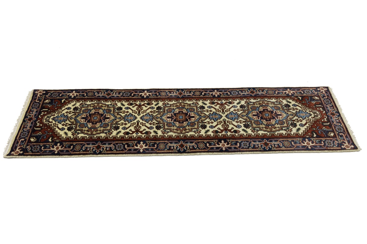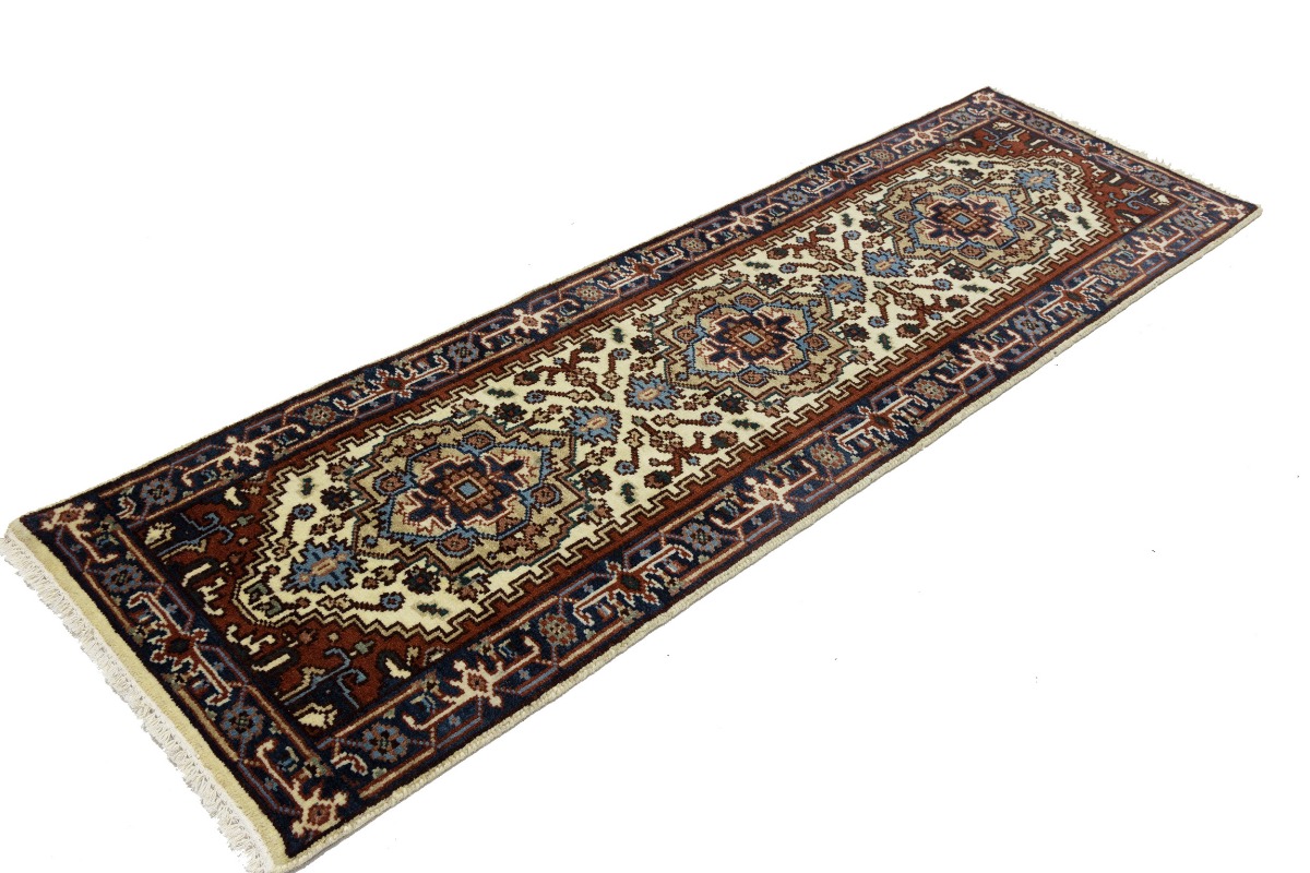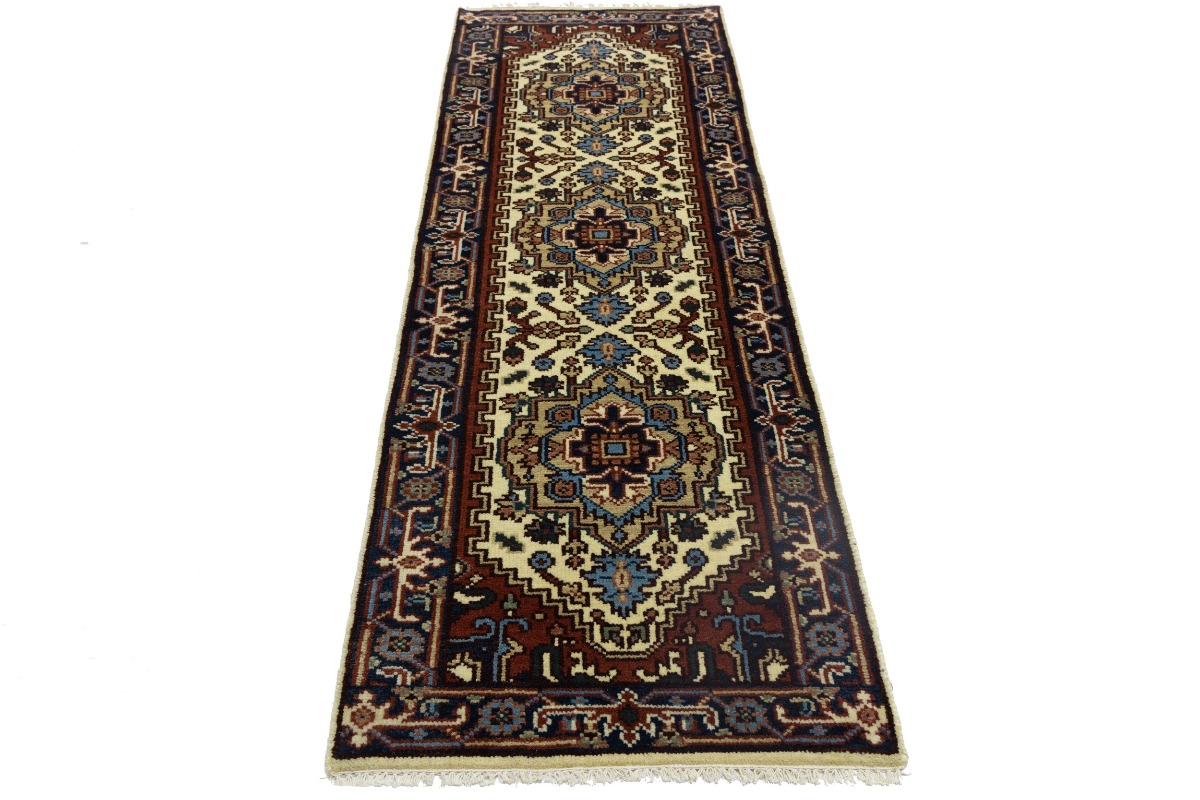 Cream Floral 3X8 Heriz Serapi Oriental Runner Rug