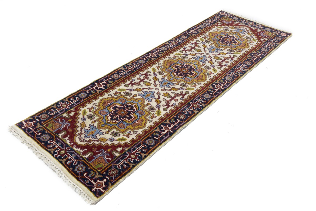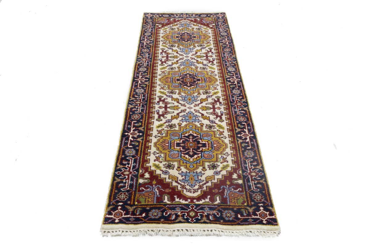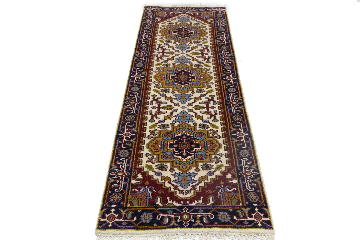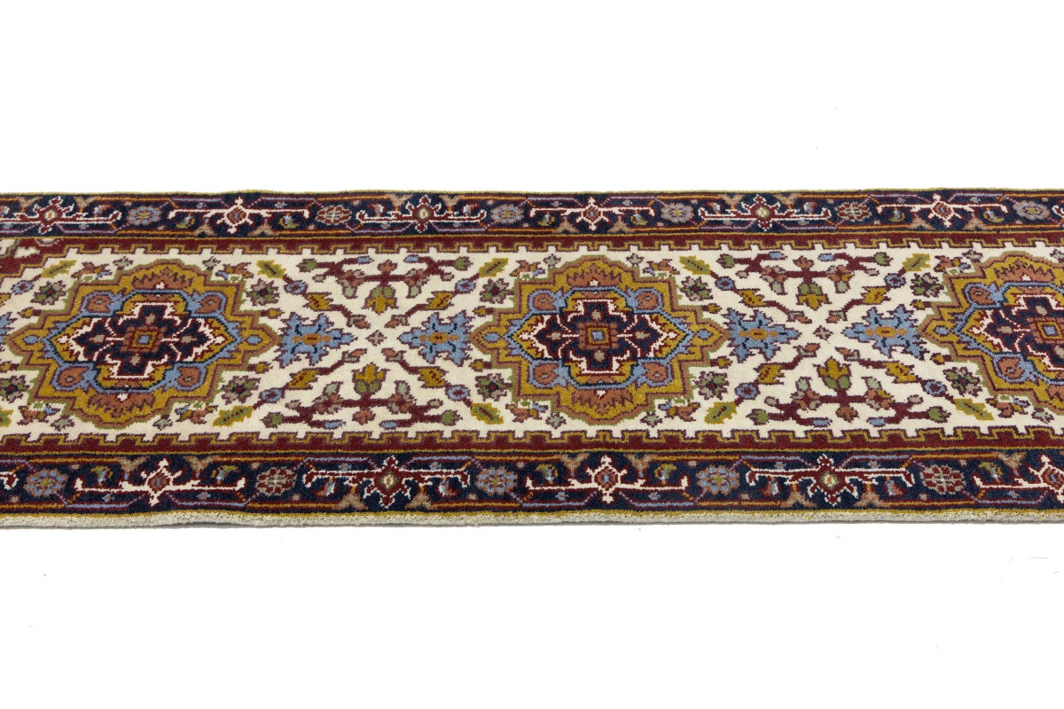 Handmade 3X8 cream oriental runner made with vegetable dyes (fine wool pile and cotton foundation), superior knot count, and appealing ancient designs. This Oriental runner never will go out of style and would be among your most valuable treasures.