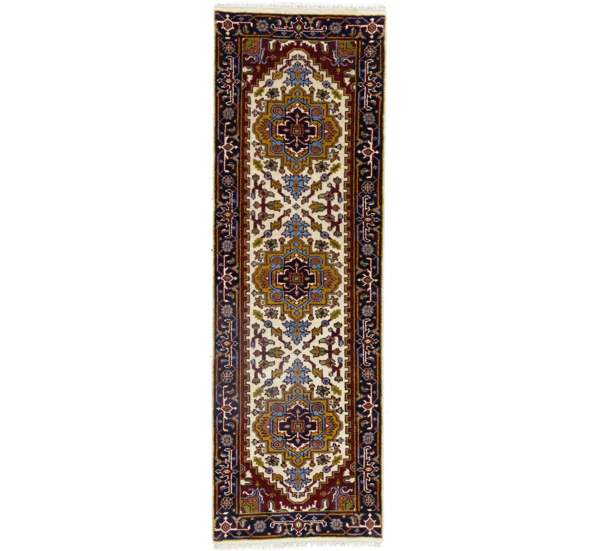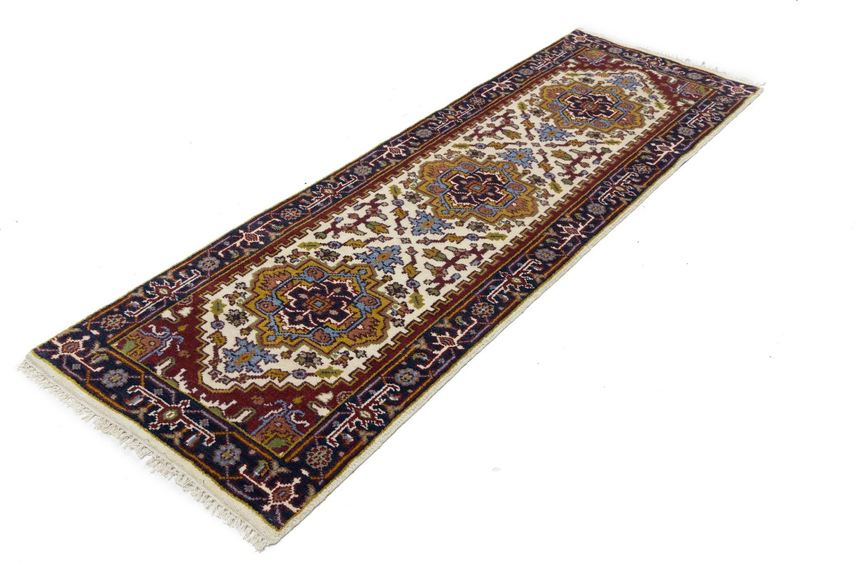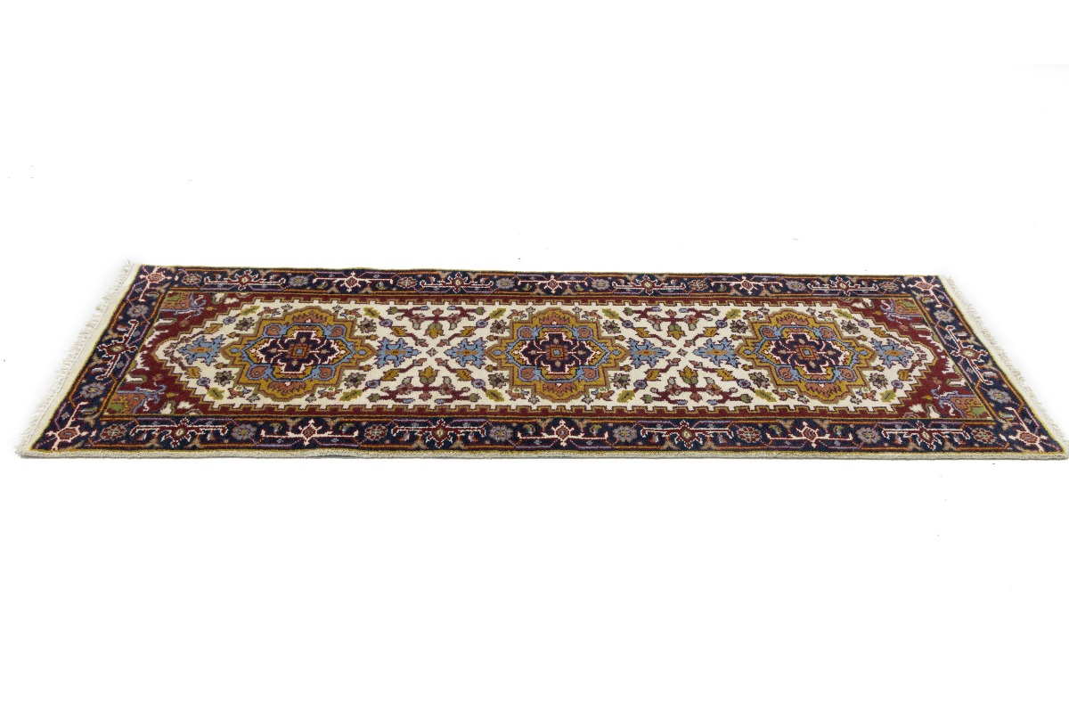 Handmade 3X8 cream oriental runner made with vegetable dyes (fine wool pile and cotton foundation), superior knot count, and appealing ancient designs. This Oriental runner never will go out of style and would be among your most valuable treasures.