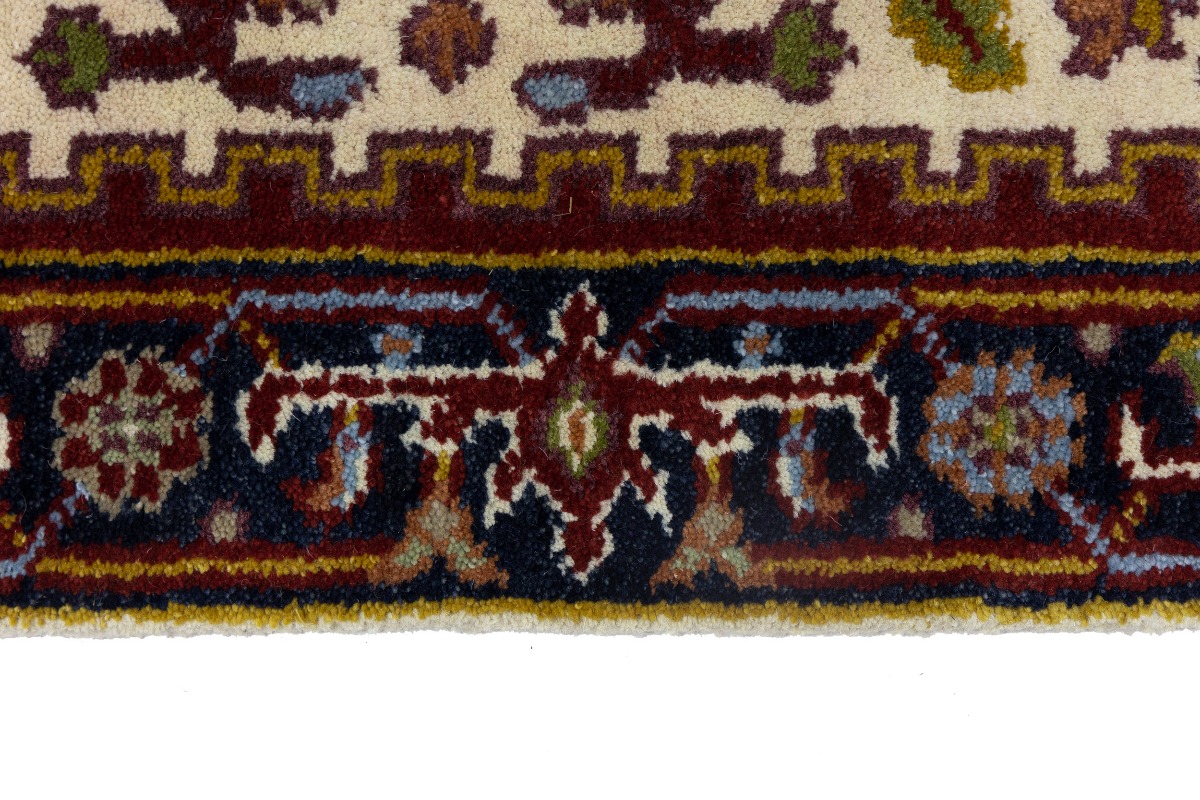 This genuine 3X8 cream new Oriental runner was made by the hands of gifted weavers inspired by a variety of spectacular artistic designs, to recreate the aged look of the original piece with a richness of color and ornately patterned background field. What set this vintage style Oriental area runner from the others are the material and dye used (wool pile and cotton foundation), knot count, ancient designs, fantastic grades, and its regional historical connection: it has deep roots, from the story of the people who produced it to the meaning of the symbols and colors displayed across its canvas that have been praised for centuries. This Indian home décor carpet will be completely cozy and inviting that never will go out of style! Also, this Oriental rug would be among your most valuable treasures, it is a great investment that accrues value over time, and it will last for generations because was woven with high-quality, all-natural wool. Environmentally friendly, opulent yet affordable; this runner will give you a thorough amount of character to help define your living space with elegance and warmth that will capture the eyes and attention of your audience (homeowners, designers, decorators, family and friends). OT-7659