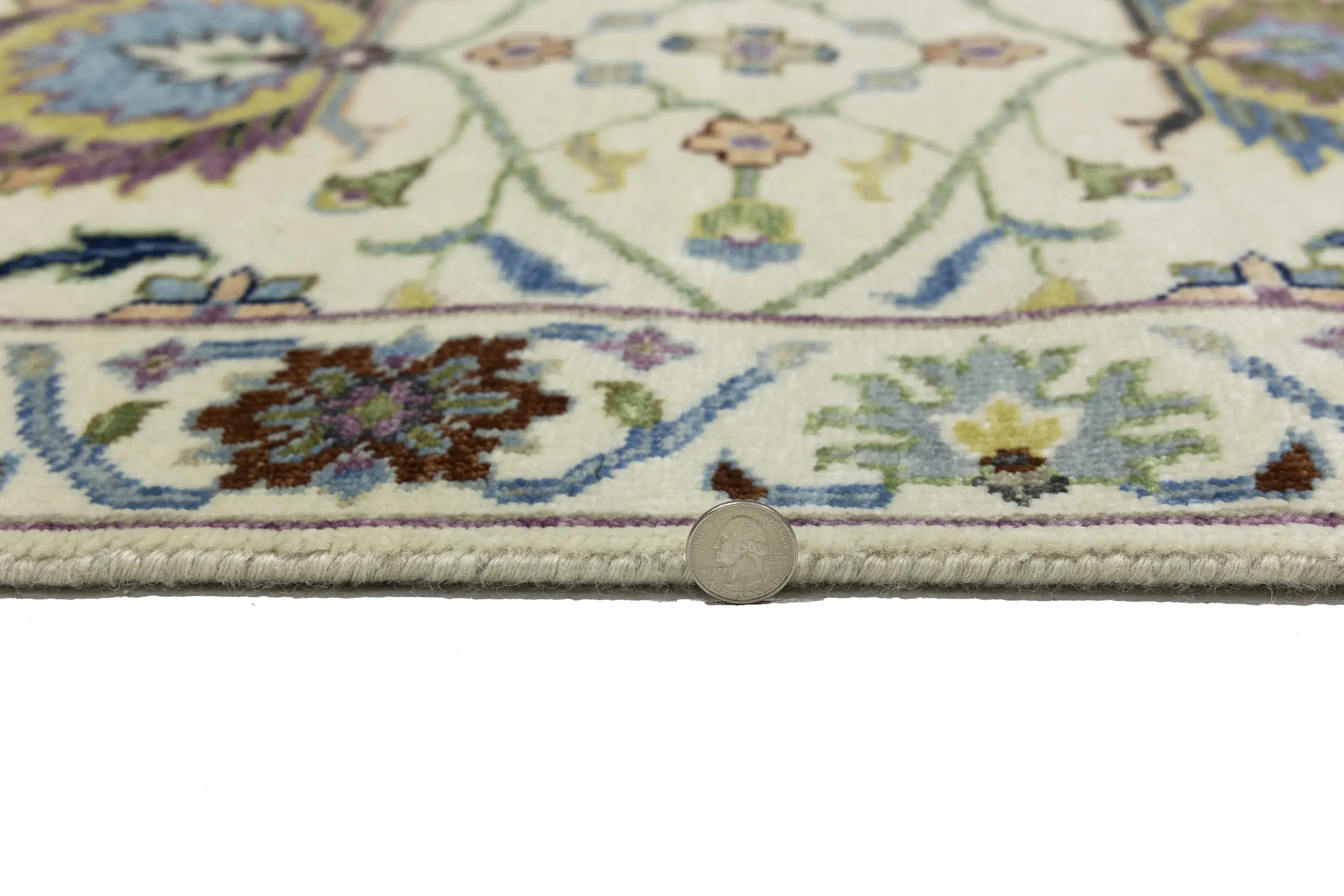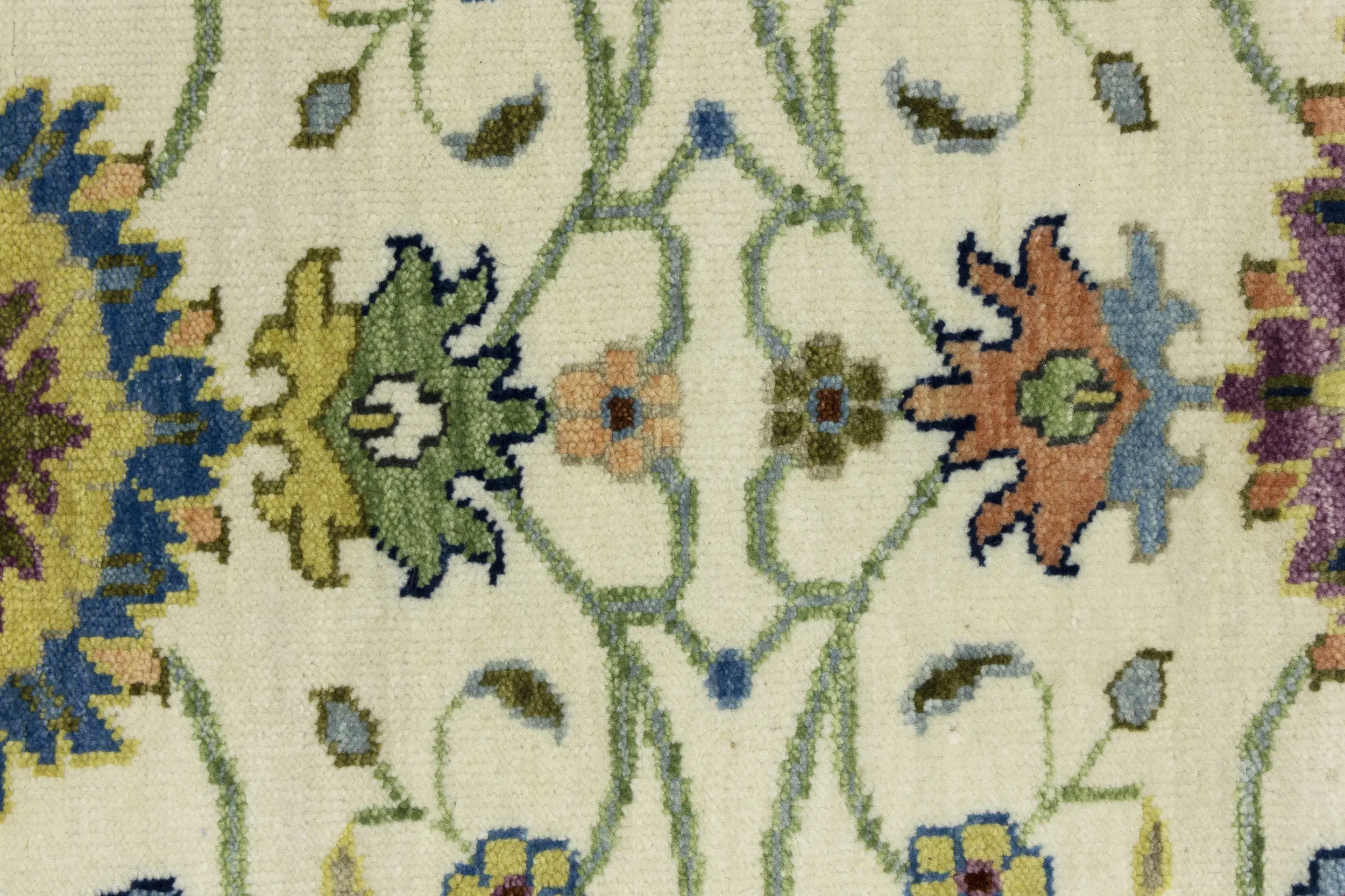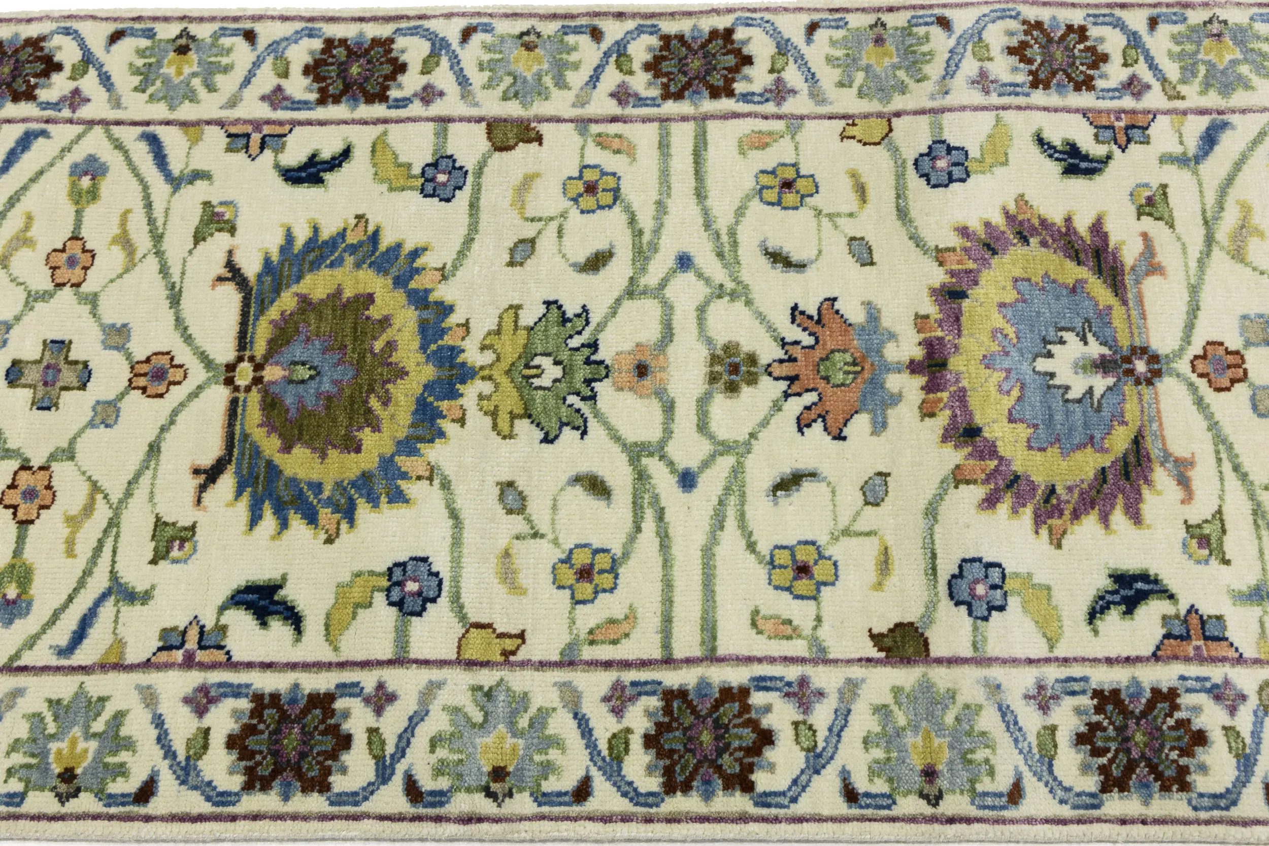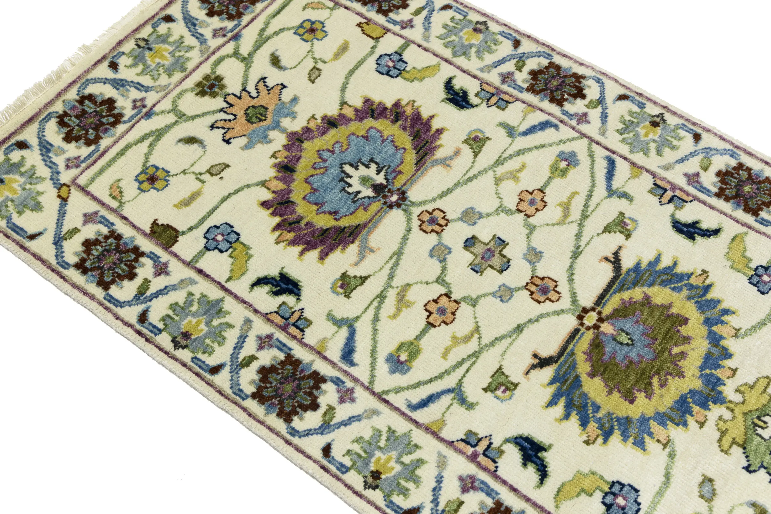 This genuine 3X8 cream new Oriental runner was made by the hands of gifted weavers inspired by a variety of spectacular artistic designs, to recreate the aged look of the original piece with a richness of color and ornately patterned background field. What set this vintage style Oriental area runner from the others are the material and dye used (wool pile and cotton foundation), knot count, ancient designs, fantastic grades, and its regional historical connection: it has deep roots, from the story of the people who produced it to the meaning of the symbols and colors displayed across its canvas that have been praised for centuries. This Indian home décor carpet will be completely cozy and inviting that never will go out of style! Also, this Oriental runner would be among your most valuable treasures, it is a great investment that accrues value over time, and it will last for generations because was woven with high-quality, all-natural wool. Environmentally friendly, opulent yet affordable; this rug will give you a thorough amount of character to help define your living space with elegance and warmth that will capture the eyes and attention of your audience (homeowners, designers, decorators, family and friends).