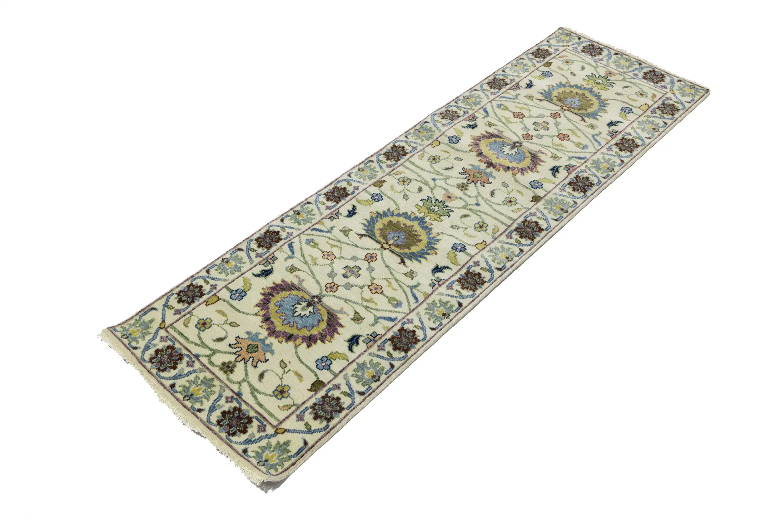 Handmade 3X8 cream oriental runner made with vegetable dyes (fine wool pile and cotton foundation), superior knot count, and appealing ancient designs. This Oriental runner never will go out of style and would be among your most valuable treasures.