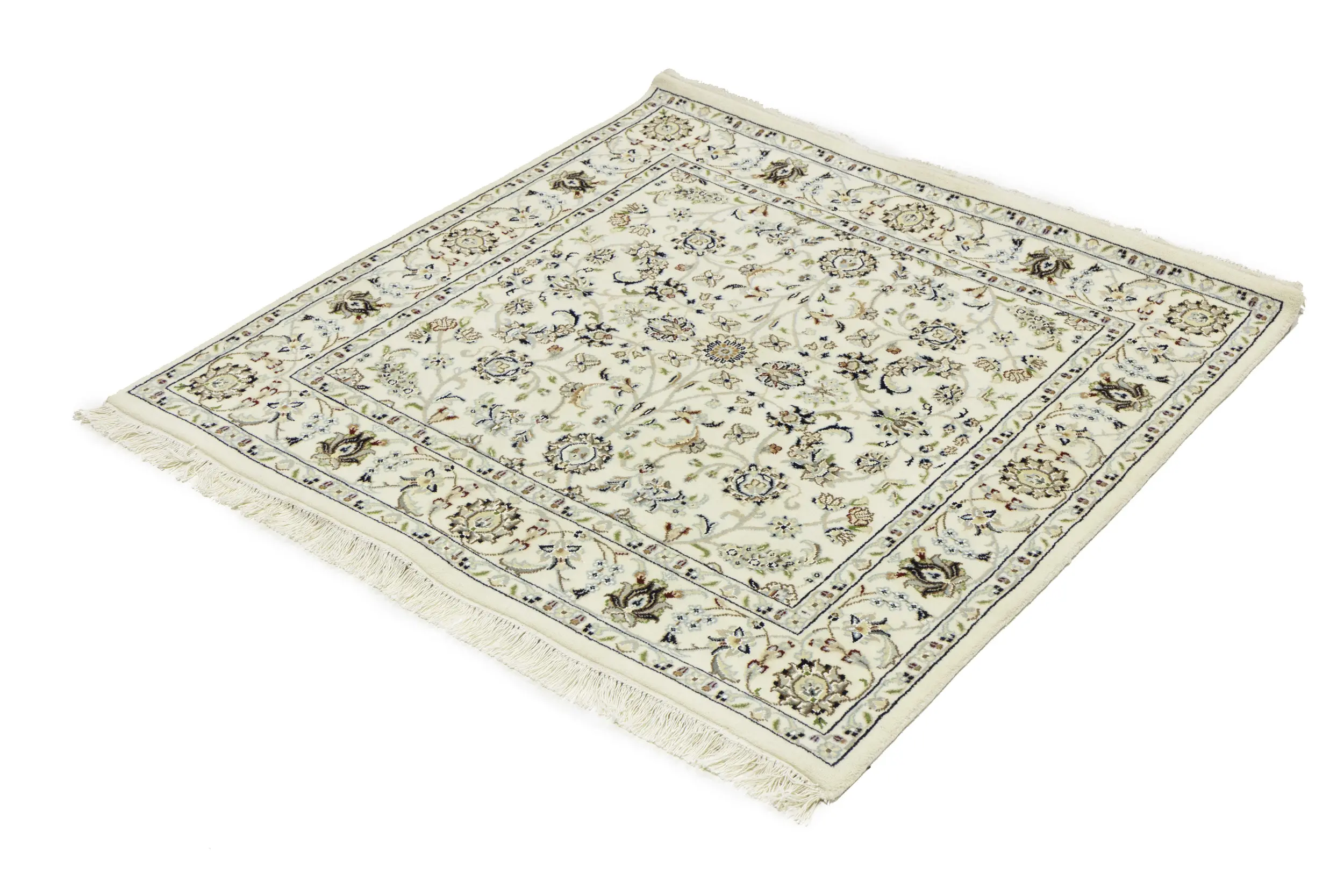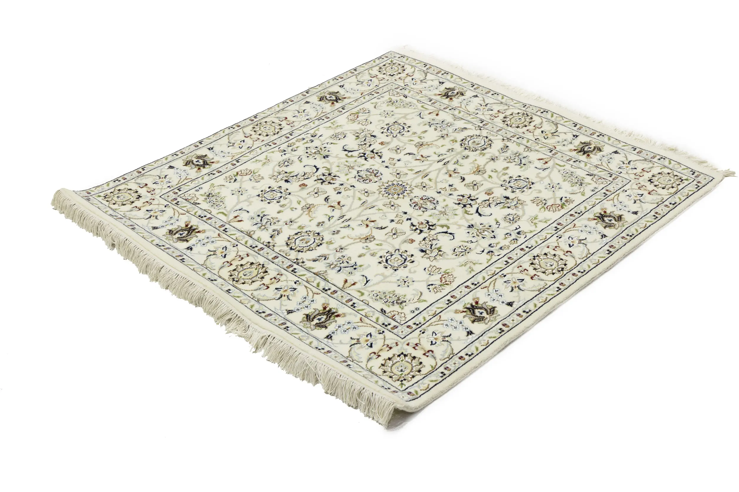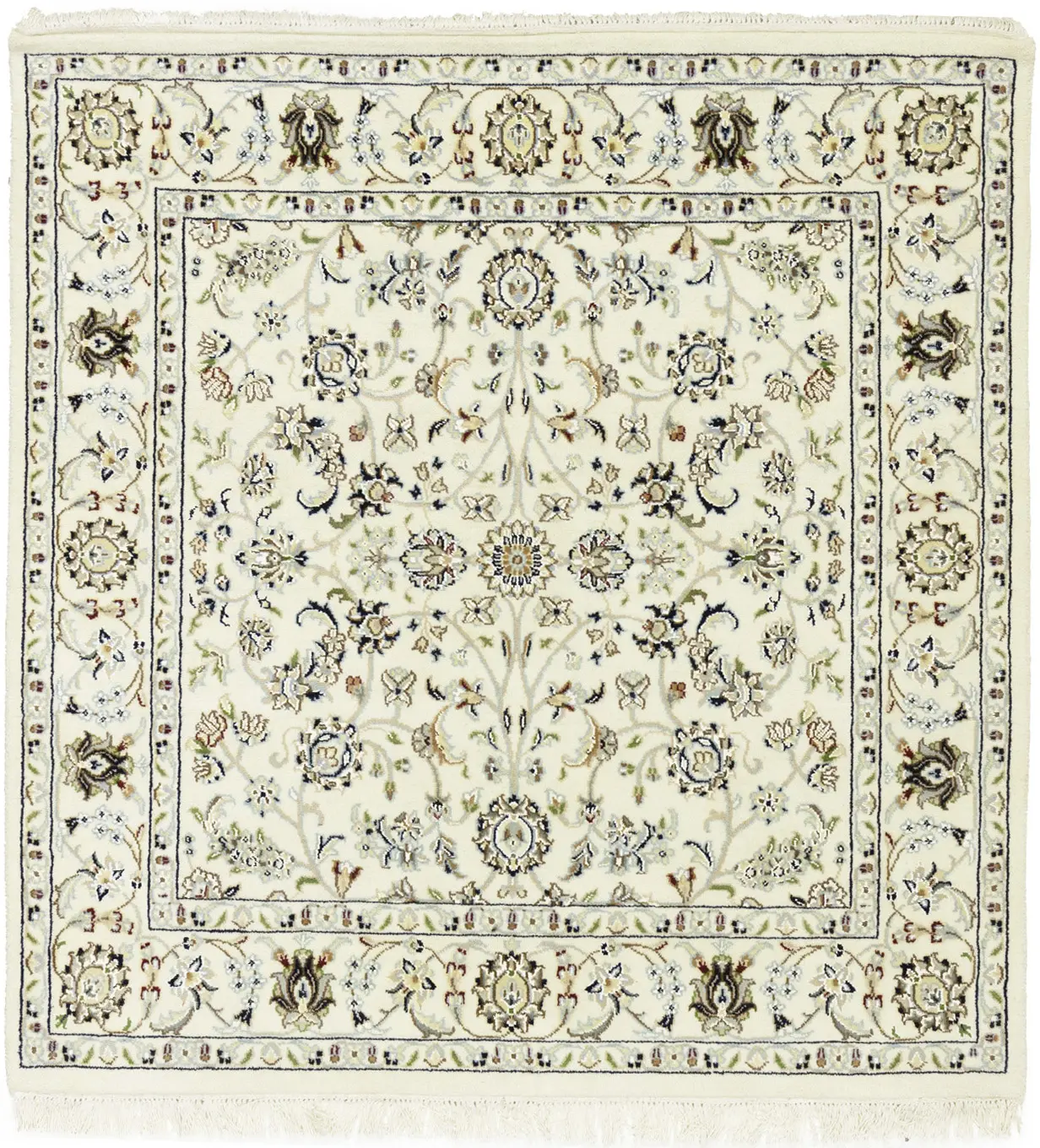 Cream Floral 4X4 Indo-Nain Oriental Square Rug