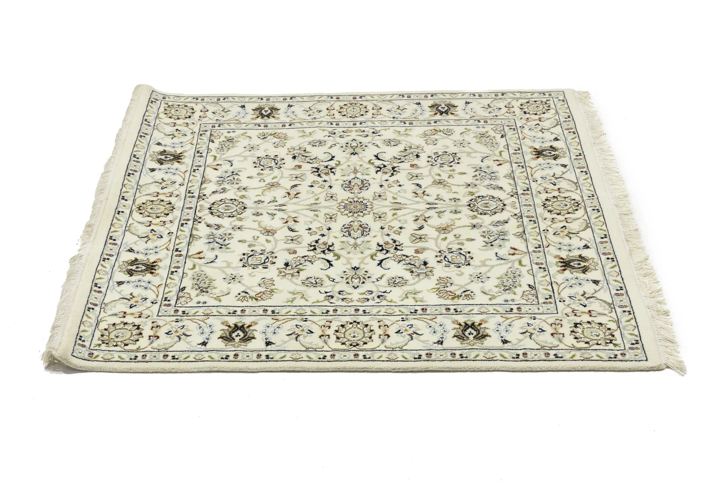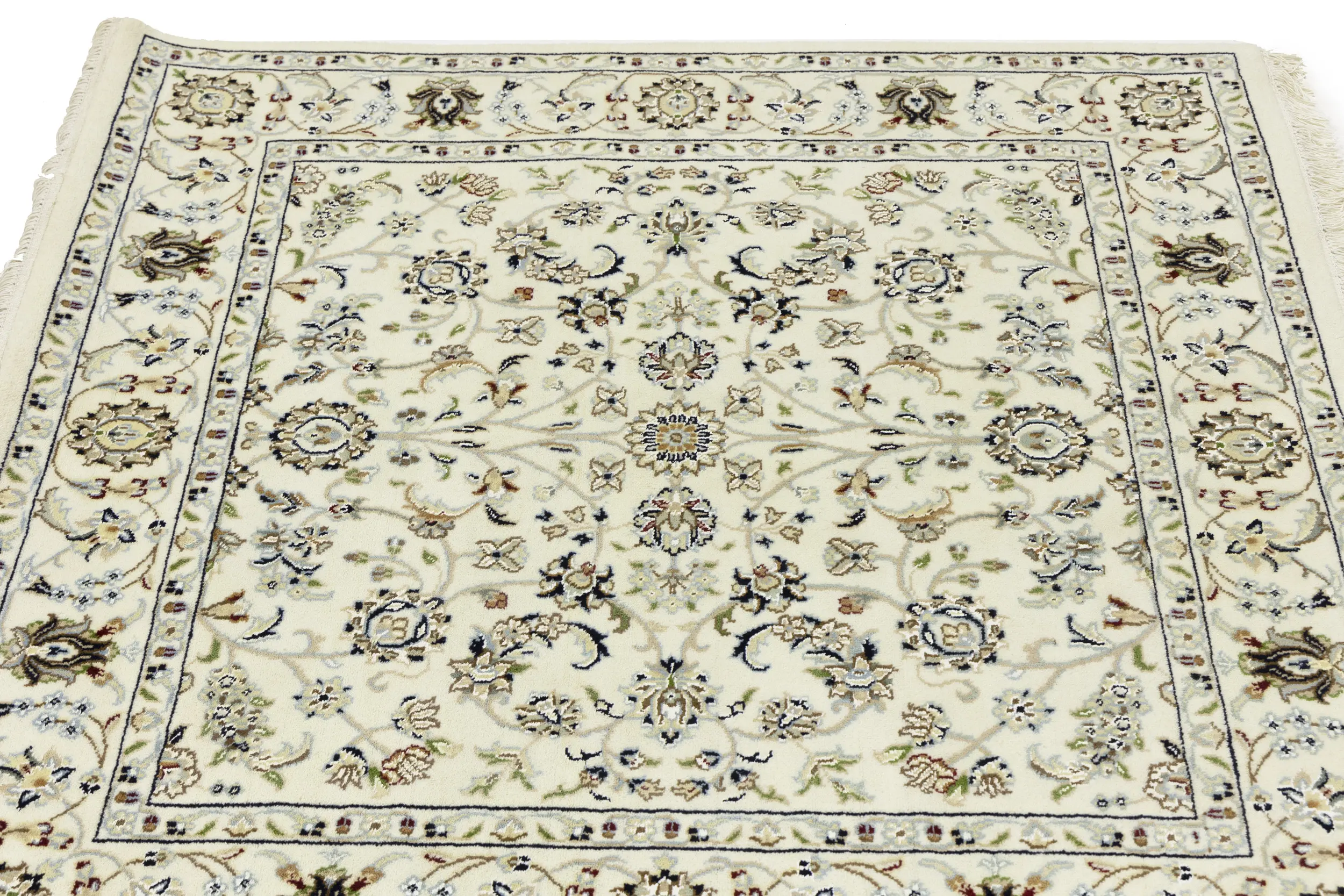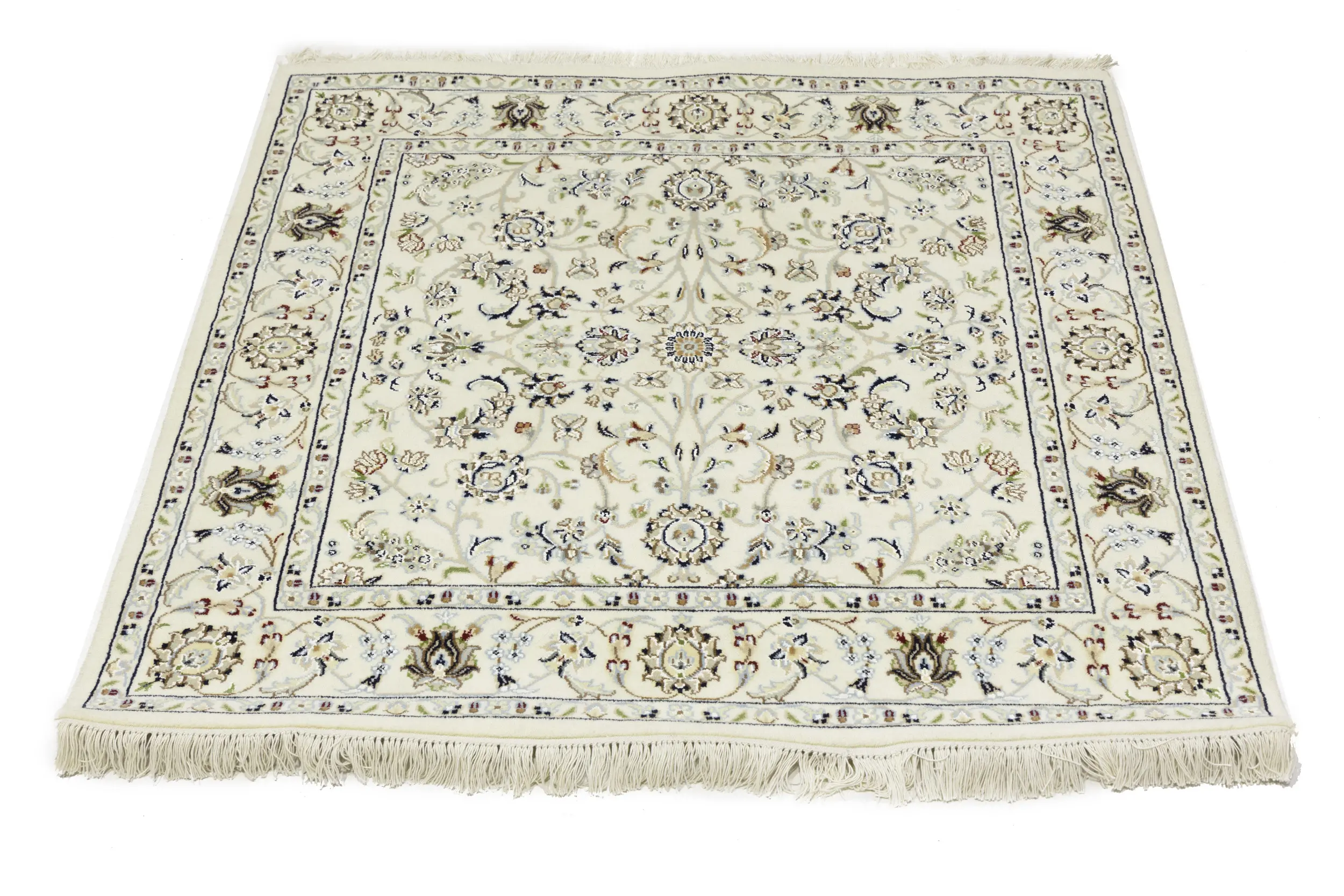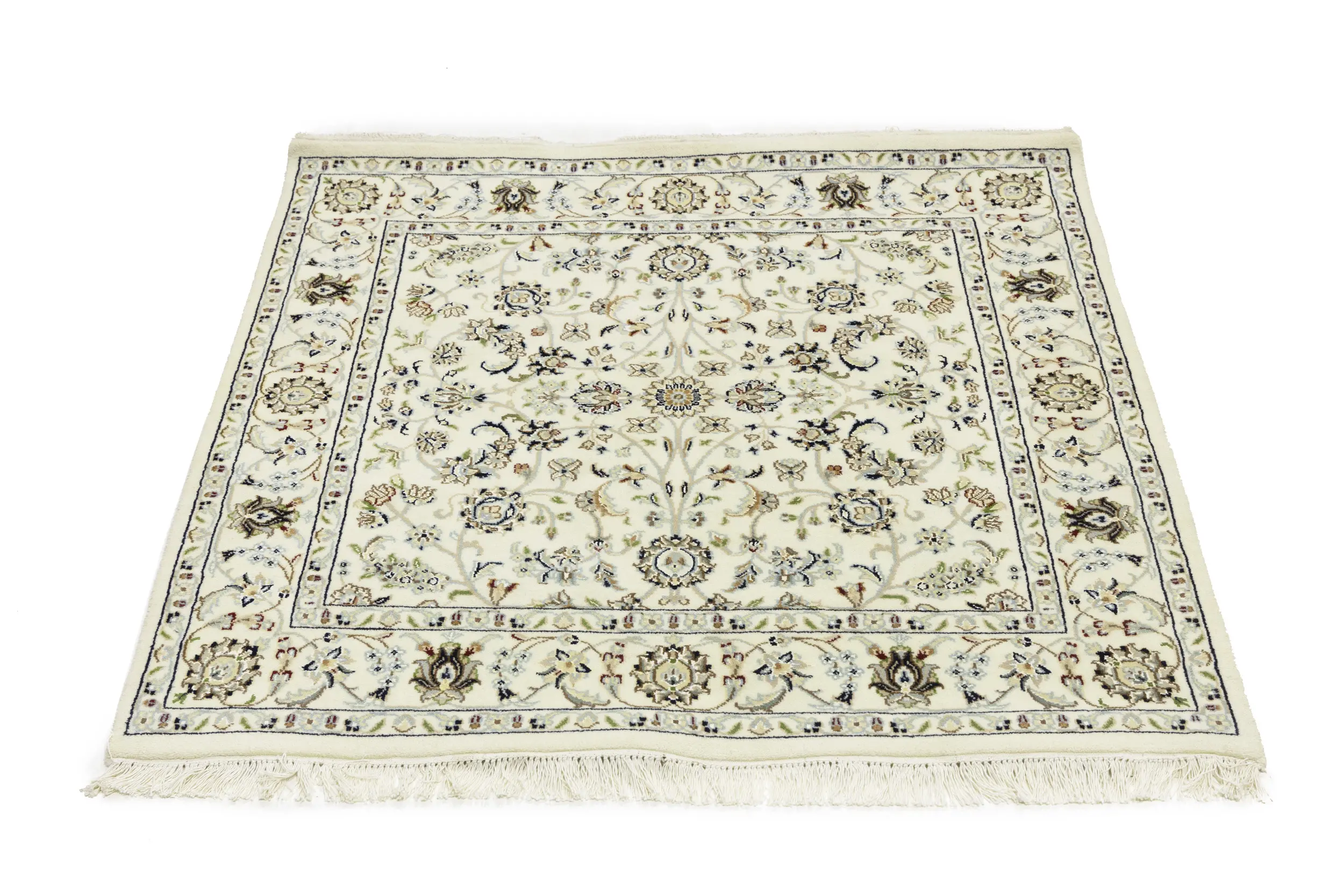 Cream Floral 4X4 Indo-Nain Oriental Square Rug