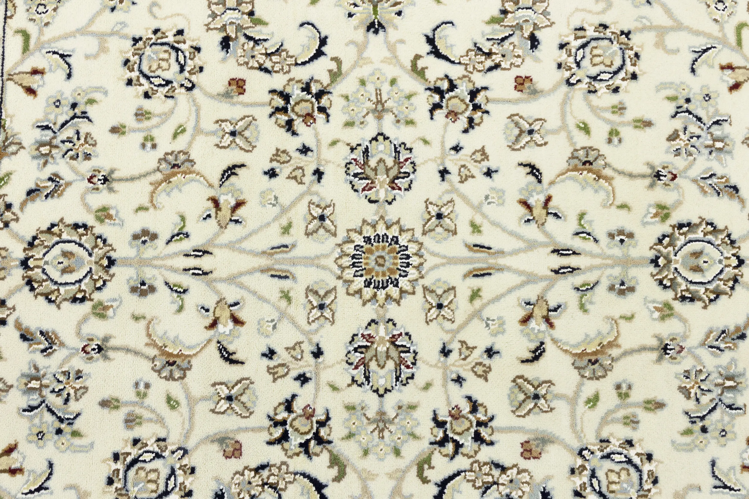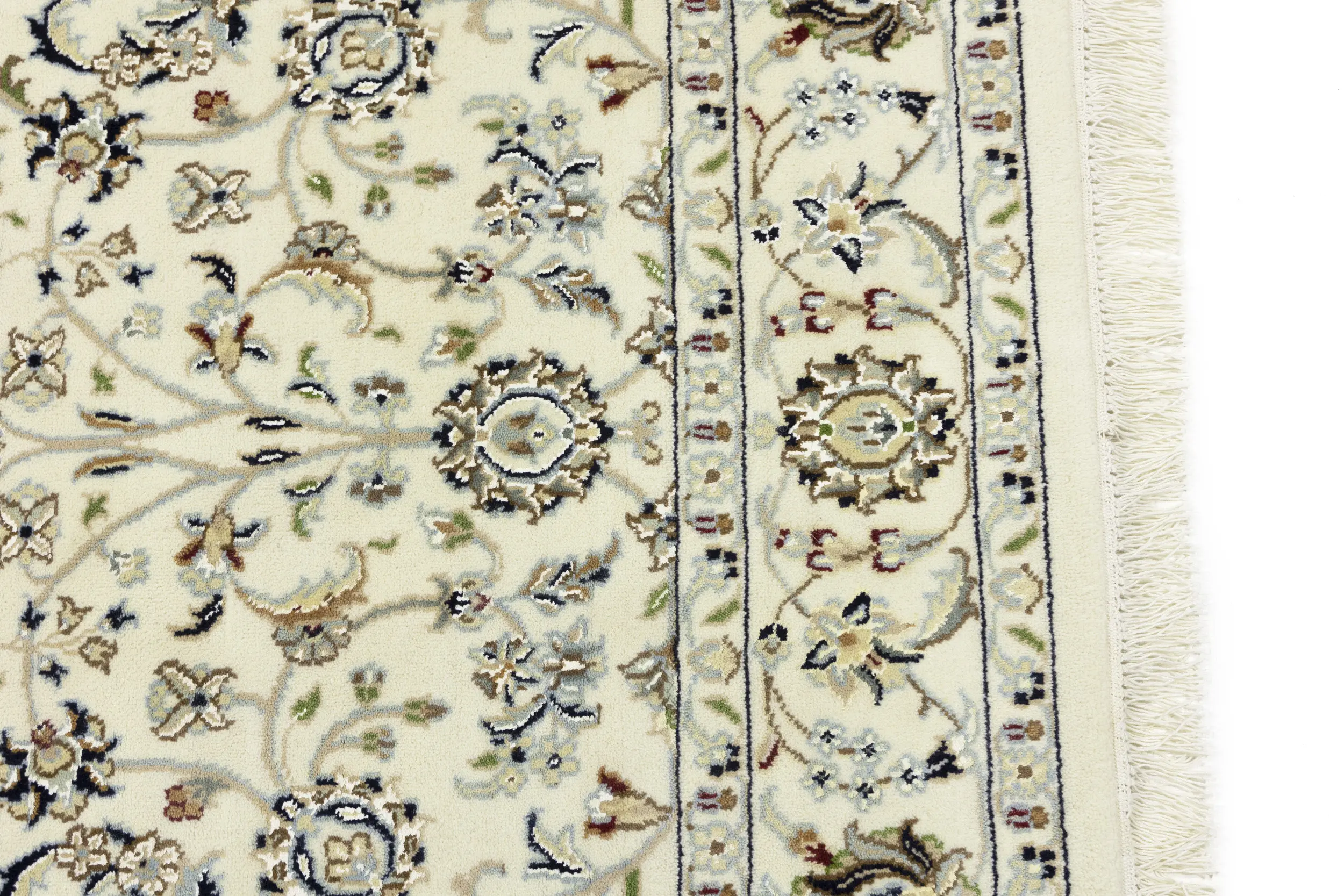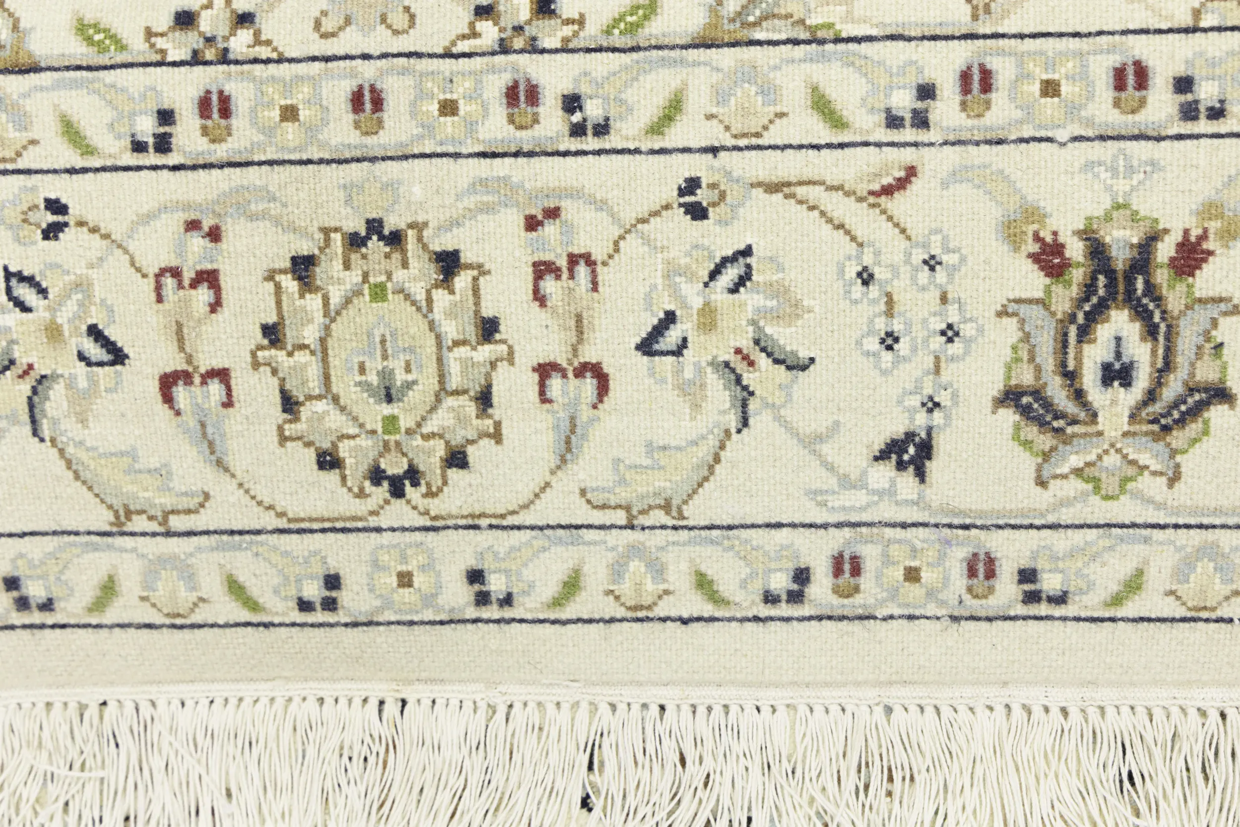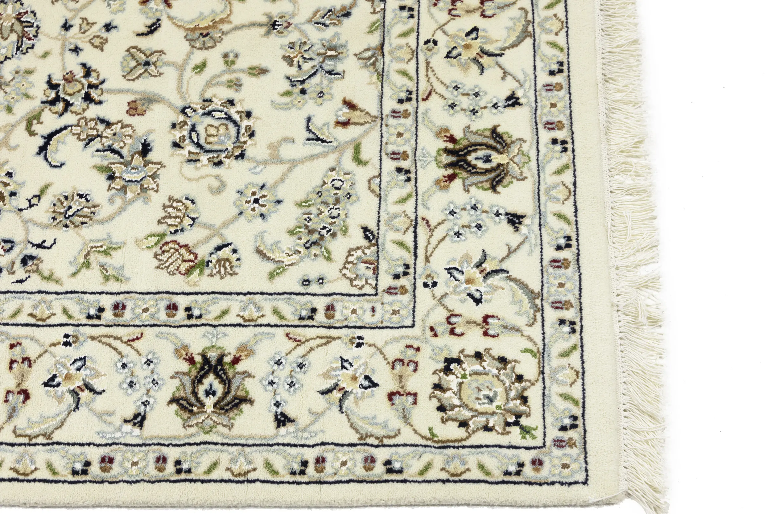 Handmade 4X4 cream Oriental rug made with vegetable dyes (fine wool pile and cotton foundation), exceptional knot count, and appealing ancient designs. This Oriental rug never will go out of style and would be among your most valuable treasures.