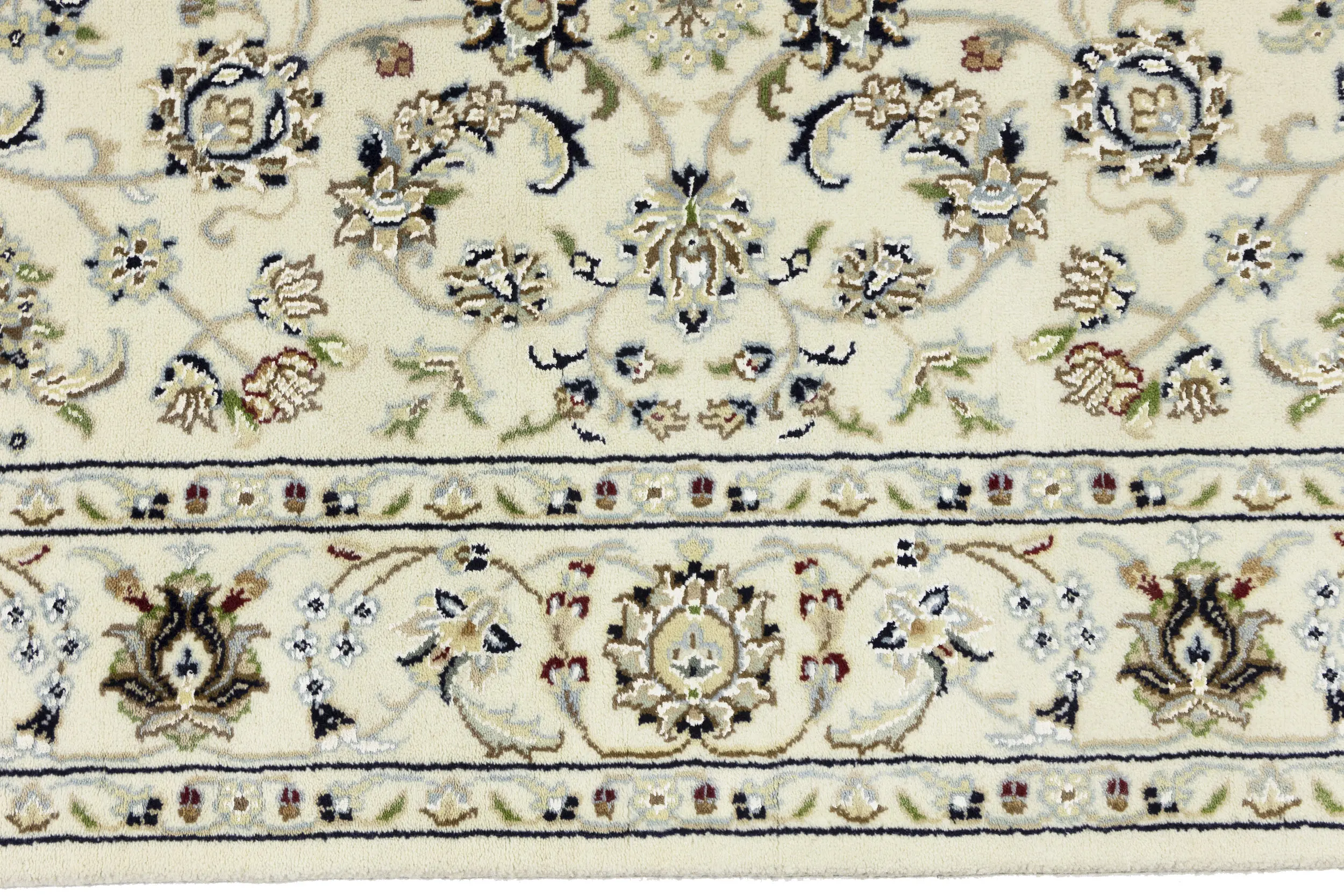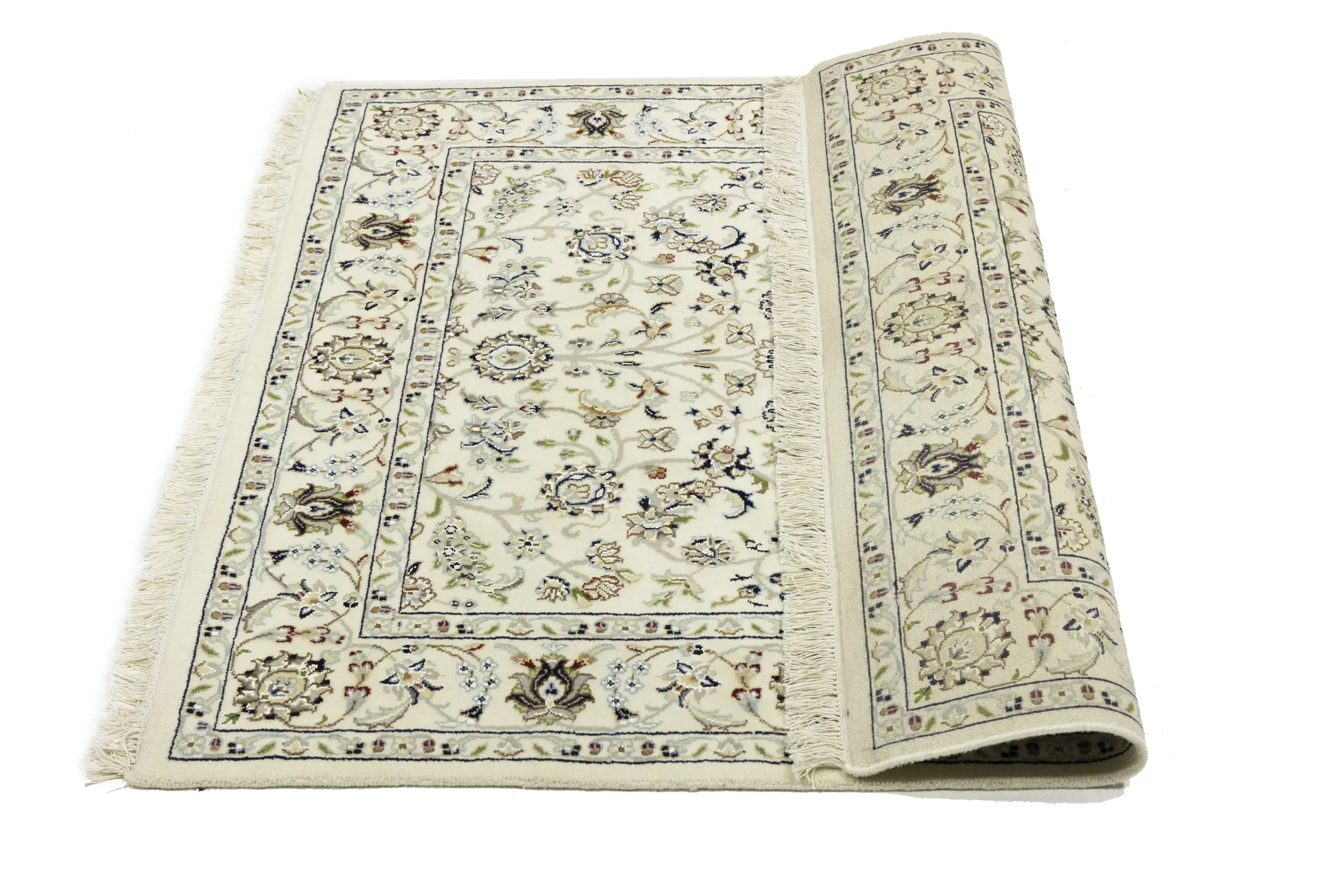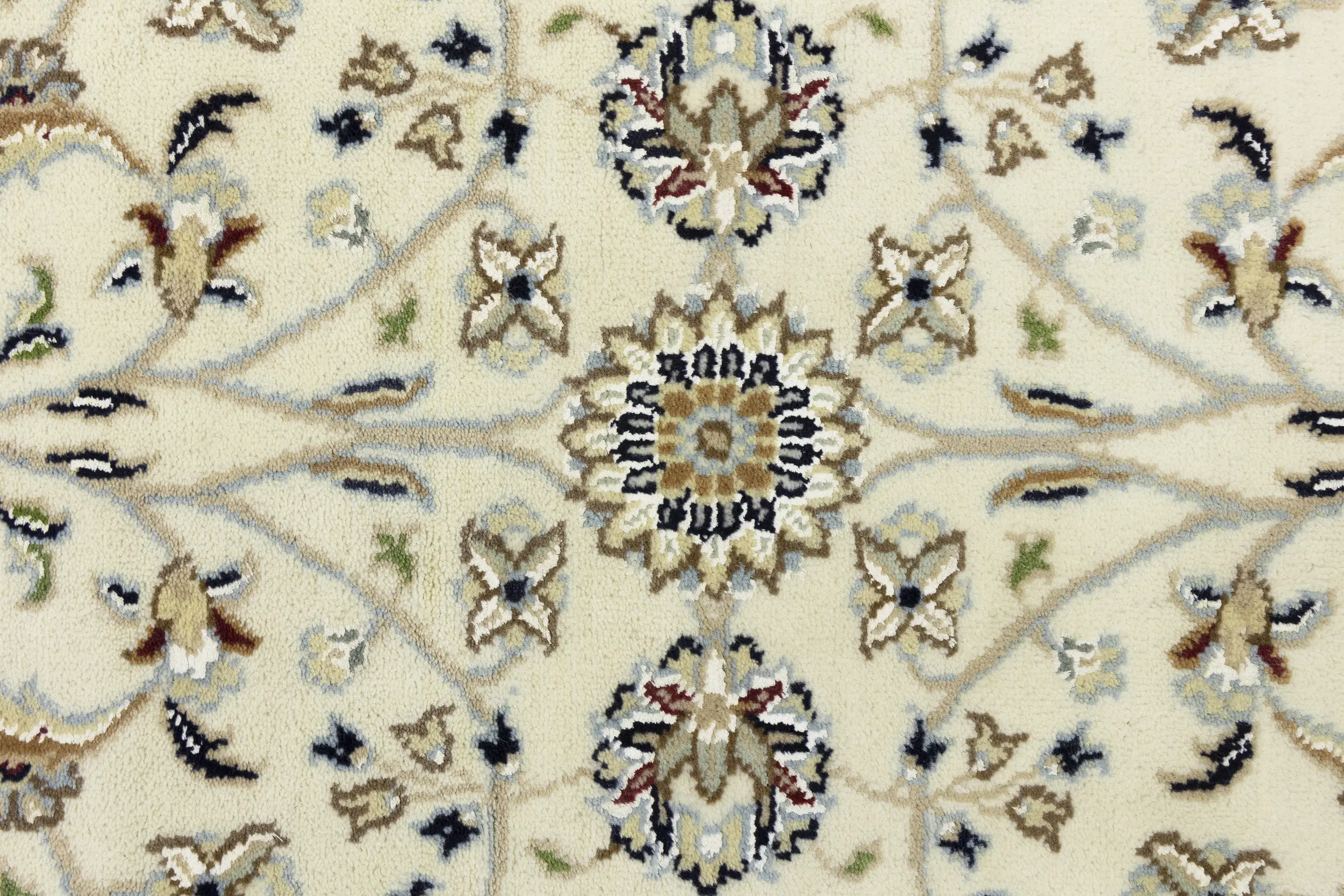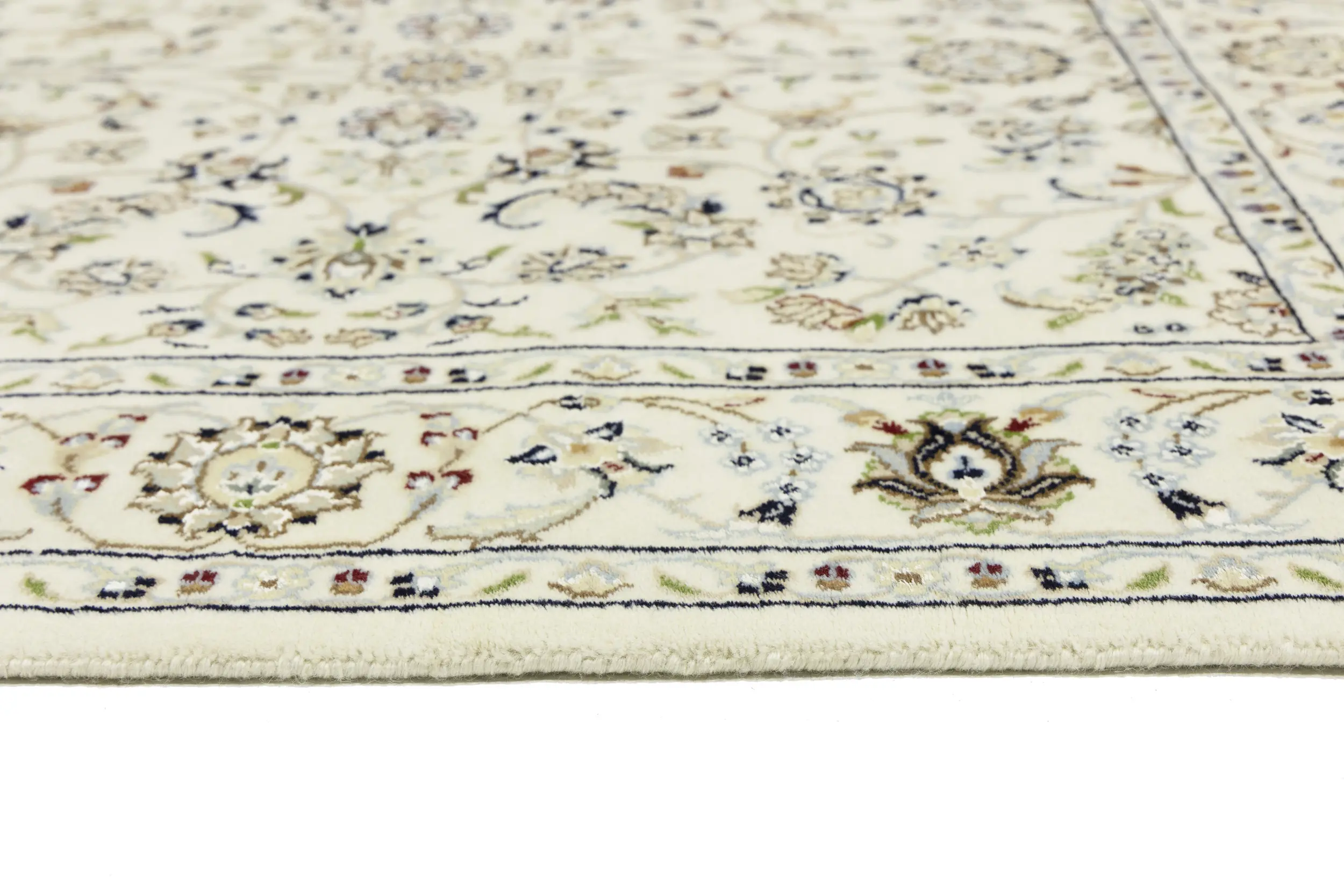 Handmade 4X4 cream Oriental rug made with vegetable dyes (fine wool pile and cotton foundation), exceptional knot count, and appealing ancient designs. This Oriental rug never will go out of style and would be among your most valuable treasures.