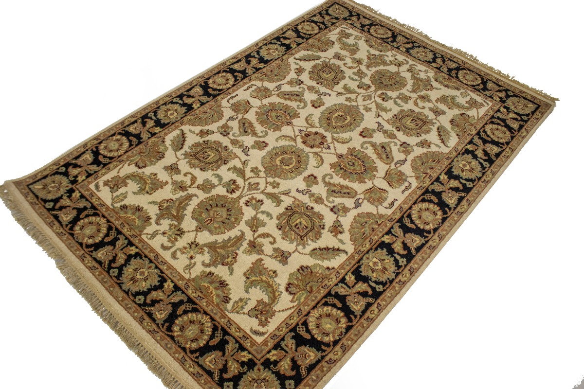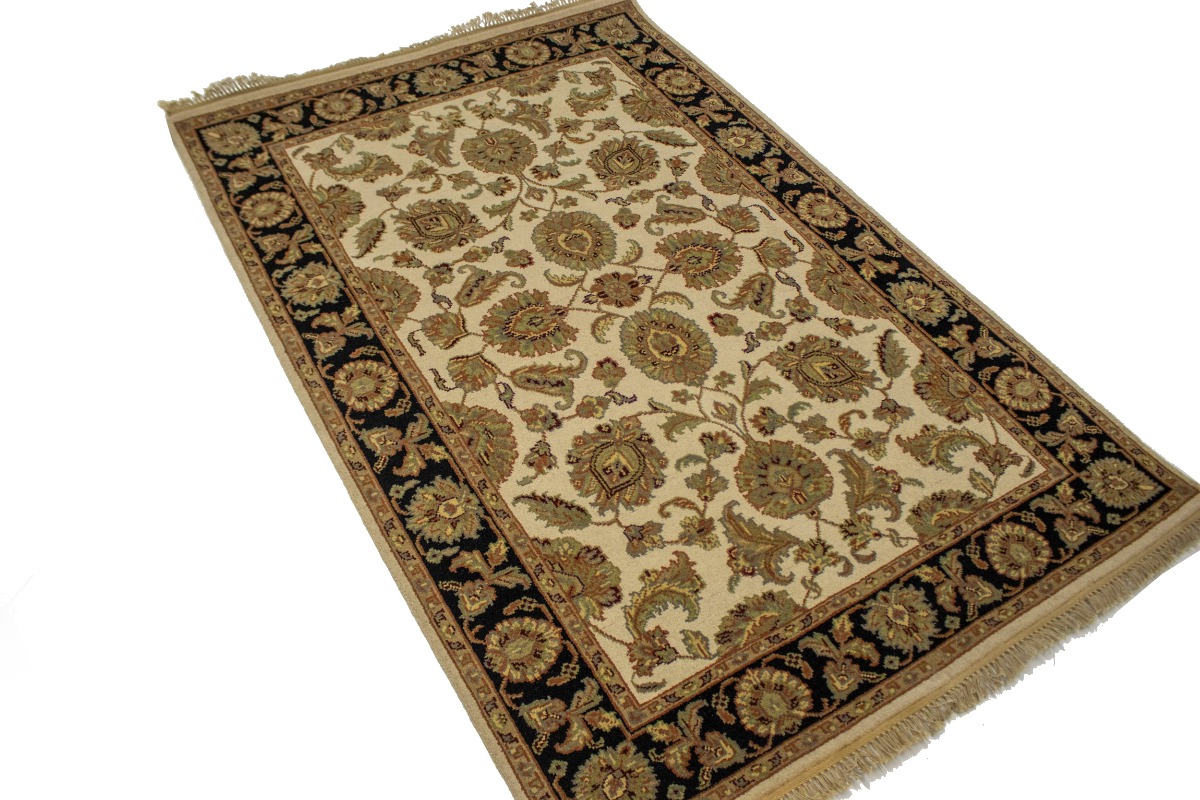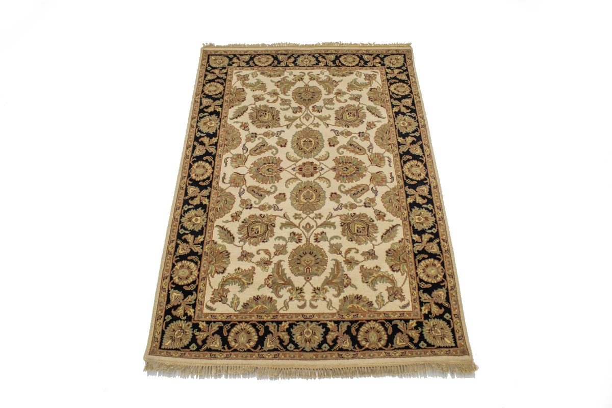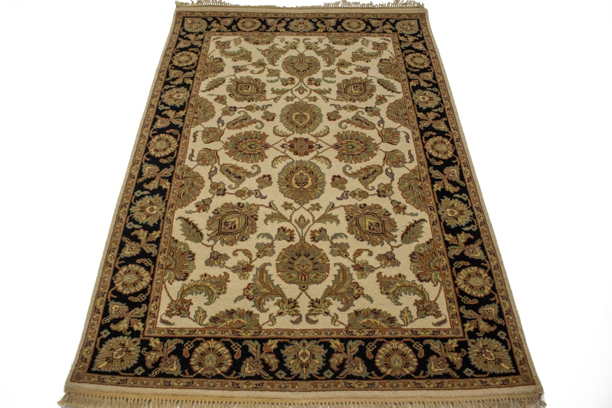 Handmade 4X6 cream oriental rug made with vegetable dyes (fine wool pile and cotton foundation), superior knot count, and alluring ancient designs. This Oriental rug never will go out of style and would be among your most valuable treasures.