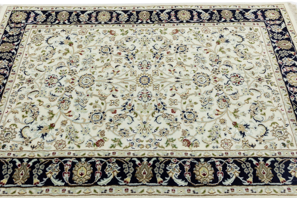 Cream Floral 4X6 Indo-Nain Oriental Rug