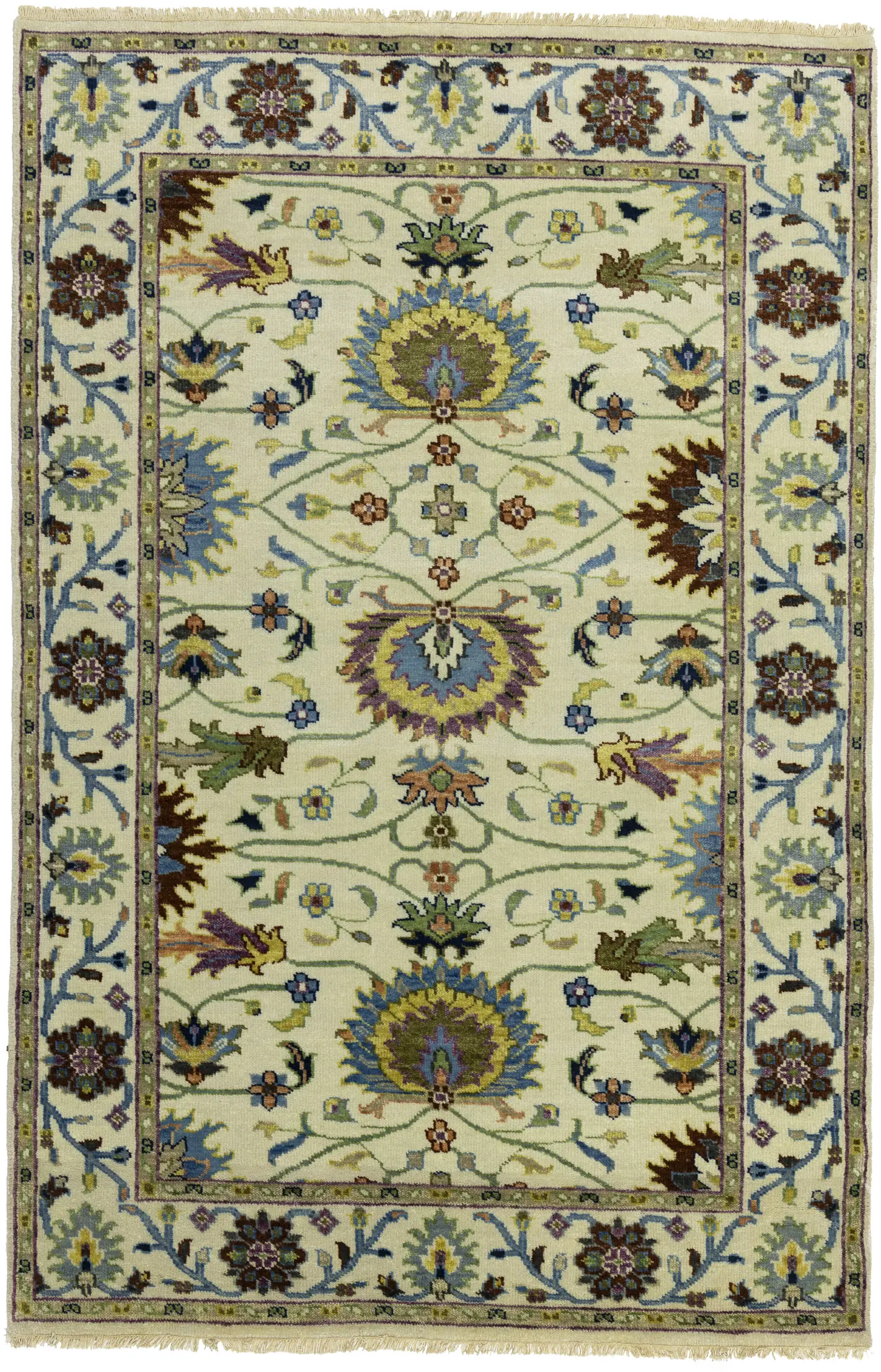 Cream Floral 4x6 Osh Chobi Oriental Area Rug