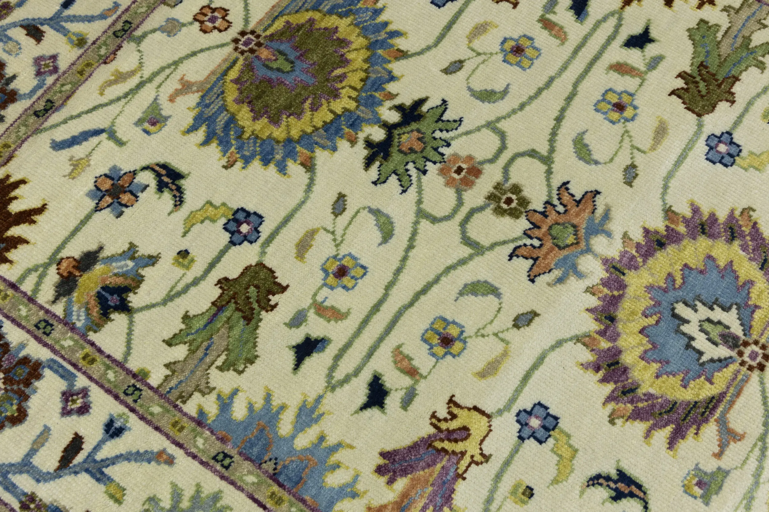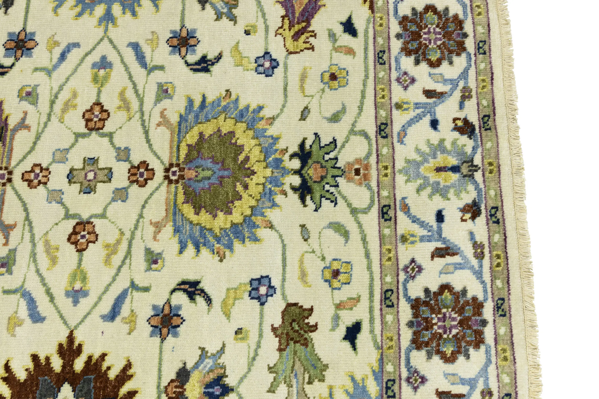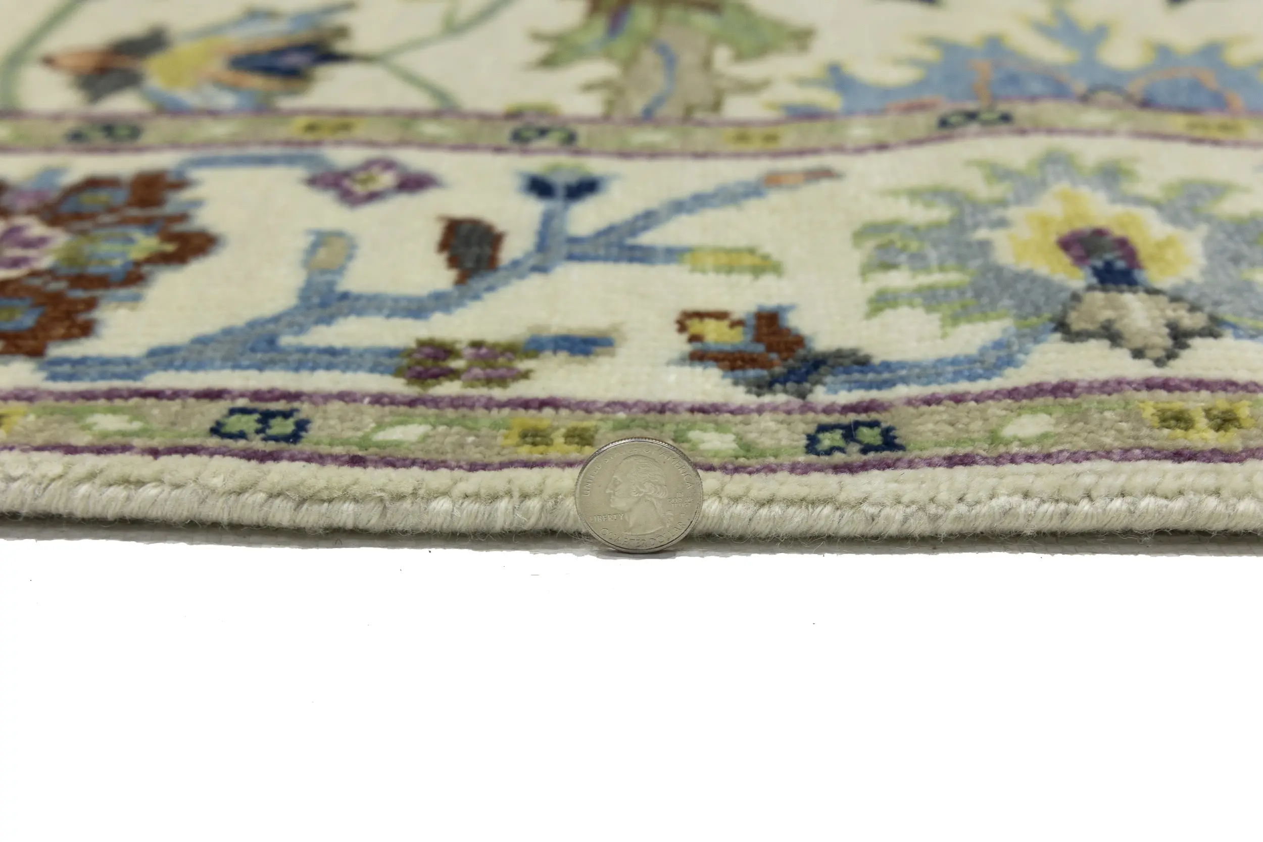 - Hand-knotted in India with skilled traditional weaving
