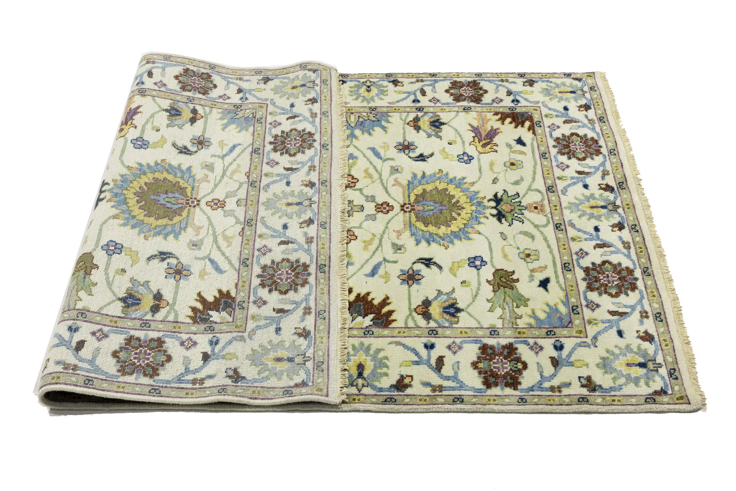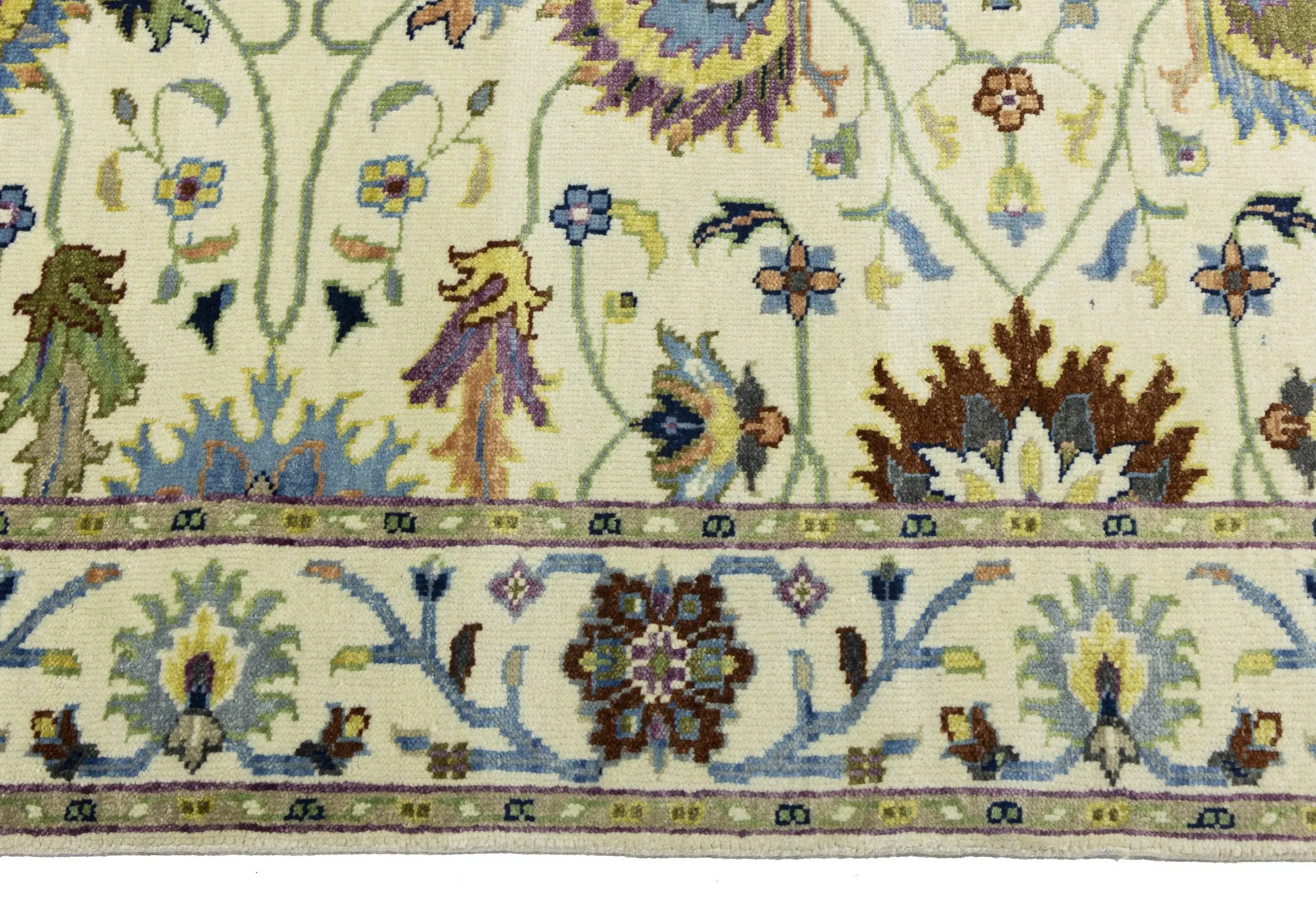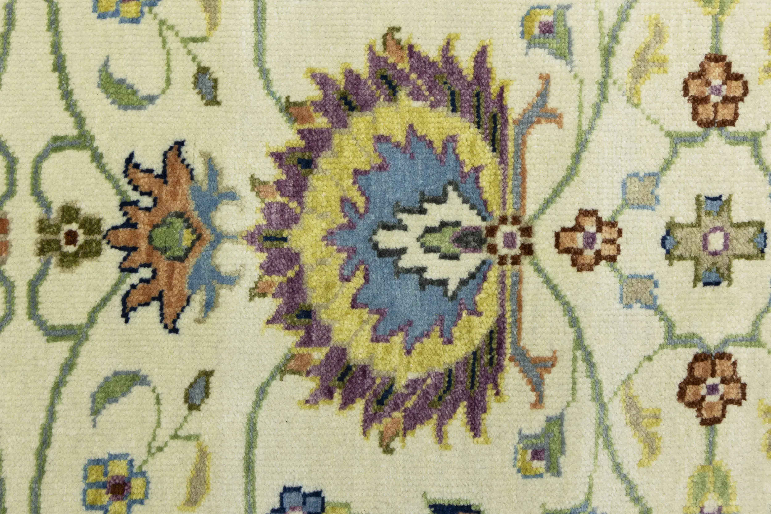 - Hand-knotted in India with skilled traditional weaving
