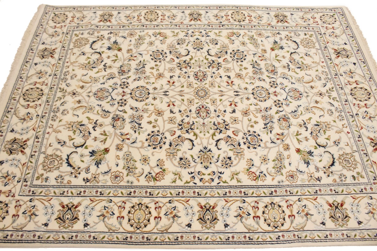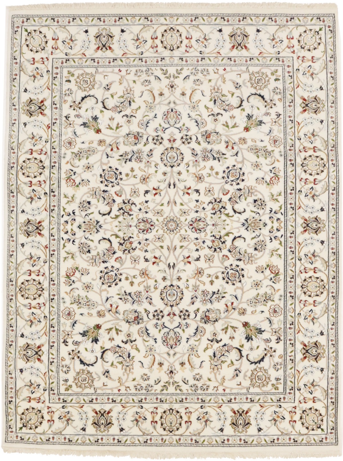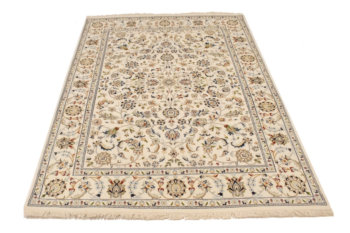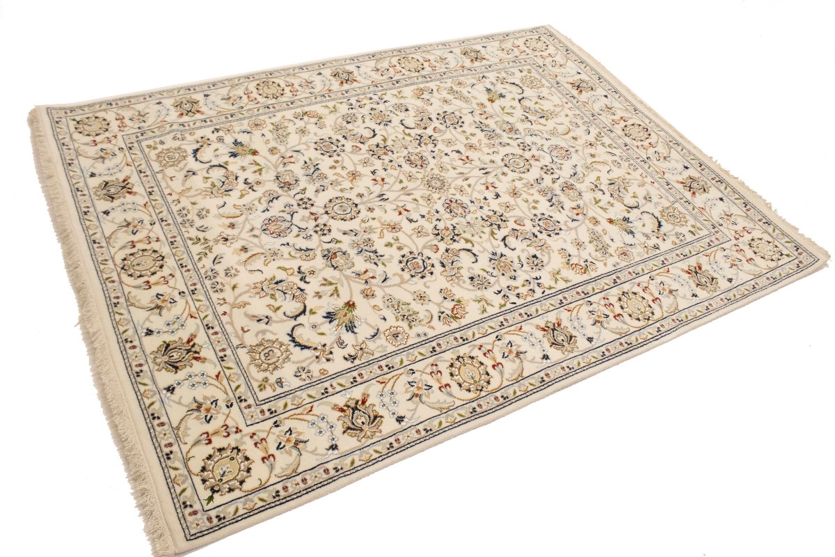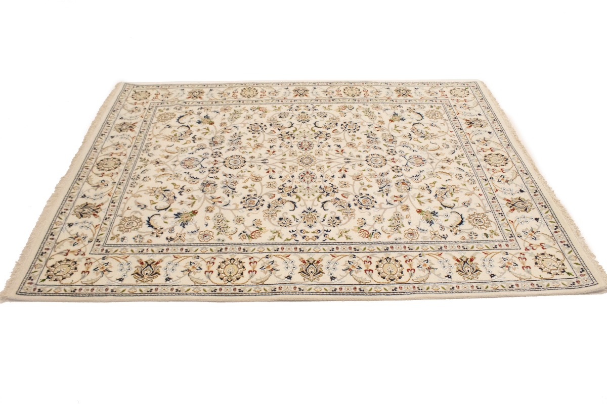 Cream Floral 5X7 Indo-Nain Oriental Rug