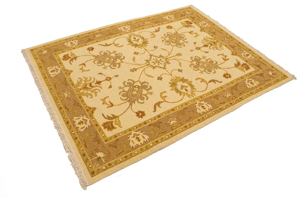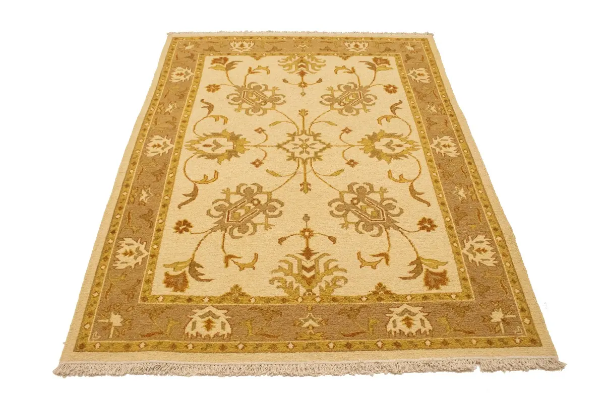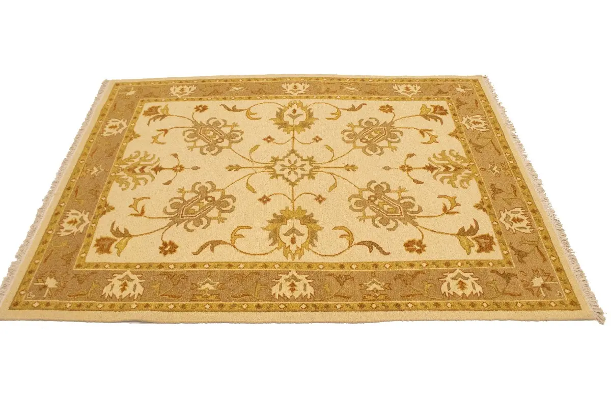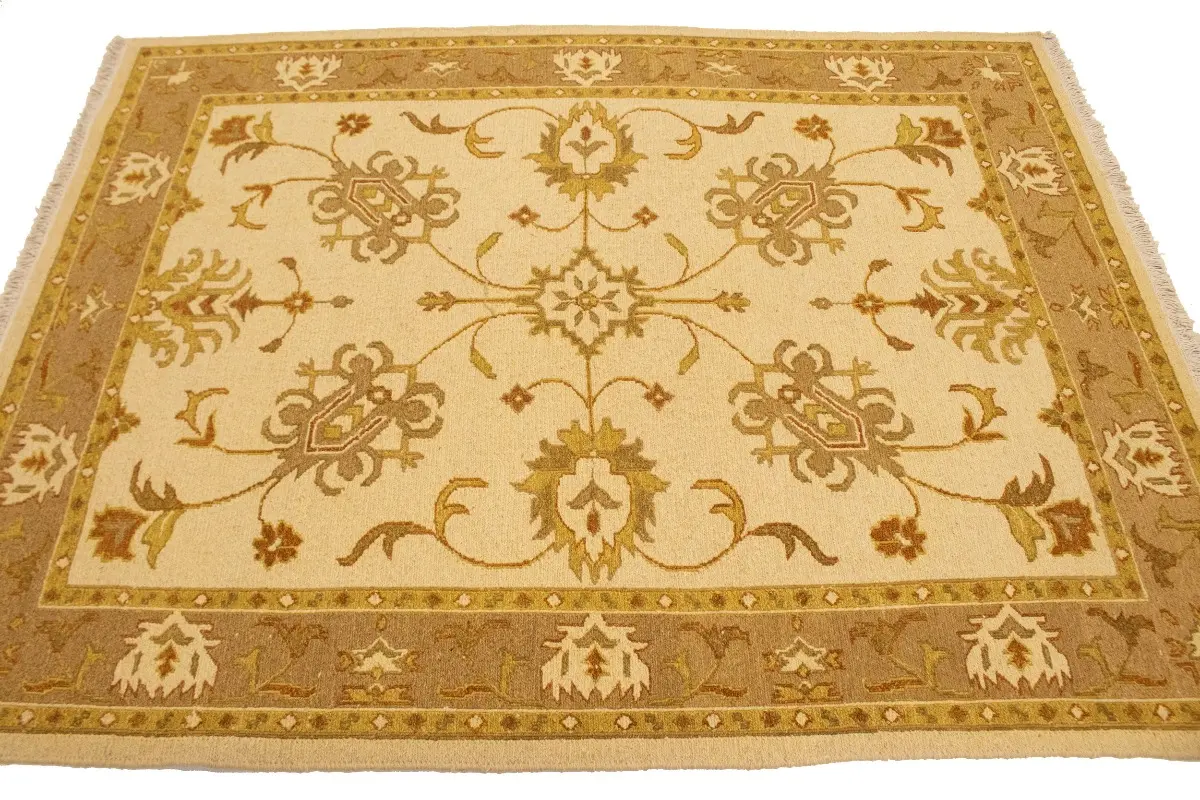Handmade 5X7 cream Oriental rug made with vegetable dyes (fine wool pile and cotton foundation), superior knot count, and appealing ancient designs. This Oriental rug never will go out of style and would be among your most valuable treasures.