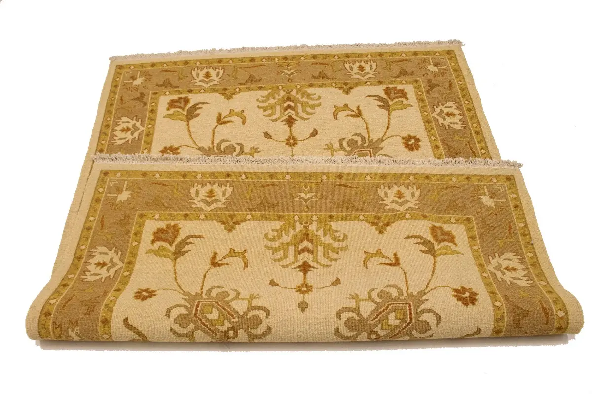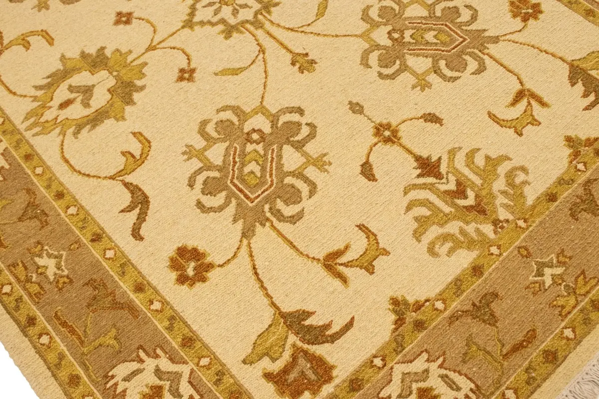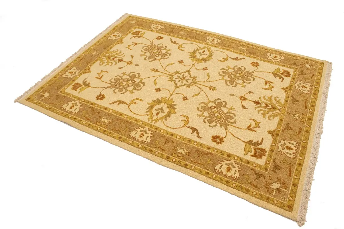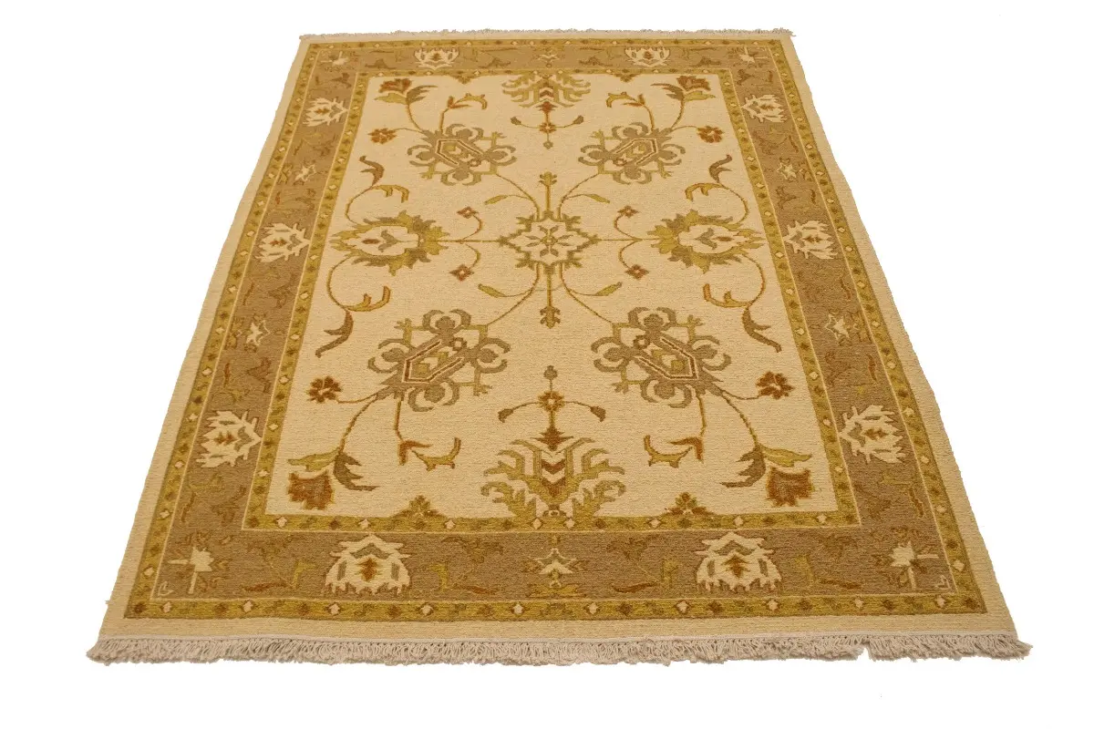 Handmade 5X7 cream Oriental rug made with vegetable dyes (fine wool pile and cotton foundation), superior knot count, and appealing ancient designs. This Oriental rug never will go out of style and would be among your most valuable treasures.