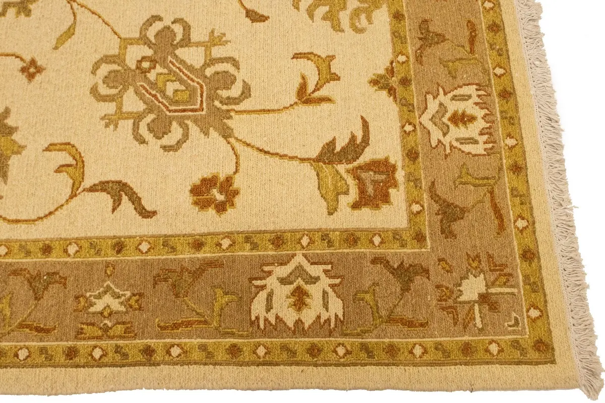 This genuine 5X7 cream new Oriental rug was made by the hands of gifted weavers inspired by a variety of spectacular artistic designs, to recreate the aged look of the original piece with a richness of color and ornately patterned background field. What set this vintage style Oriental area rug from the others are the material and dye used (wool pile and cotton foundation), knot count, ancient designs, fantastic grades, and its regional historical connection: it has deep roots, from the story of the people who produced it to the meaning of the symbols and colors displayed across its canvas that have been praised for centuries. This Indian home décor carpet will be completely cozy and inviting that never will go out of style! Also, this Oriental rug would be among your most valuable treasures, it is a great investment that accrues value over time, and it will last for generations because was woven with high-quality, all-natural wool. Environmentally friendly, opulent yet affordable; this rug will give you a thorough amount of character to help define your living space with elegance and warmth that will capture the eyes and attention of your audience (homeowners, designers, decorators, family and friends). OT-6550