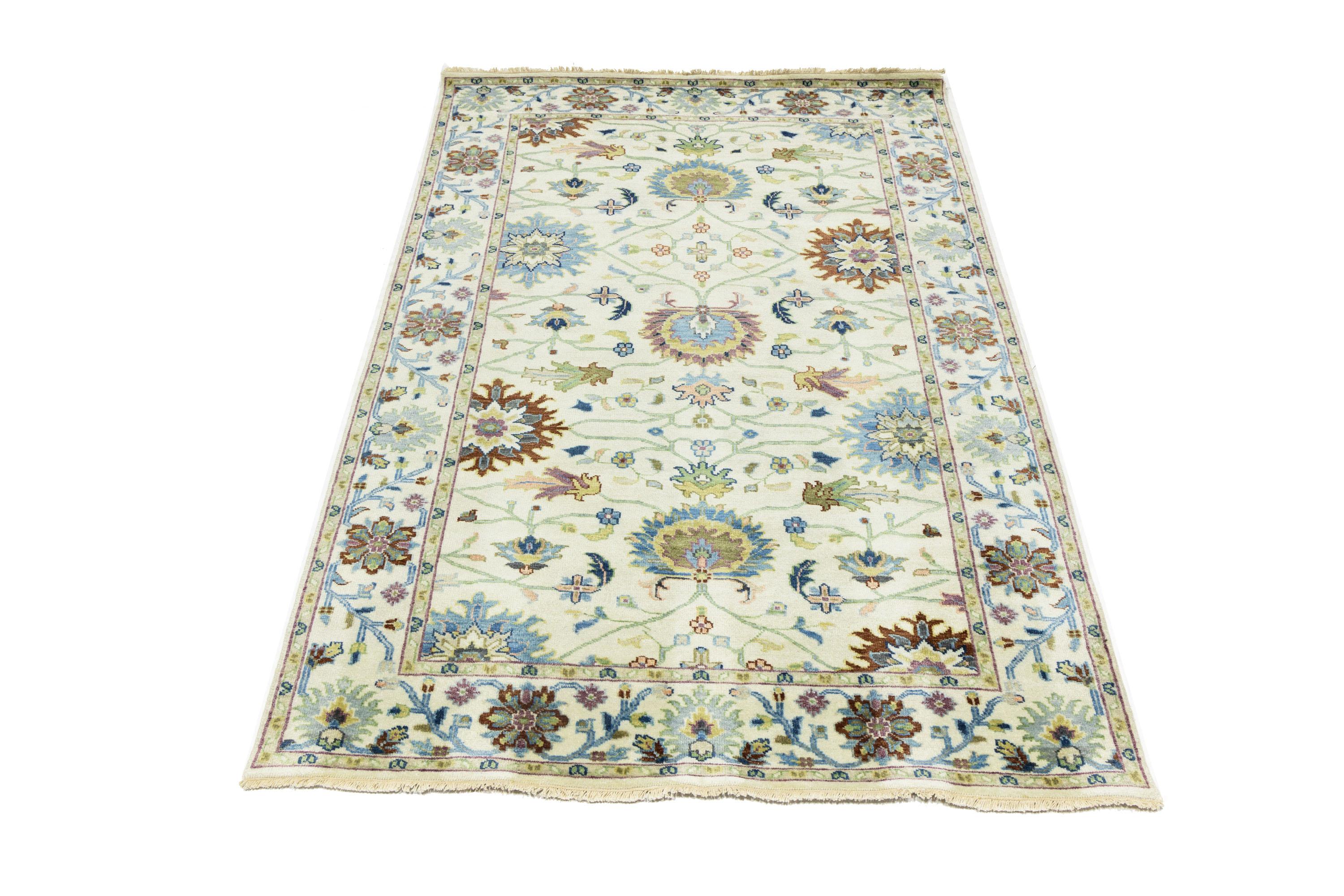 Cream Floral 5x8 Osh Chobi Oriental Area Rug
