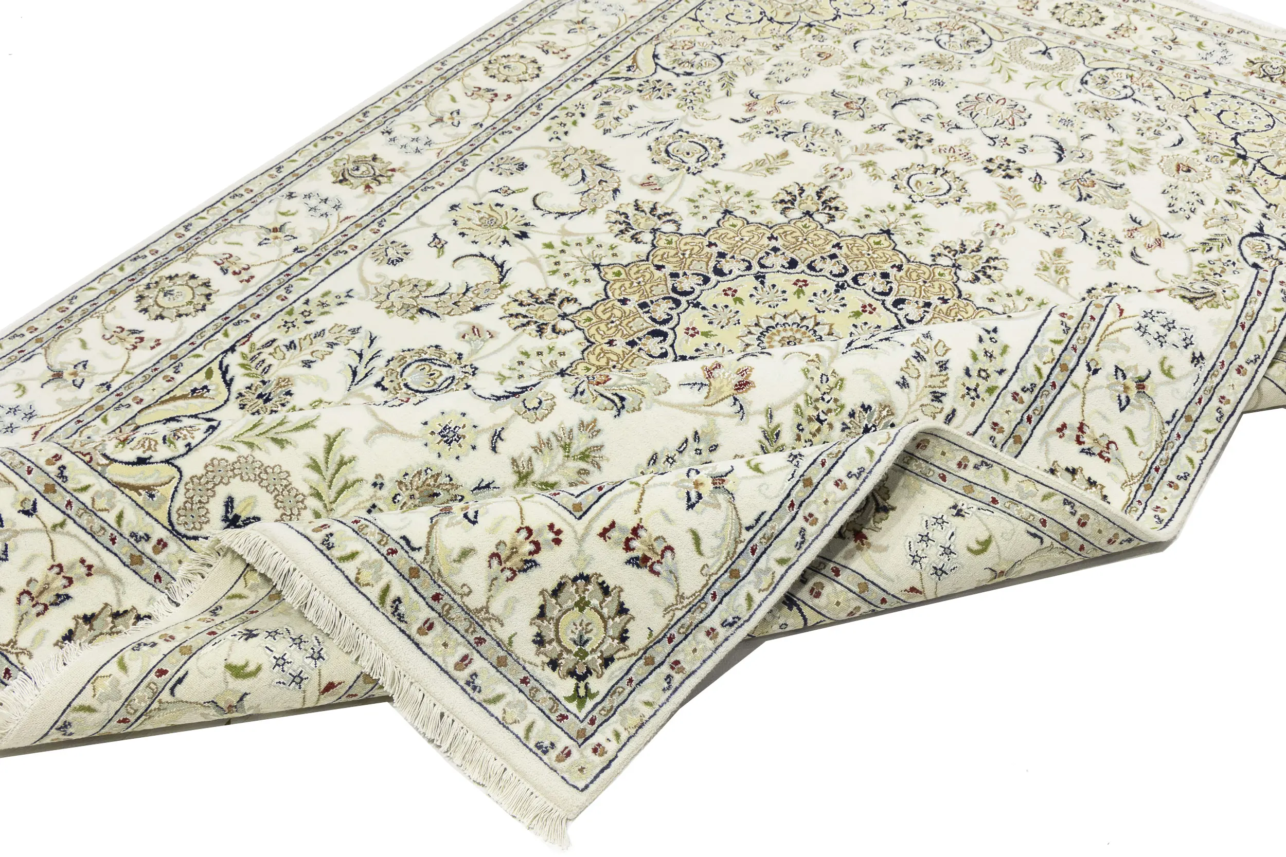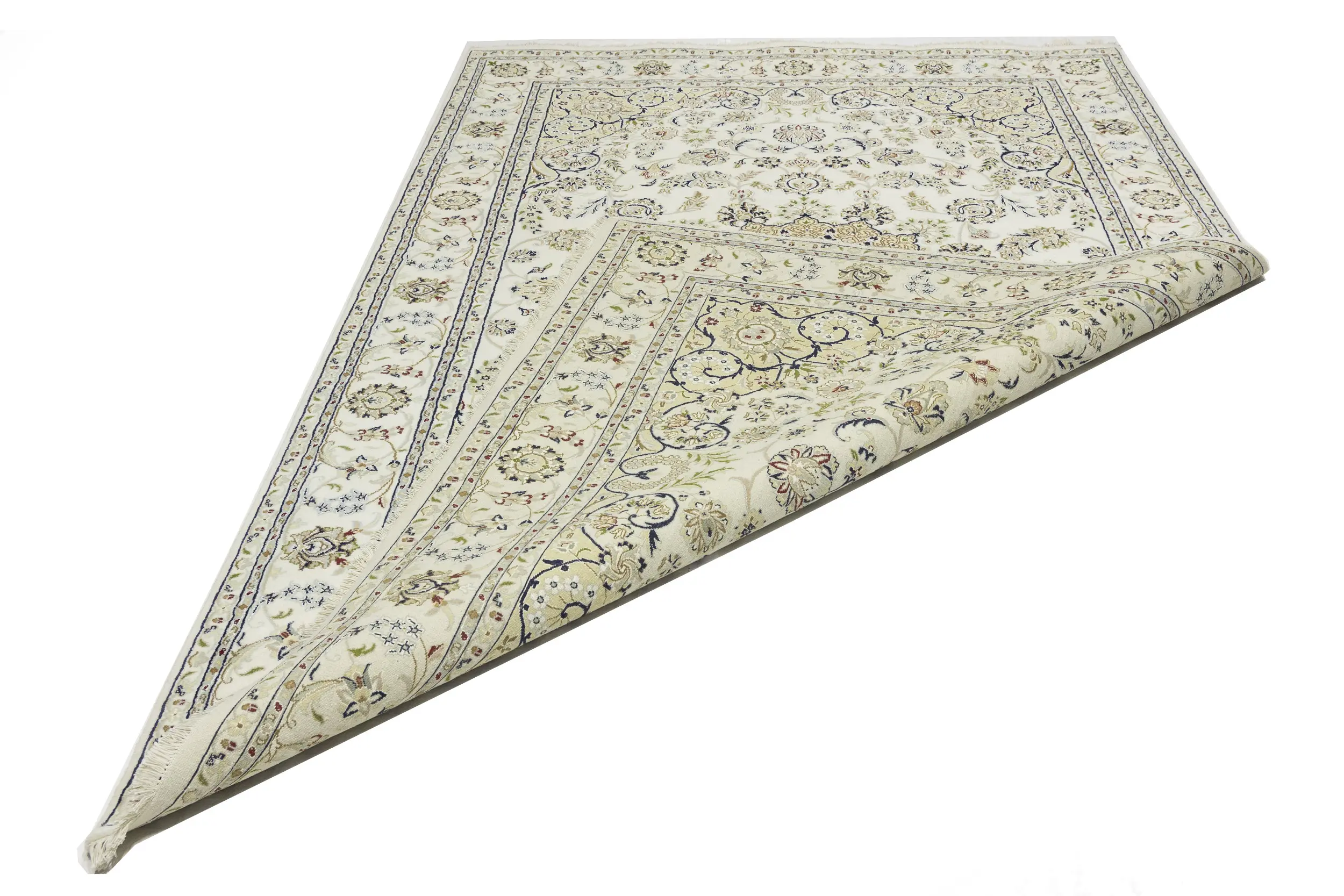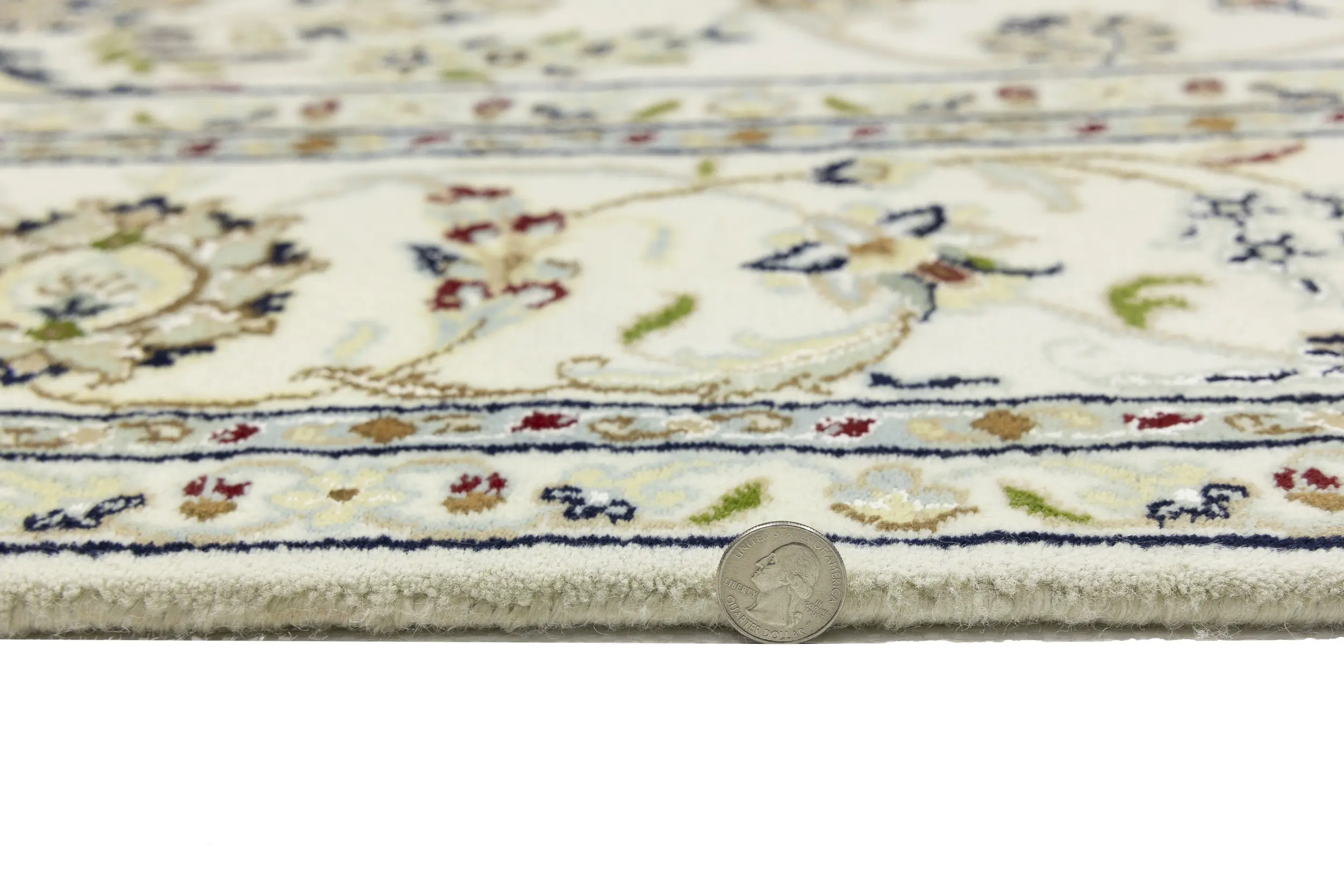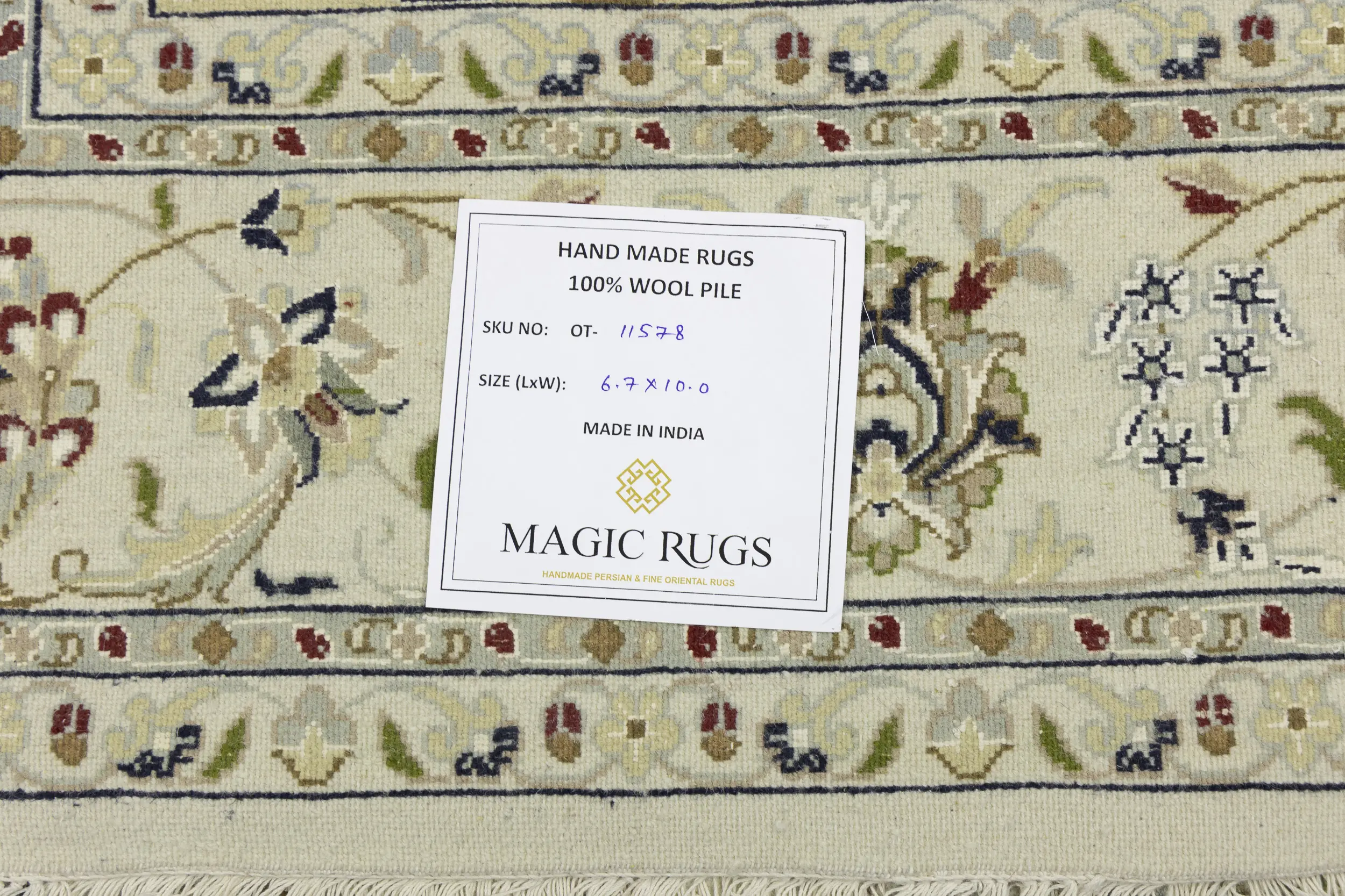 Cream Floral 6'7X10 Indo-Nain Oriental Rug