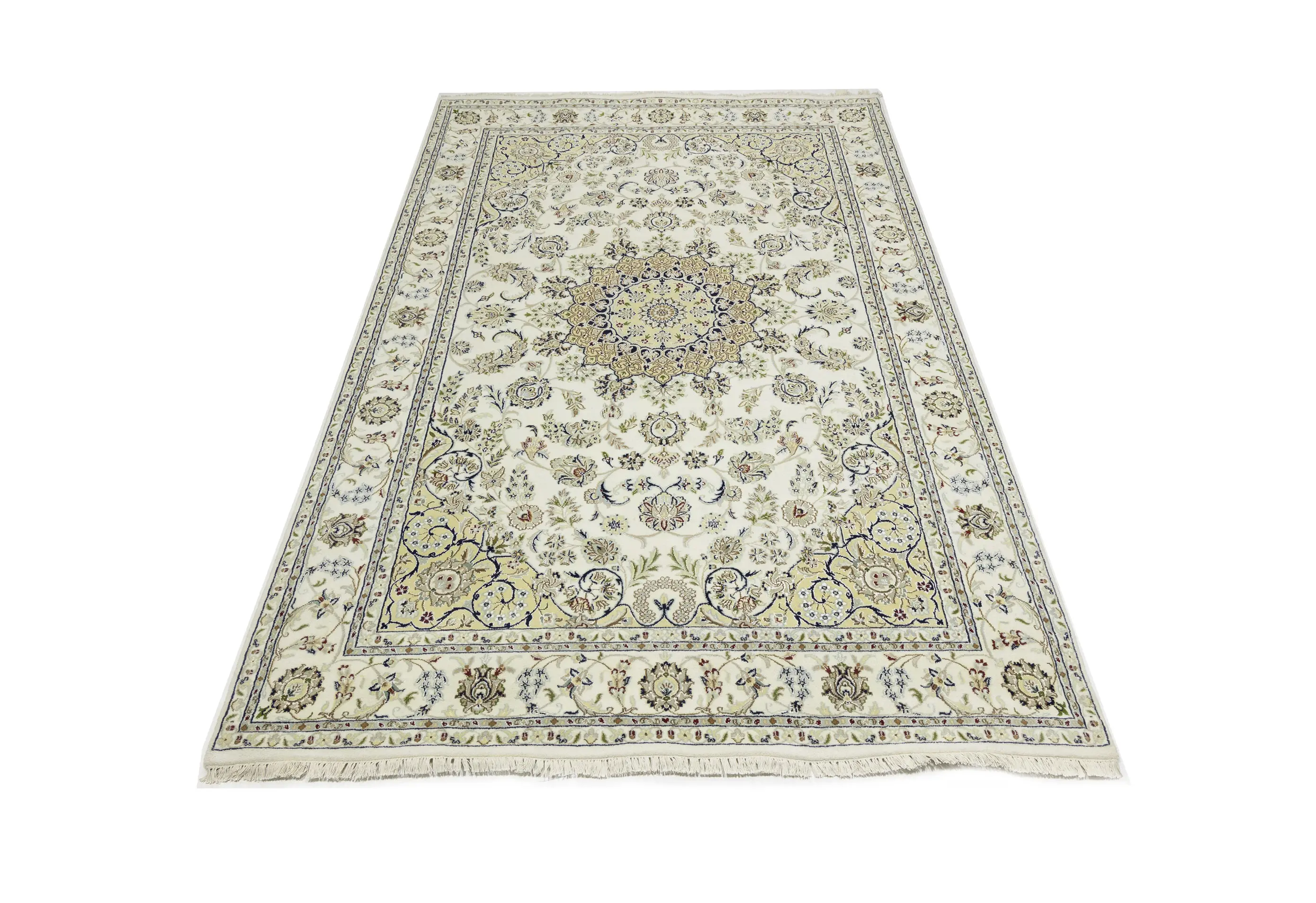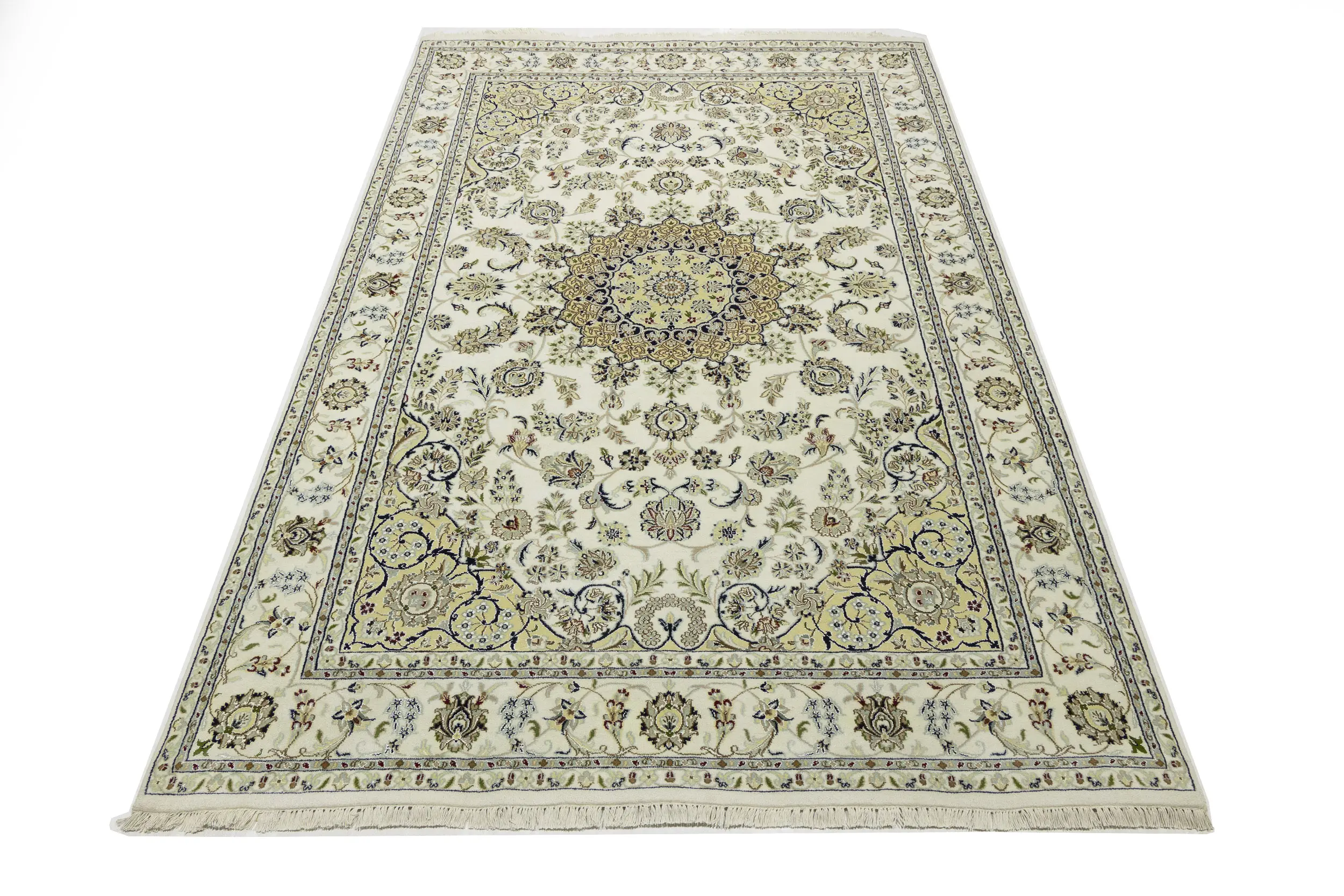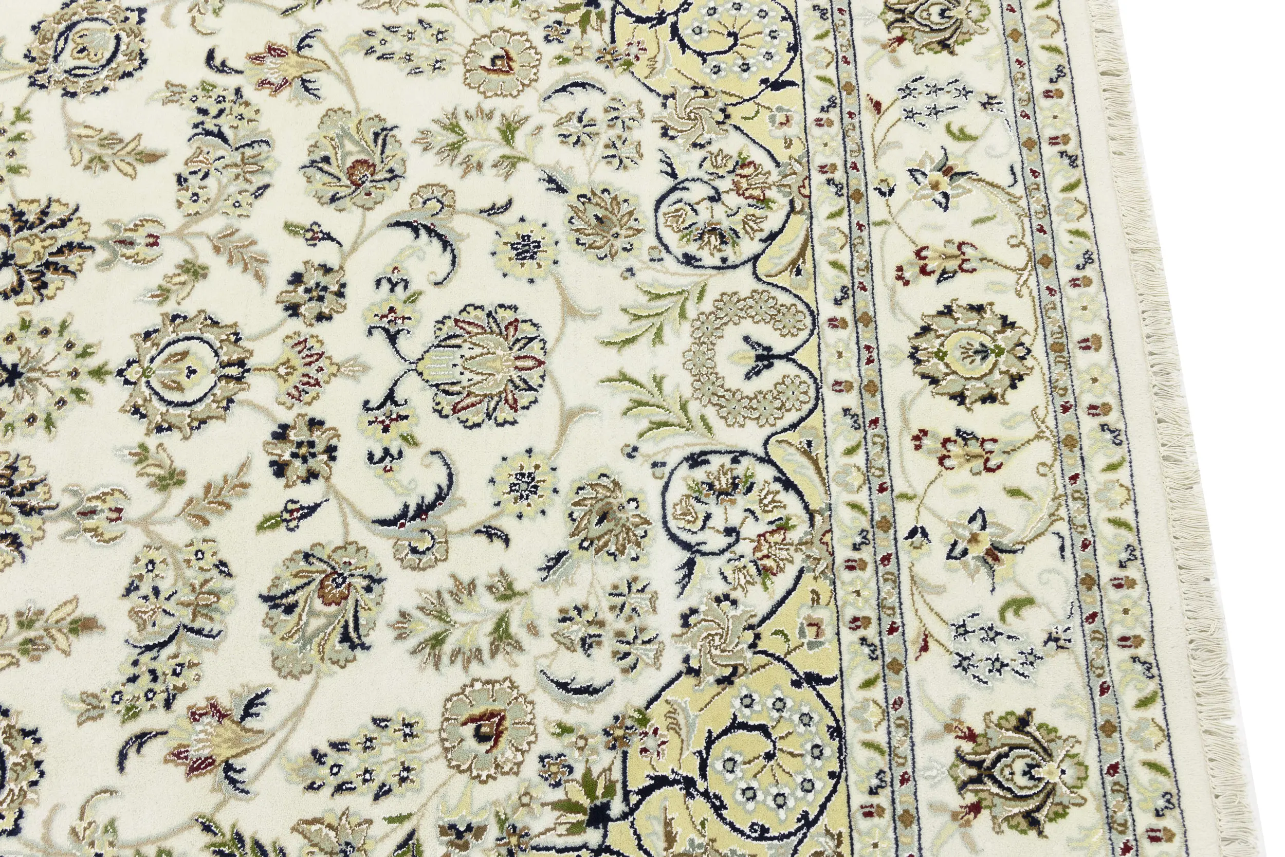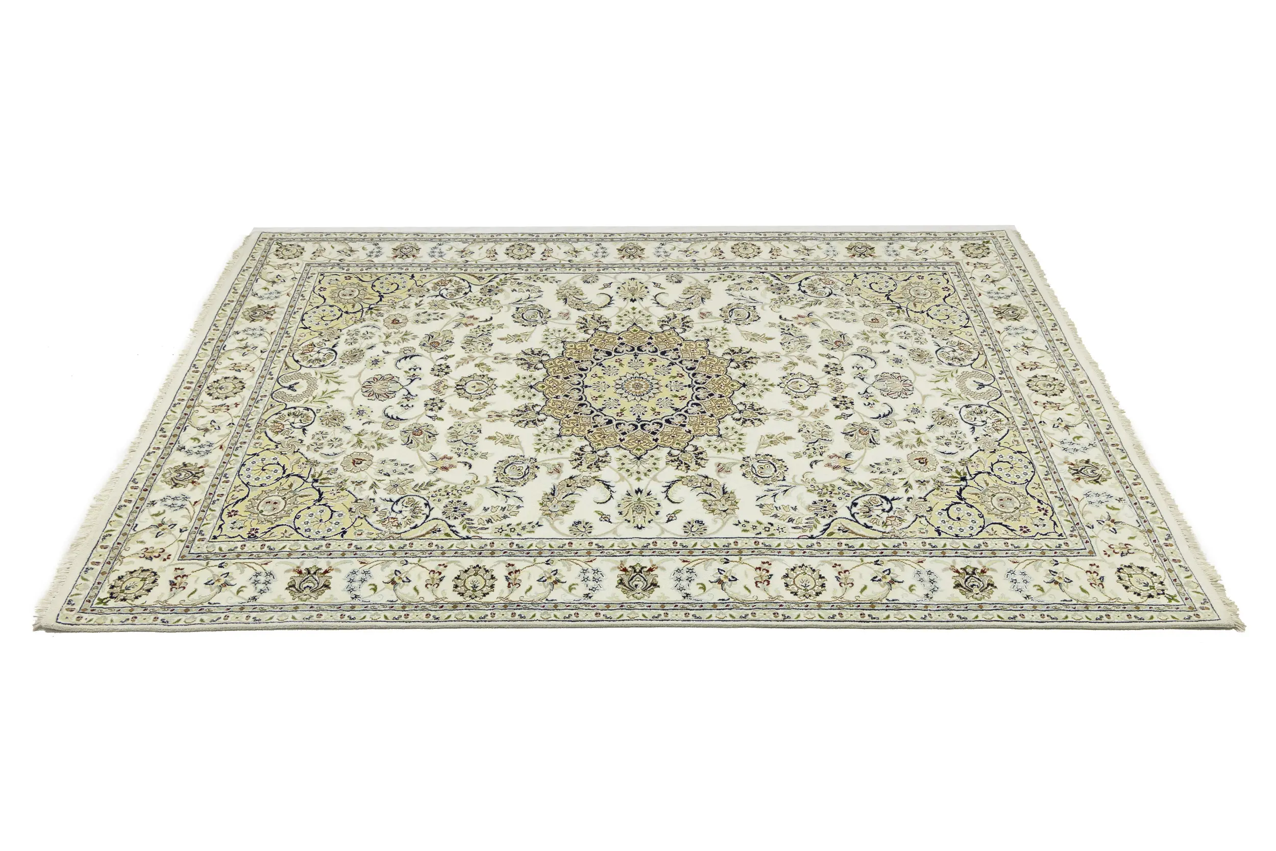 Cream Floral 6'7X10 Indo-Nain Oriental Rug