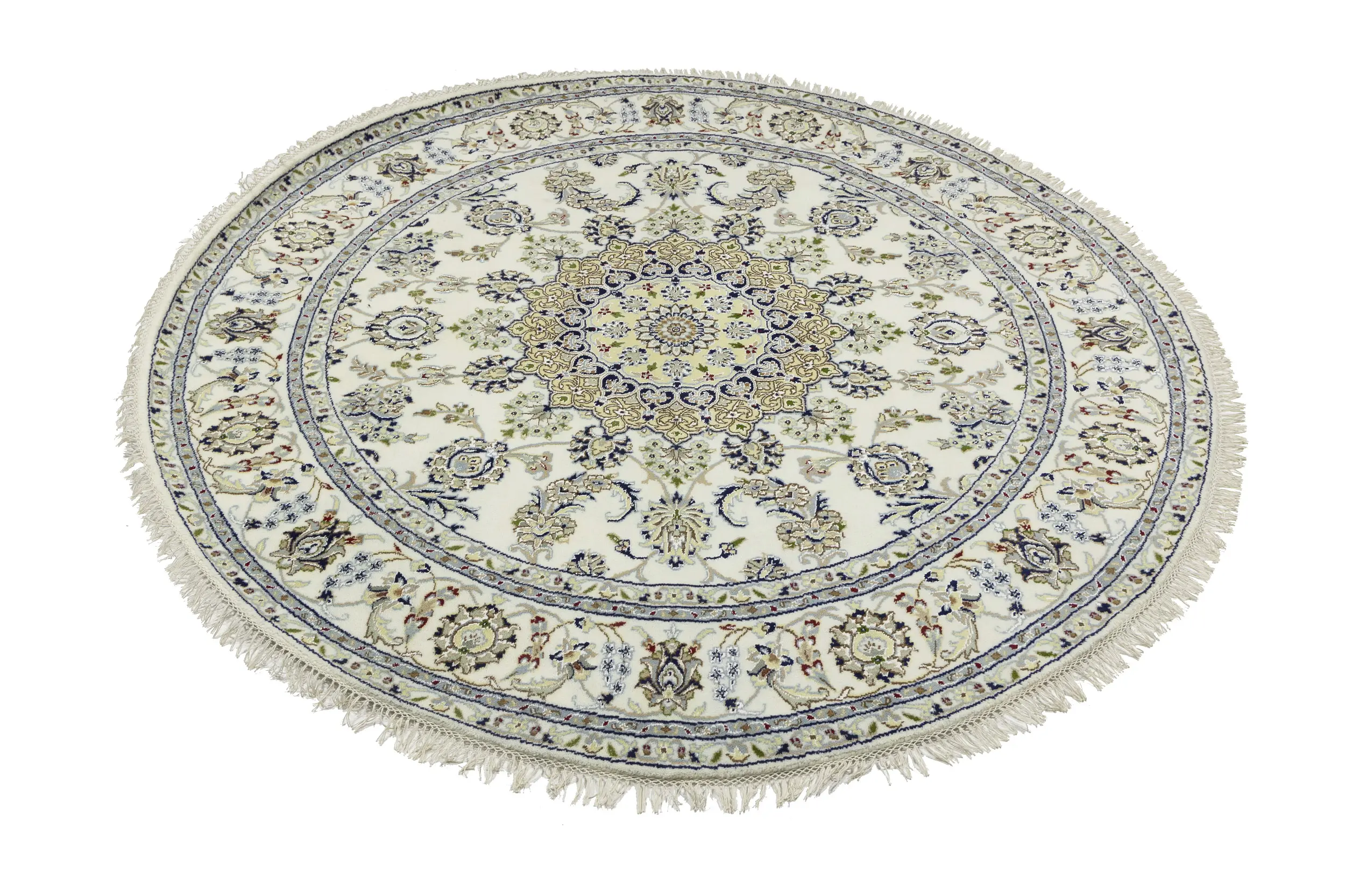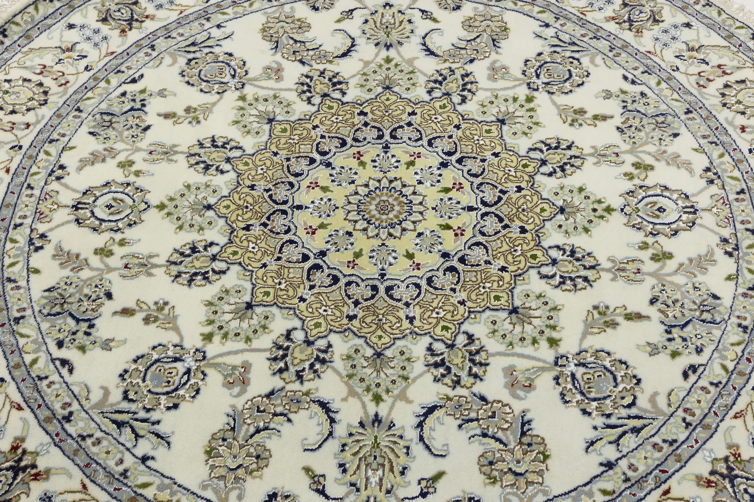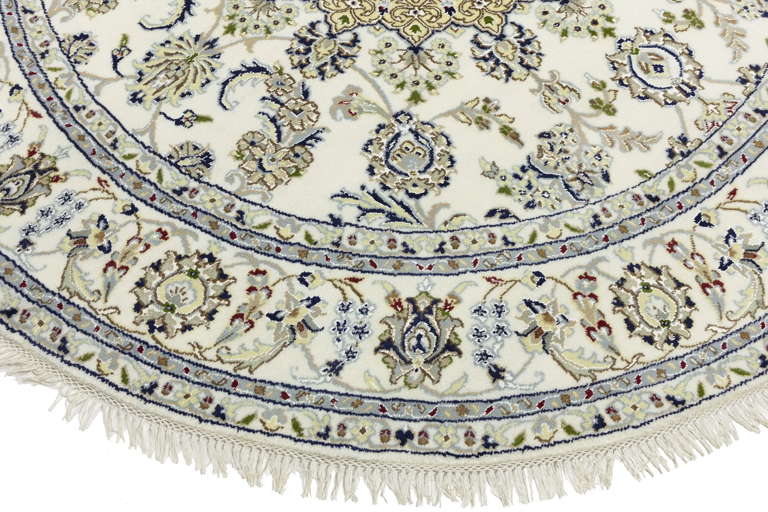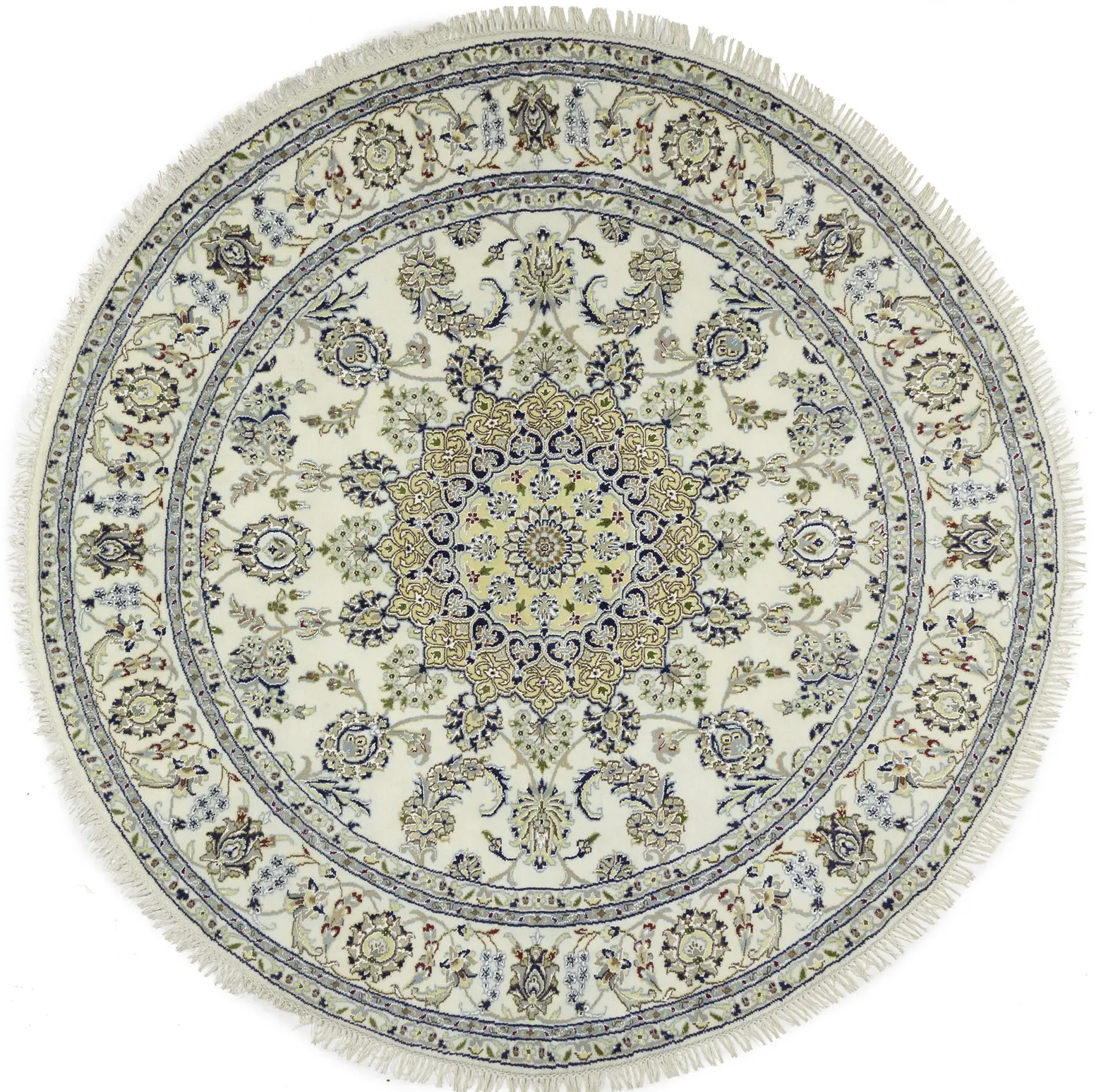 Cream Floral 6X6 Indo-Nain Oriental Round Rug