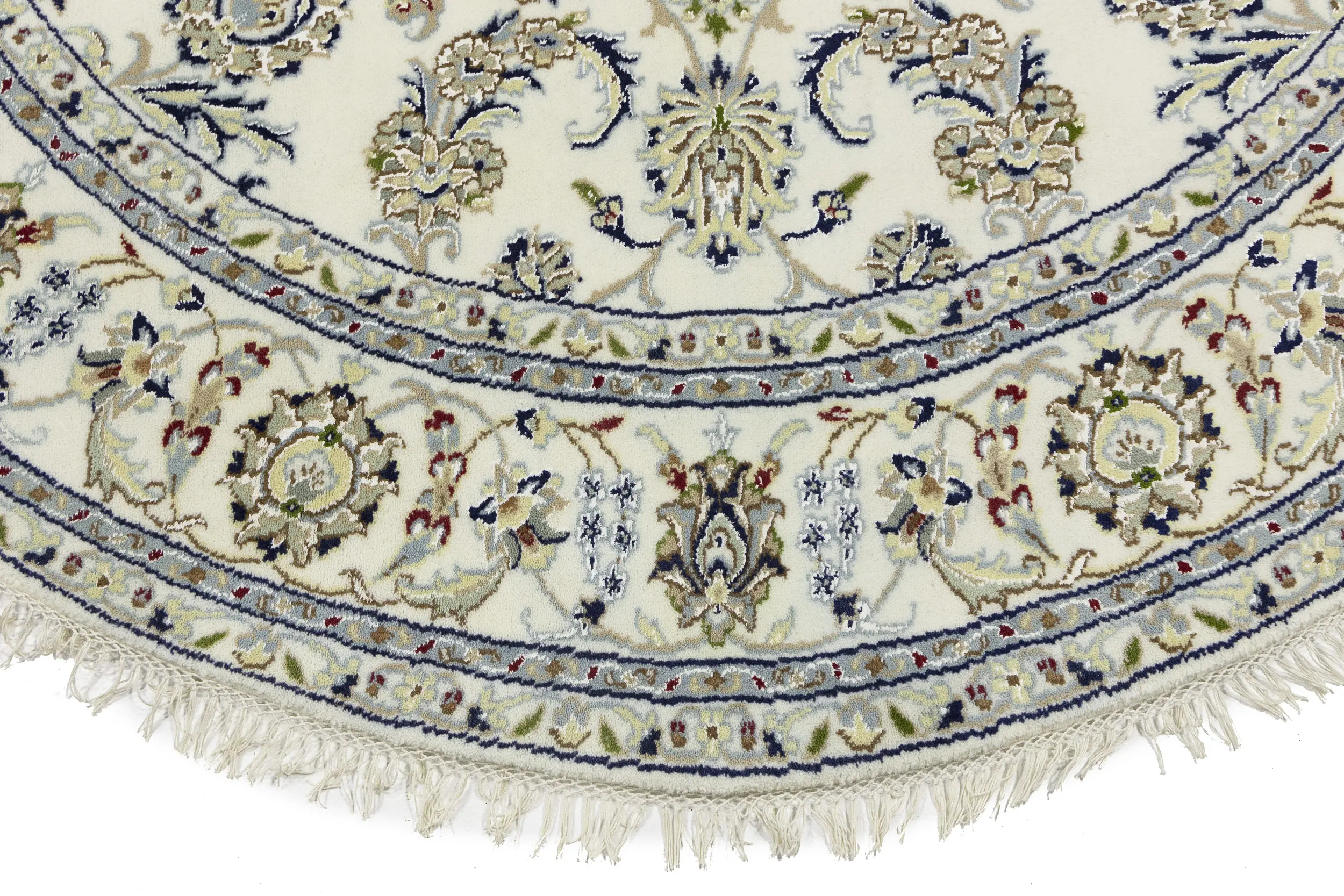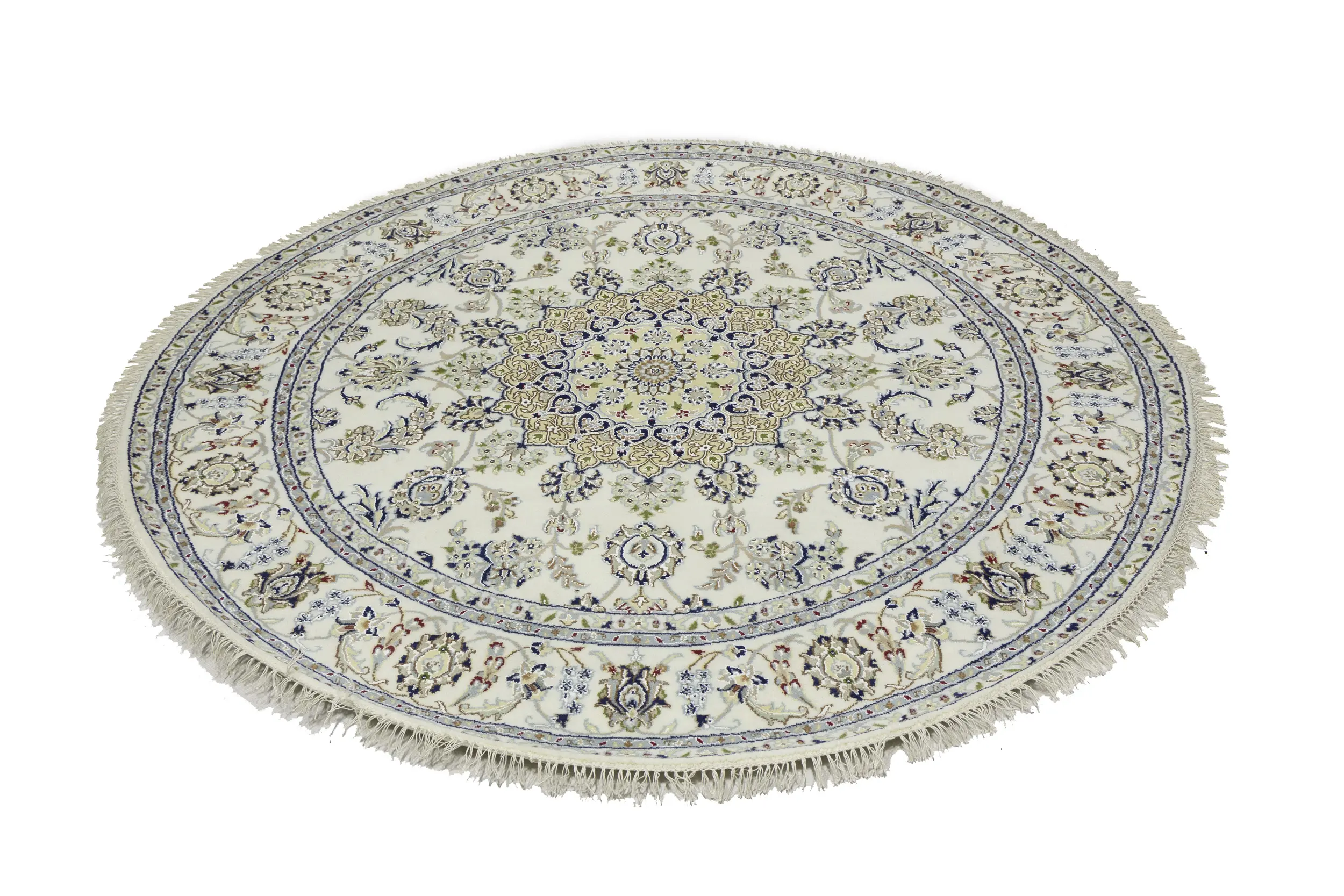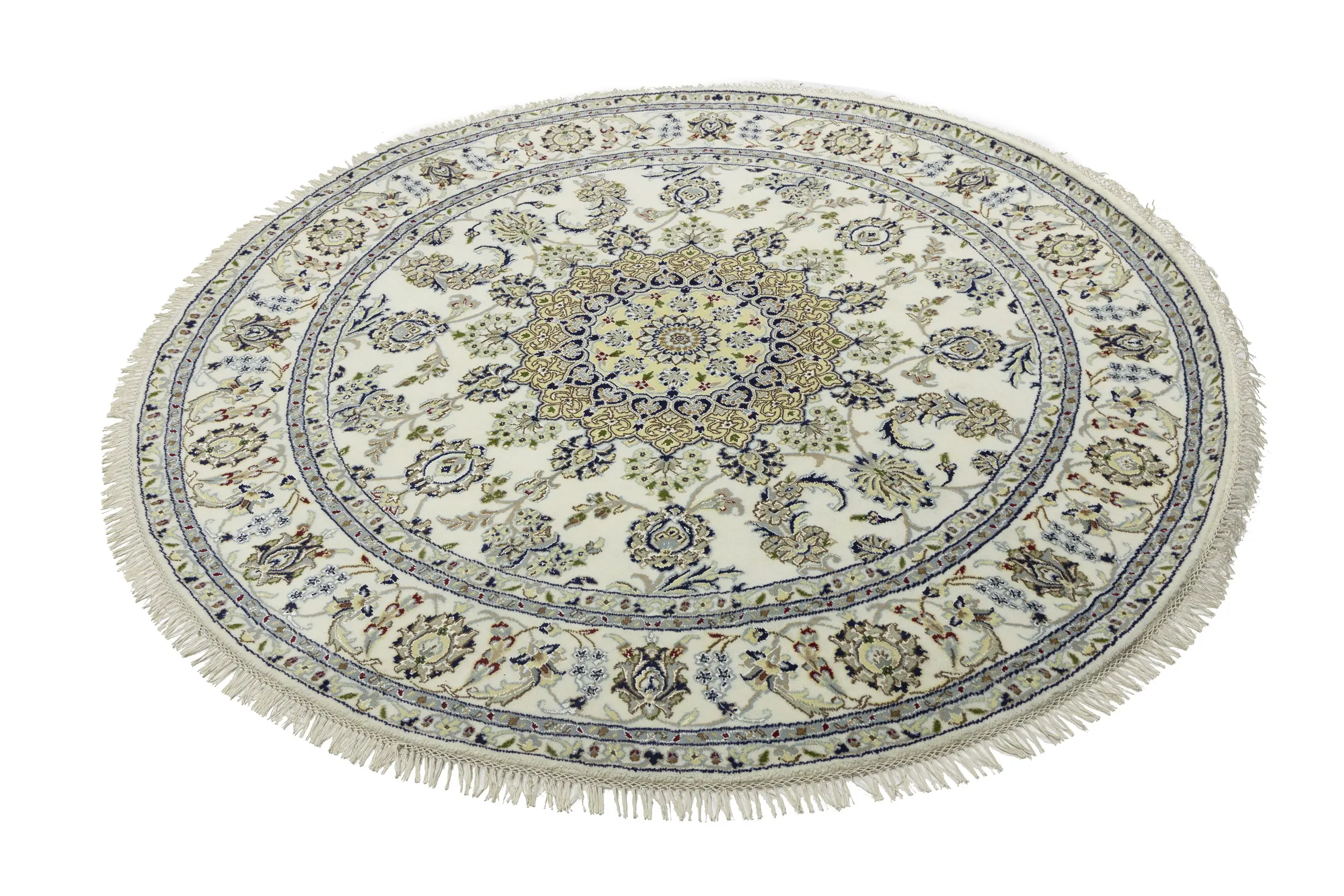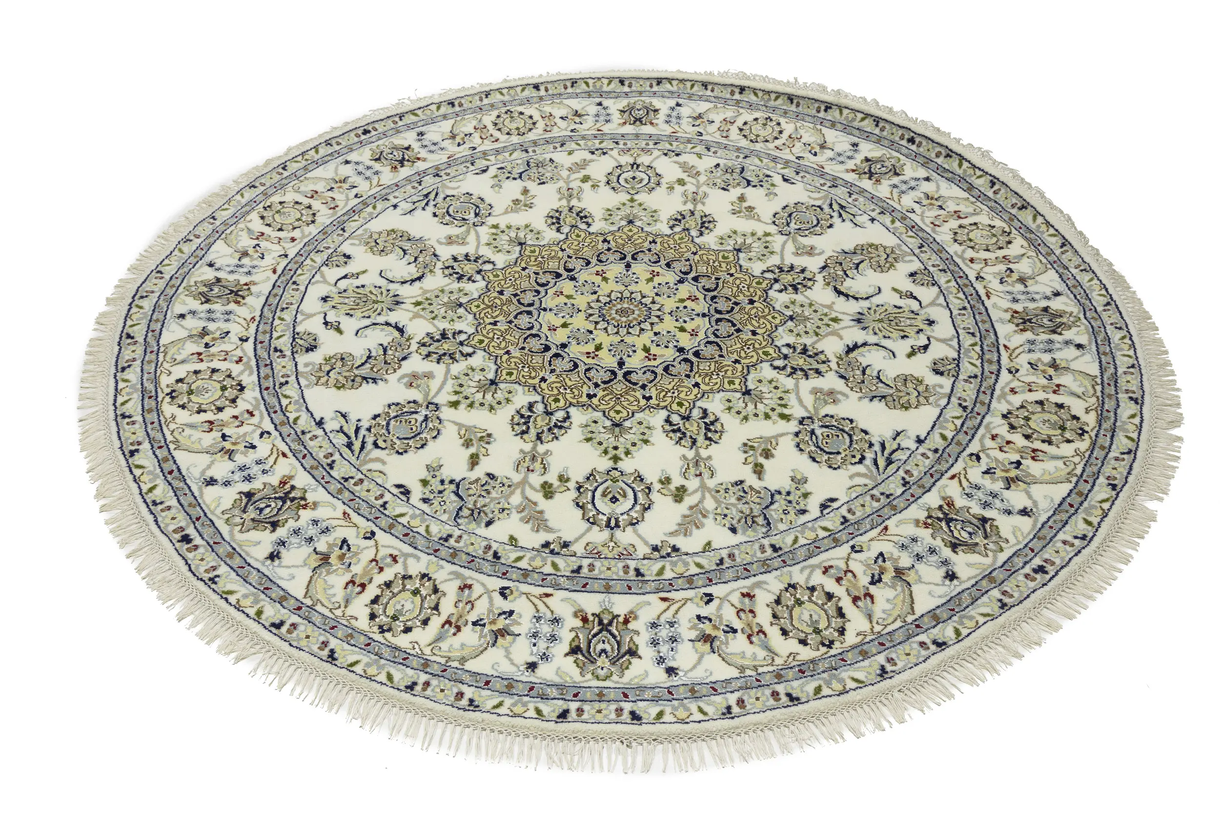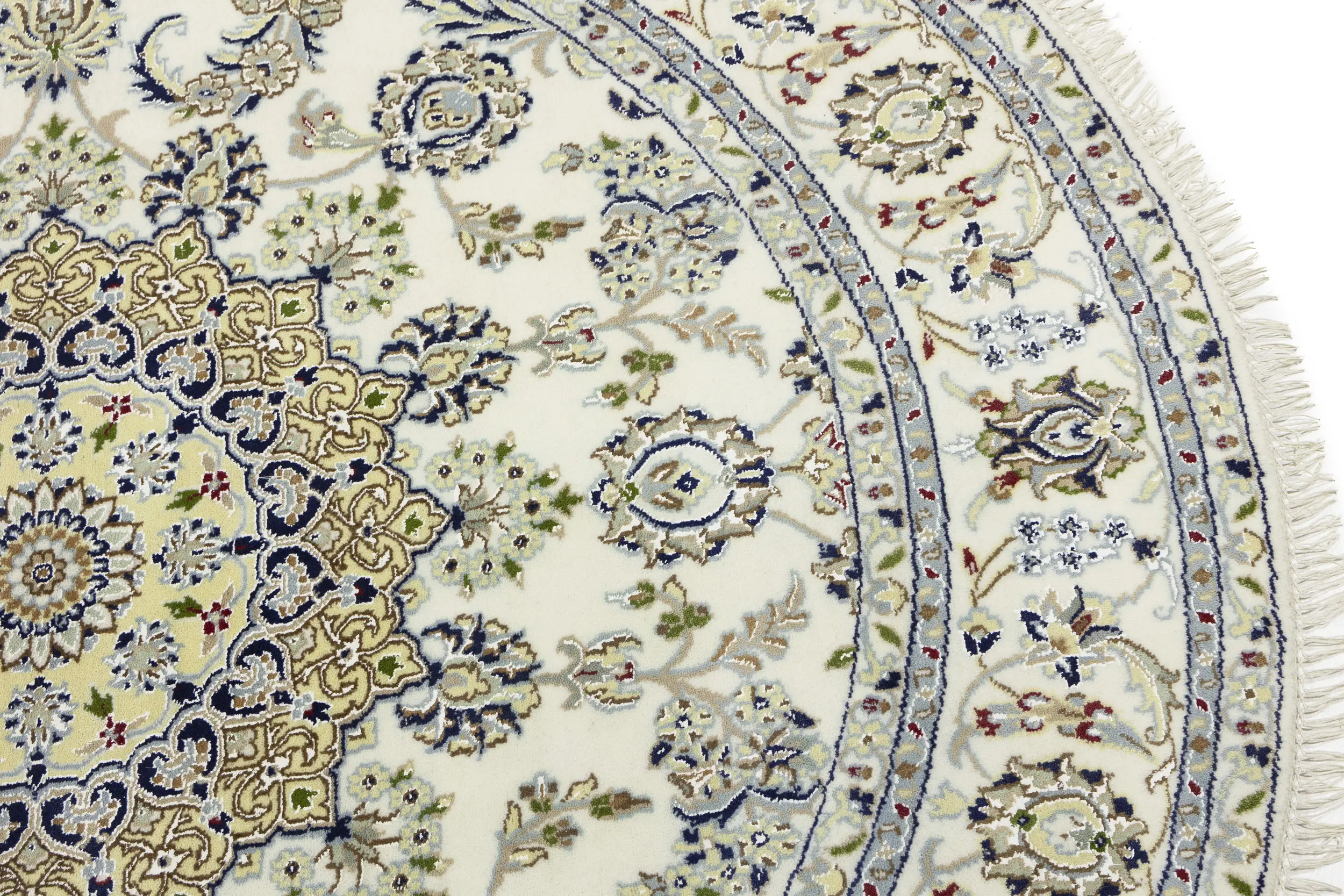 Cream Floral 6X6 Indo-Nain Oriental Round Rug