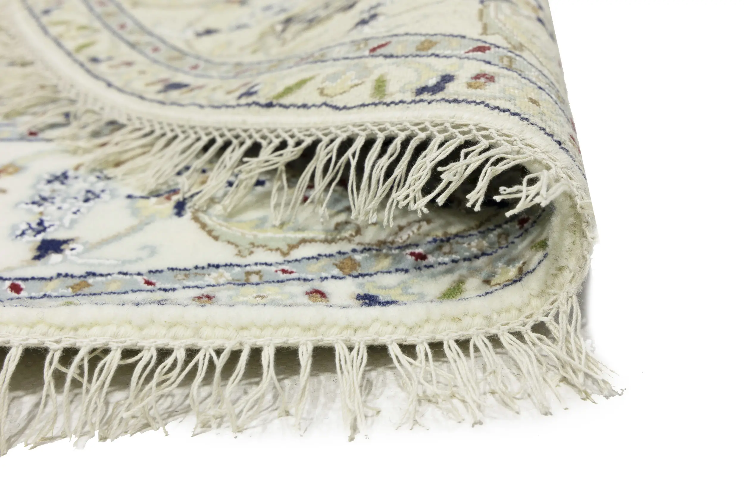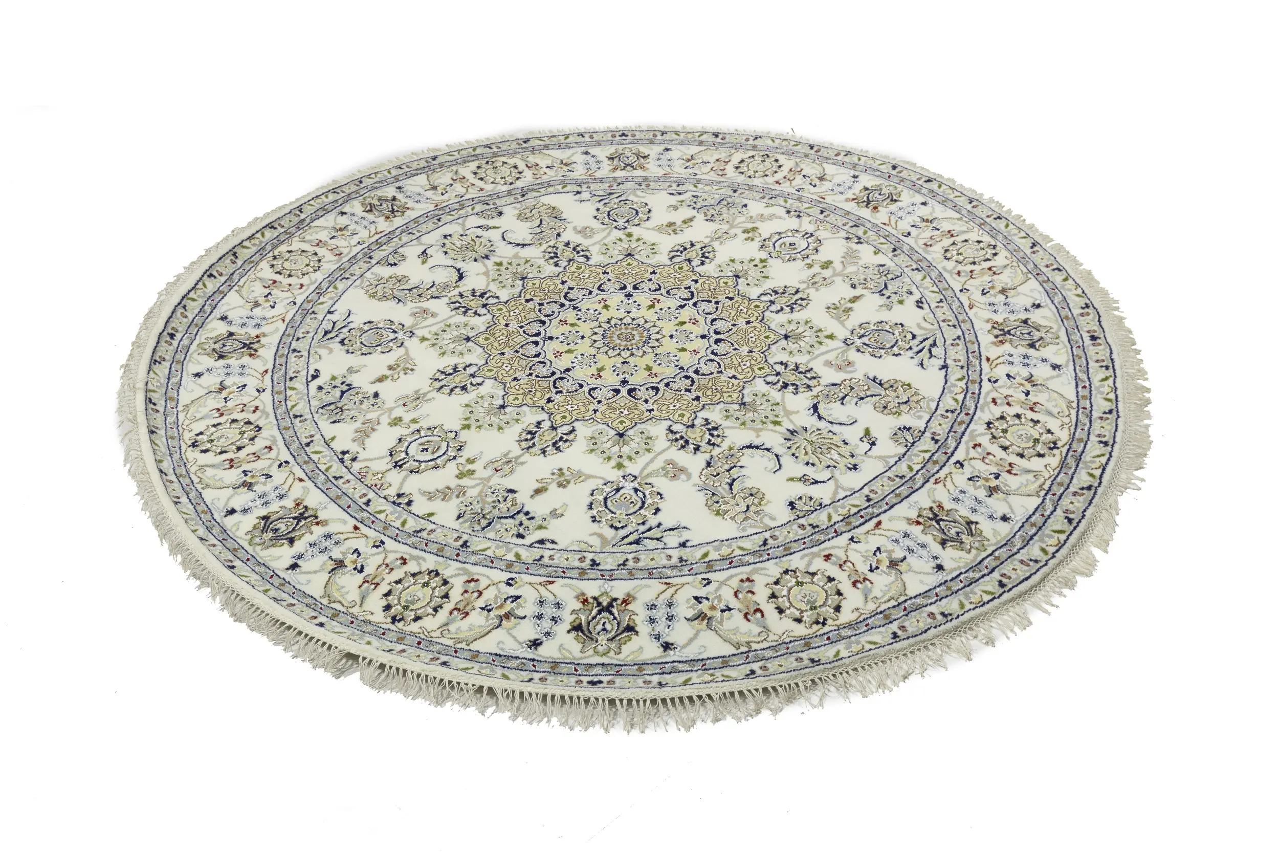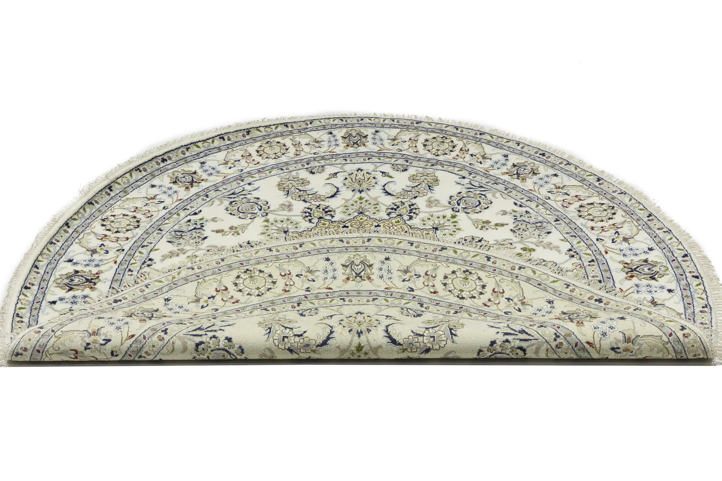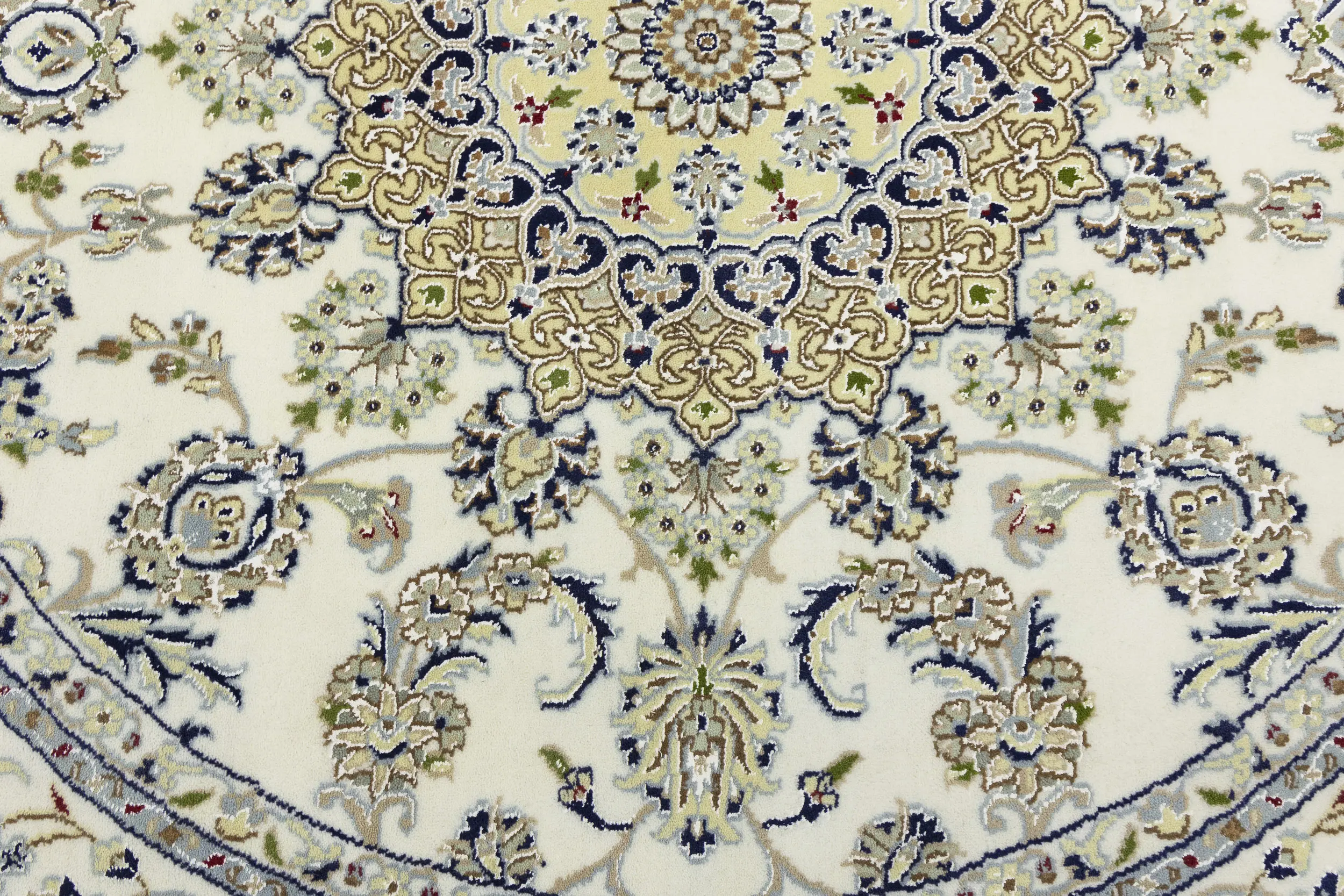 Cream Floral 6X6 Indo-Nain Oriental Round Rug