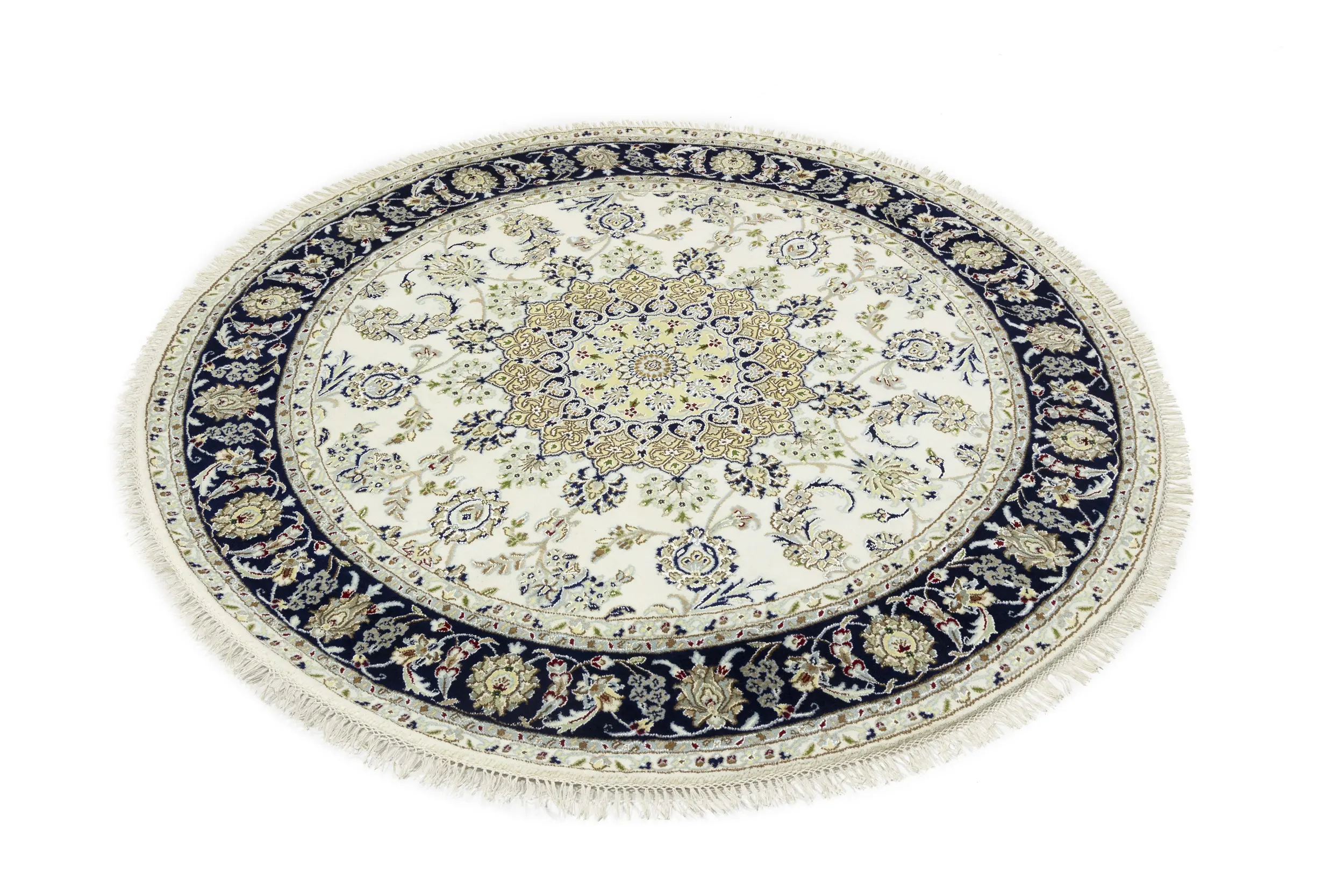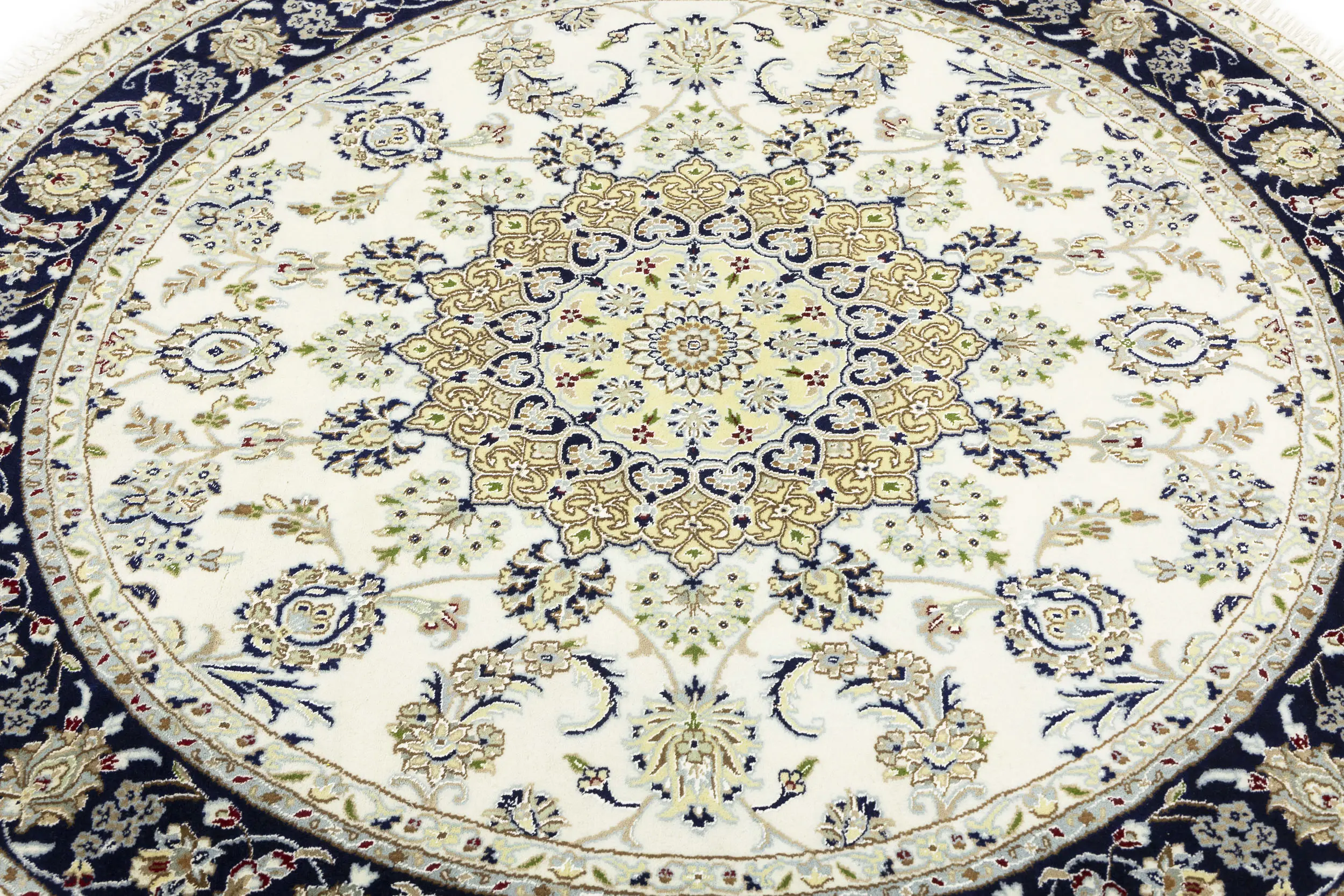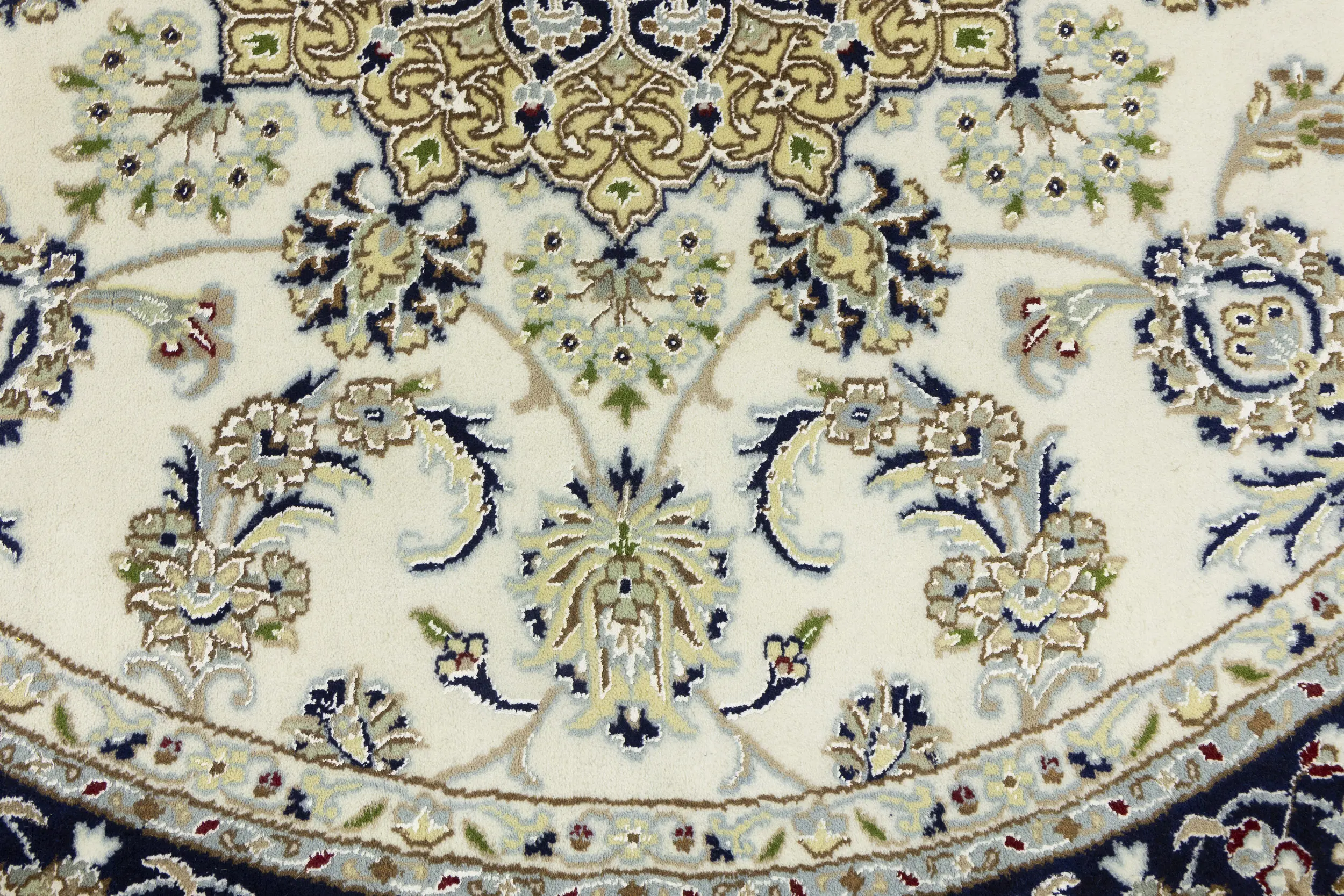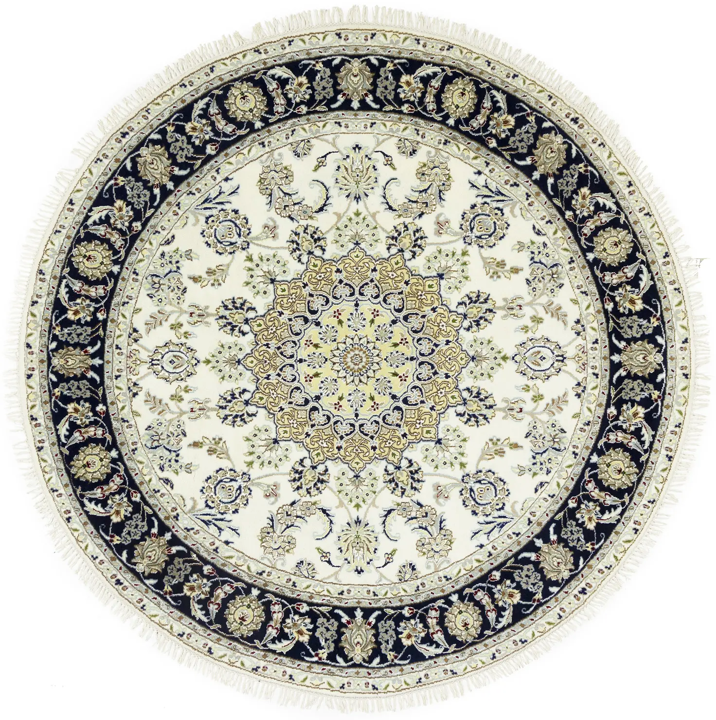 Cream Floral 6X6 Indo-Nain Oriental Round Rug