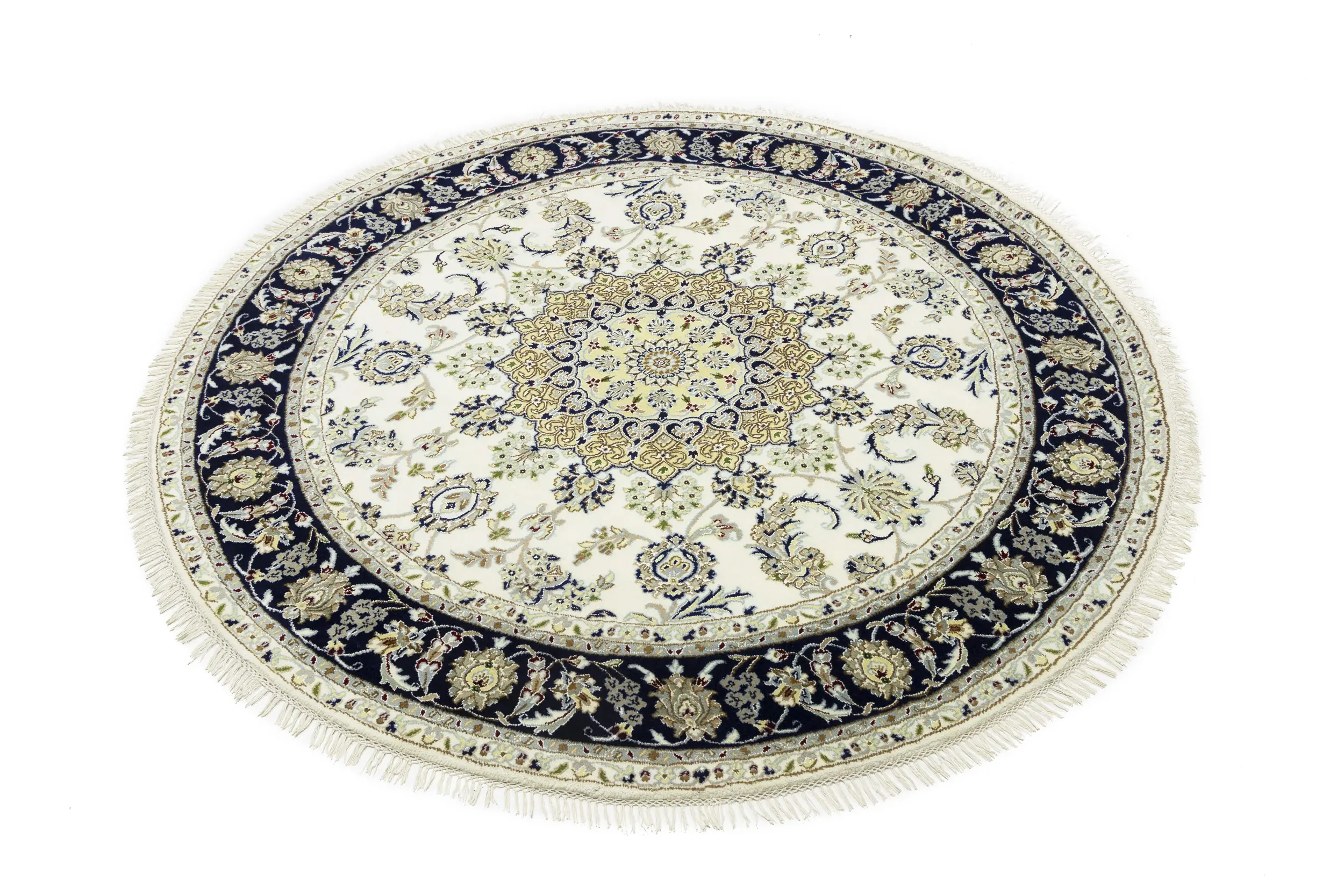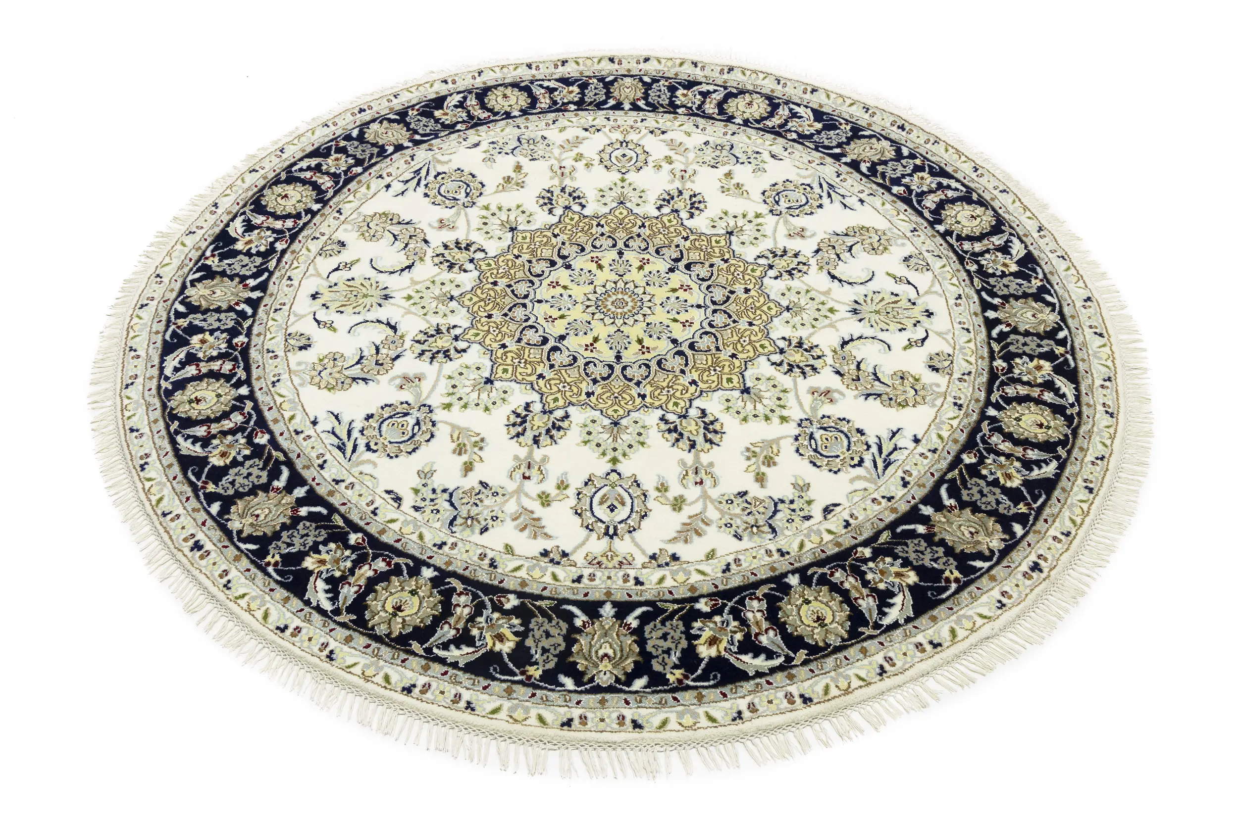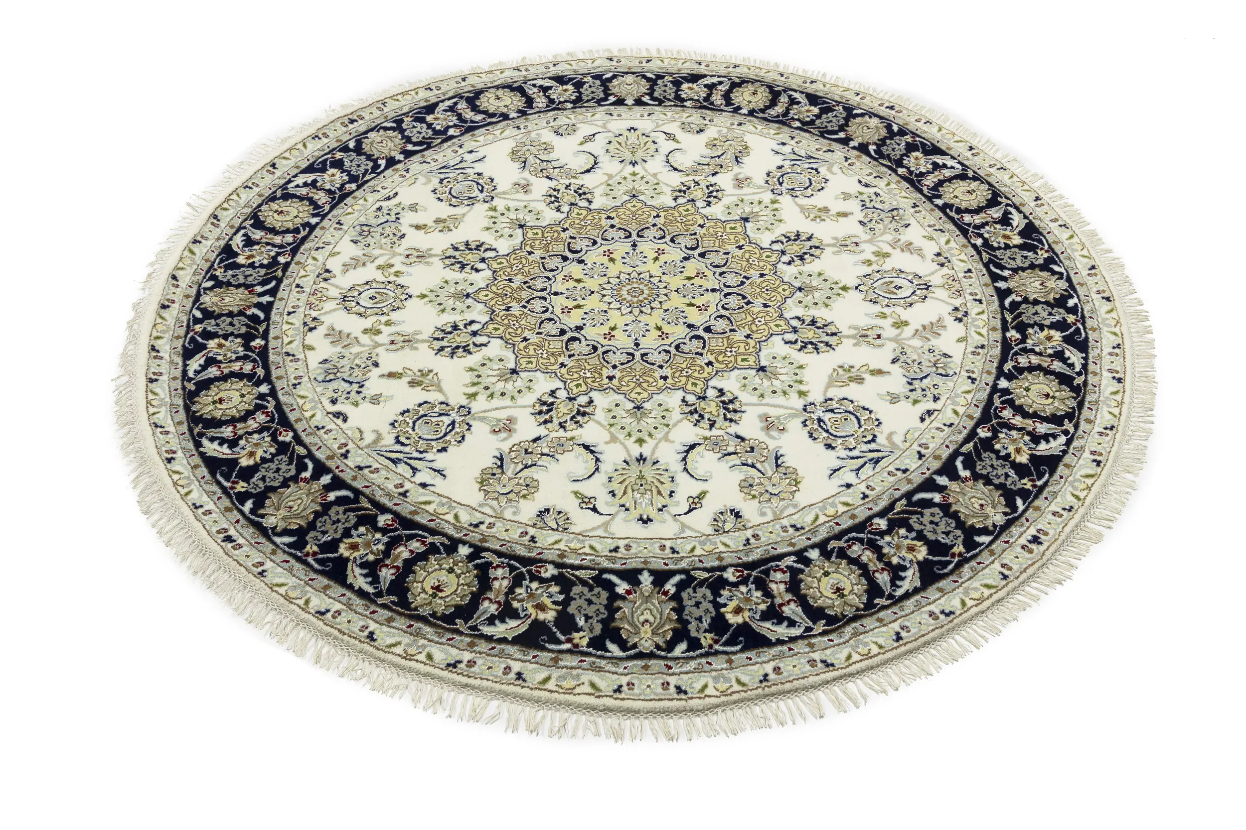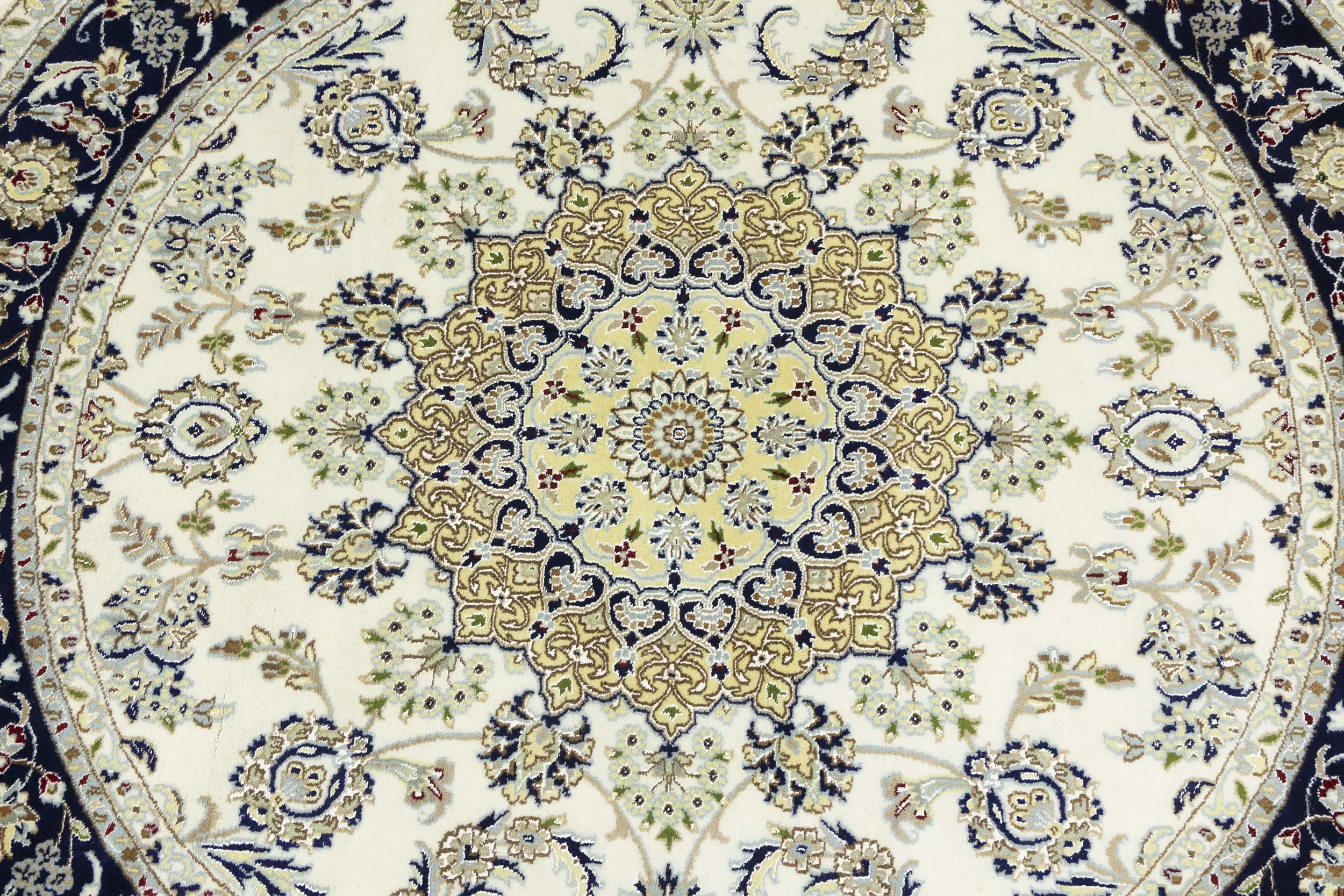 Cream Floral 6X6 Indo-Nain Oriental Round Rug